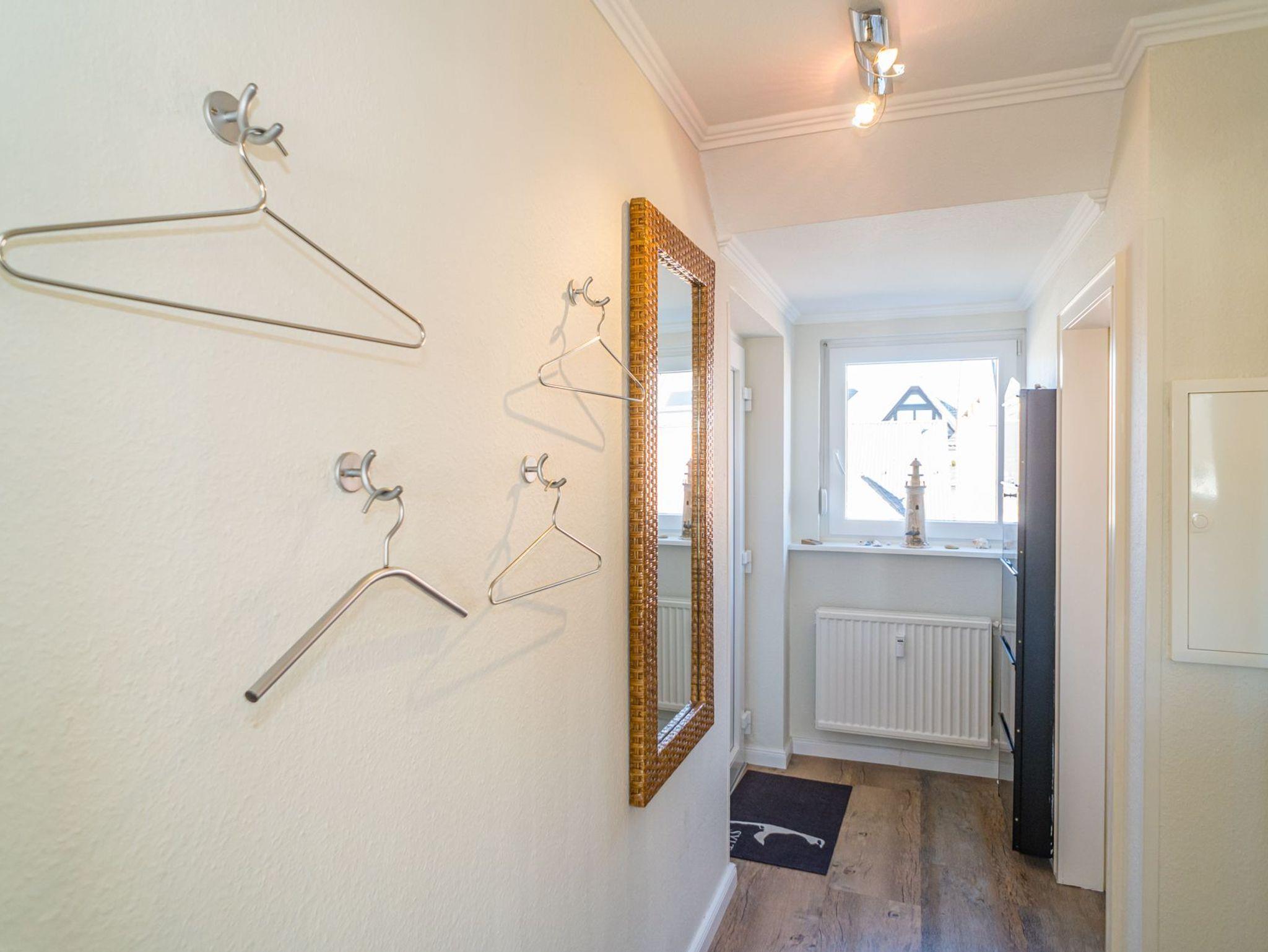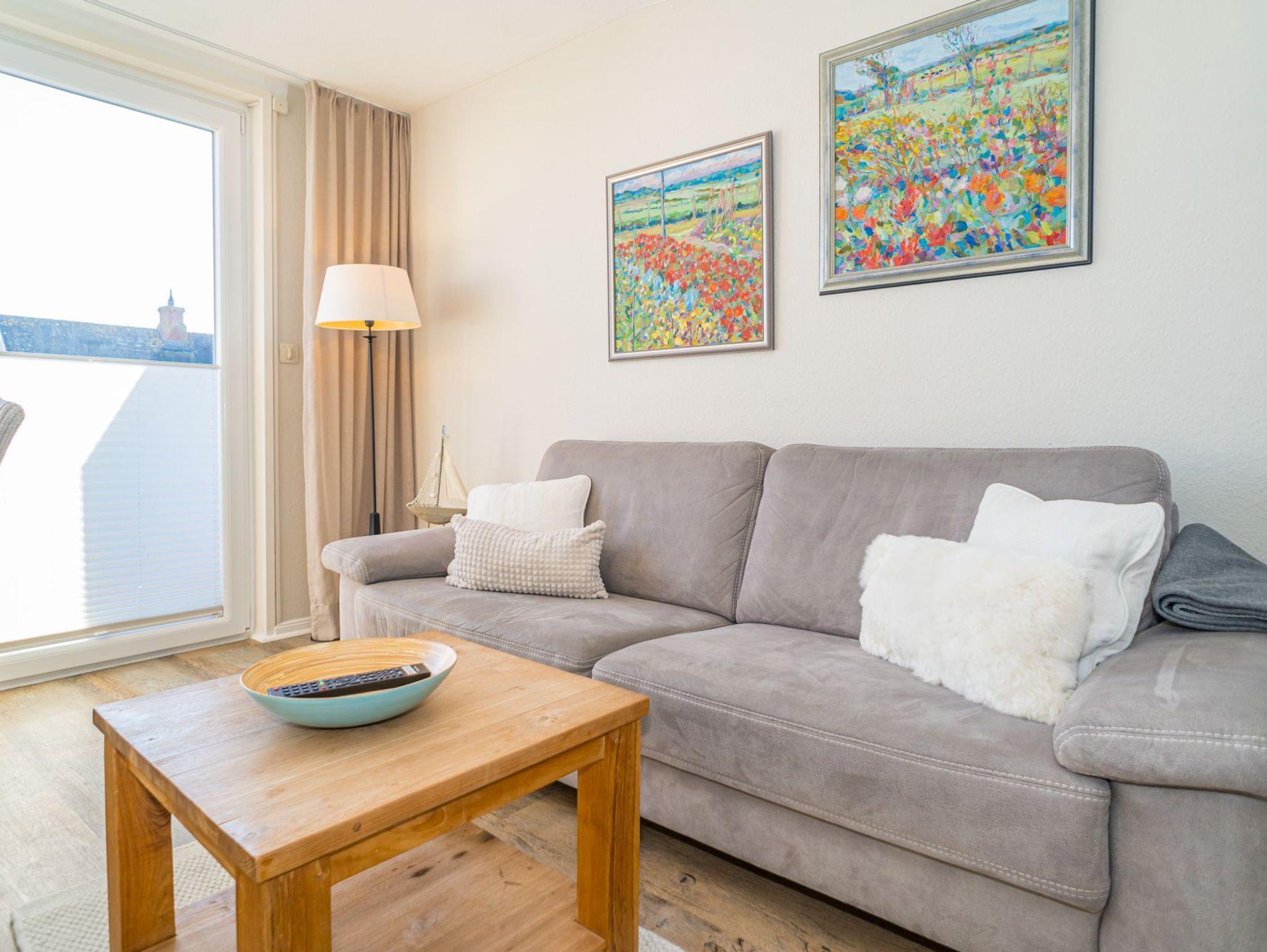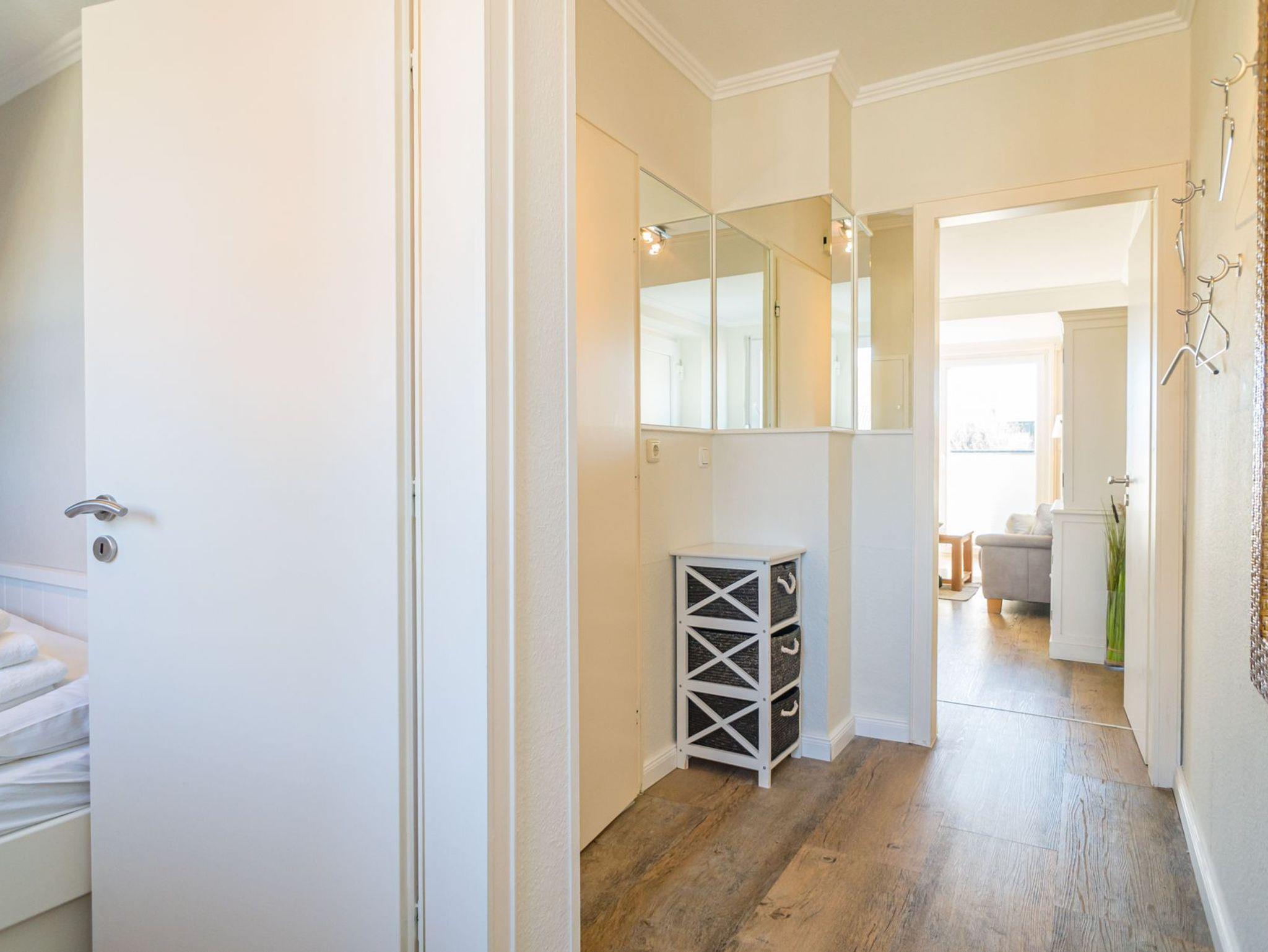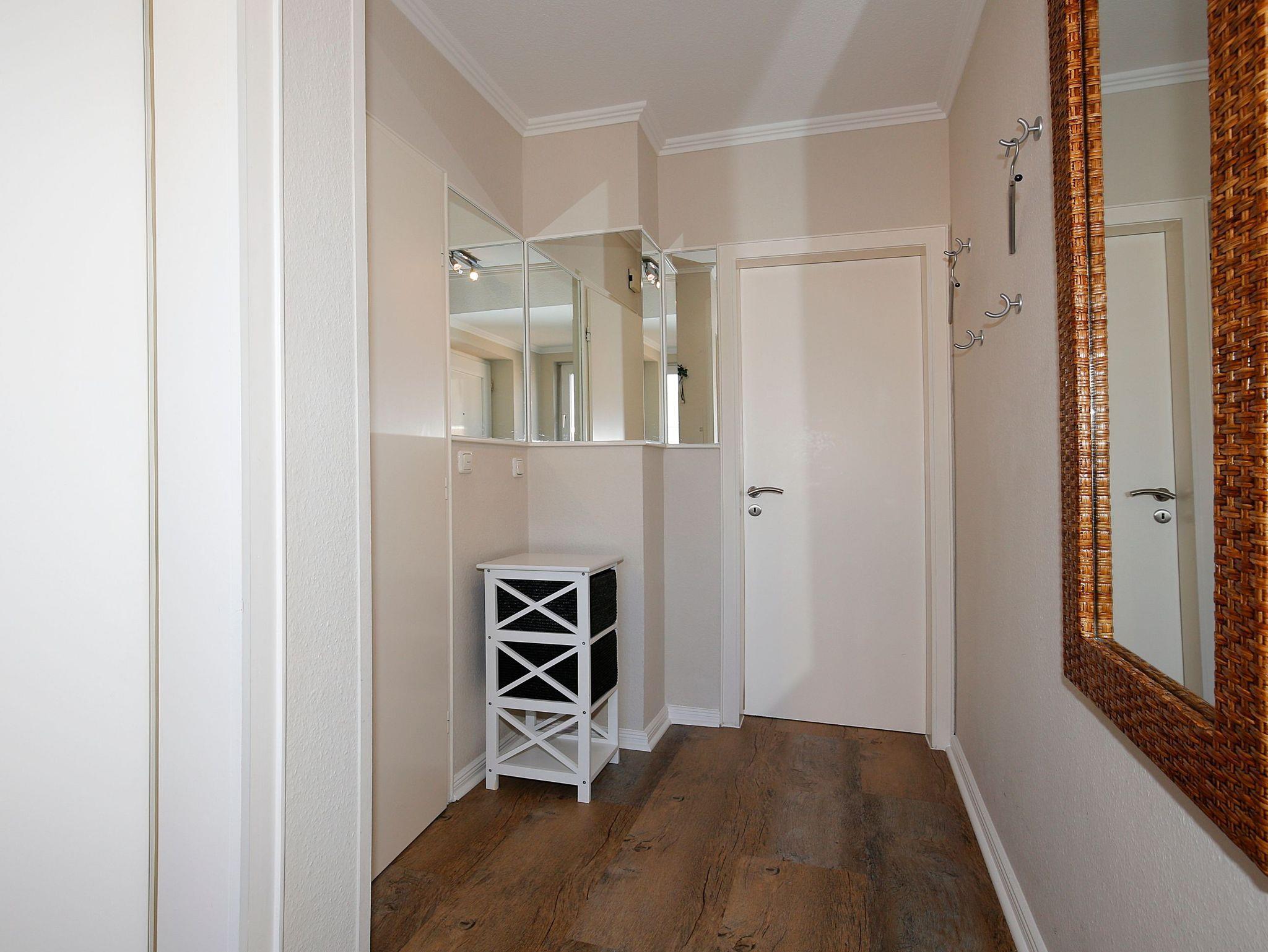 Beim Betreten der Wohnung gelangen Sie in den Flur, der direkt in das neu gestaltete Wohnzimmer führt. Hier finden Sie eine offene Küchenzeile mit moderner Ausstattung, darunter ein Geschirrspüler, eine Mikrowellen-Backofen-Kombination, eine Kaffeemaschine, ein Espressovollautomat und ein Toaster. Vom Wohnzimmer aus haben Sie Zugang zum sonnigen Süd-Balkon, perfekt für entspannte Stunden im Freien. Auf dieser Ebene befindet sich zudem ein Schlafzimmer mit einem gemütlichen Doppelbett (ca. 1,40 x 1,90 m) sowie ein Duschbad/WC. Für Unterhaltung sorgen Kabel-TV, Radio/CD und ein Telefon mit kostenlosem Wireless-LAN mit DSL-Anschluss. Das weitere Schlafzimmer hat ein großzügiges Doppelbett und reichlich Schrankraum für Ihre Garderobe.