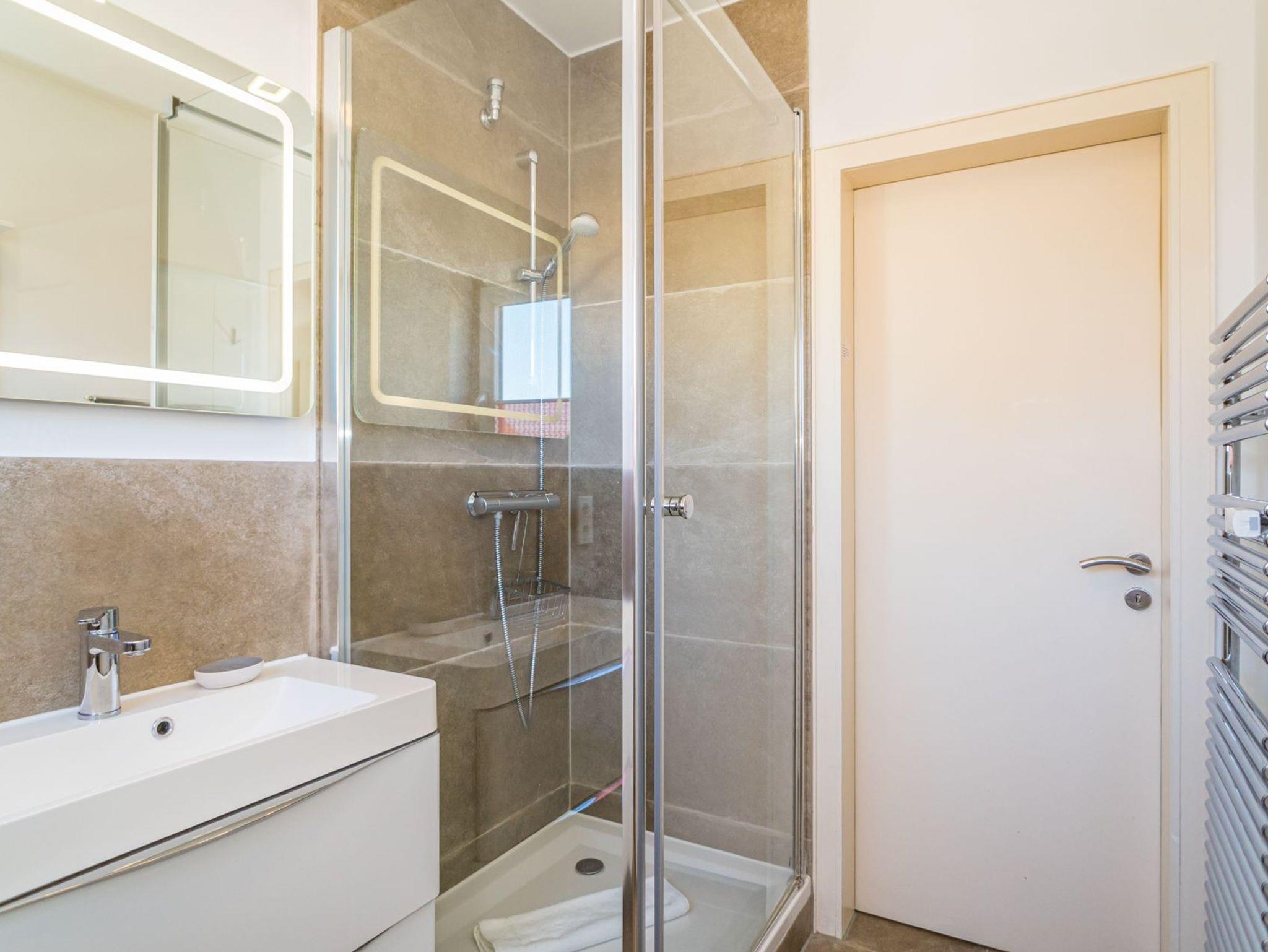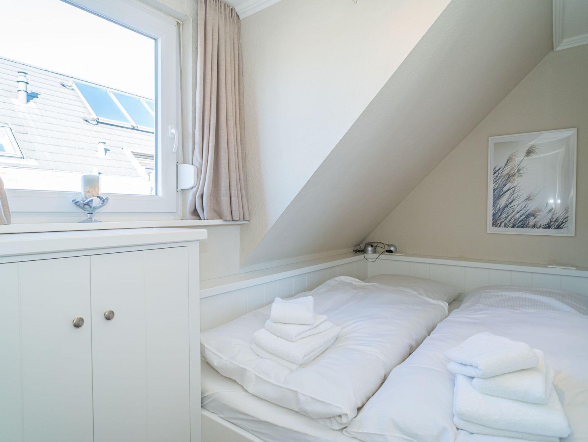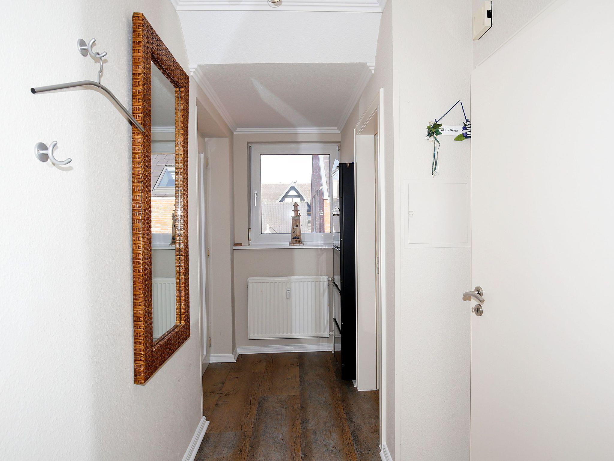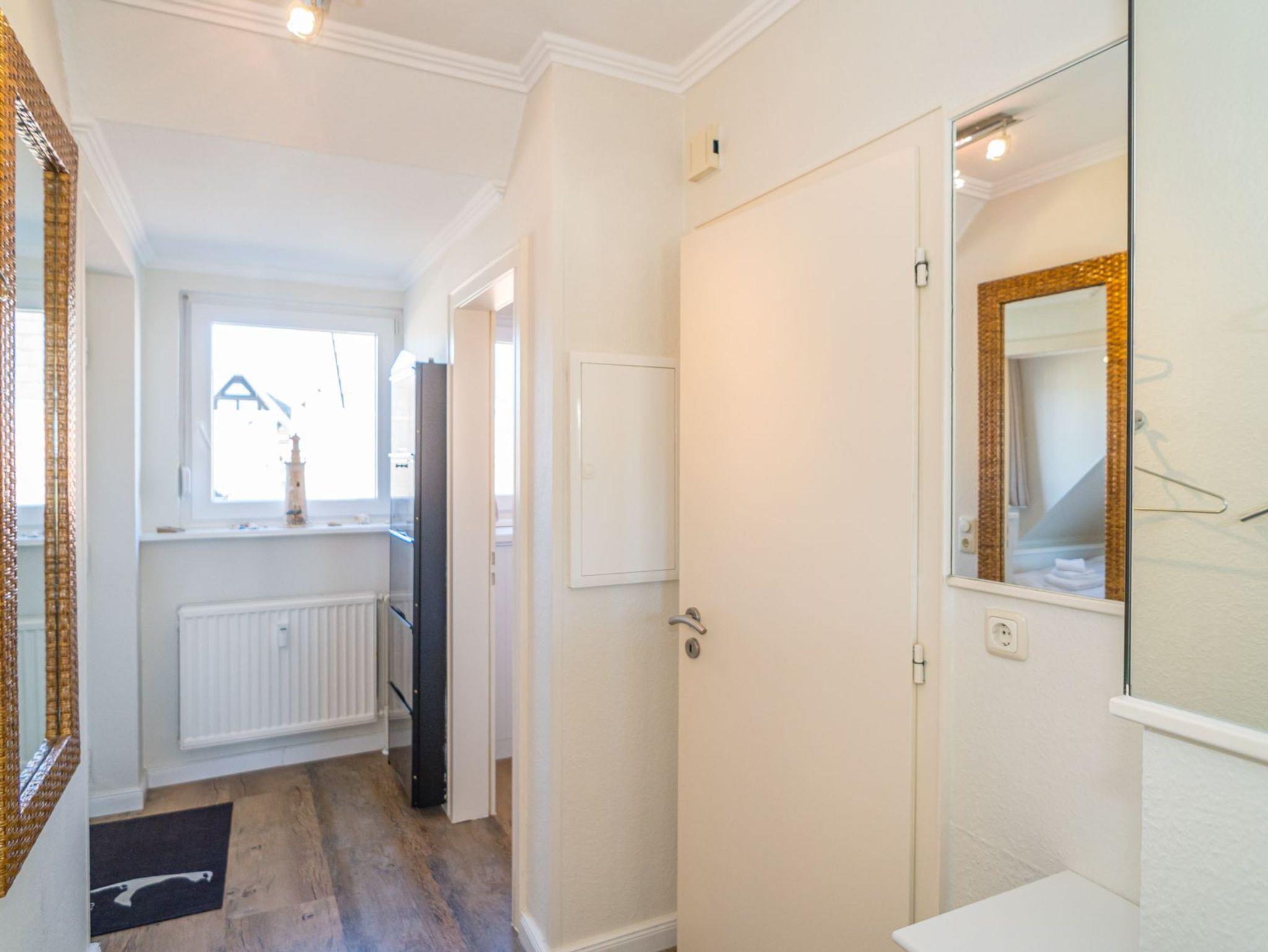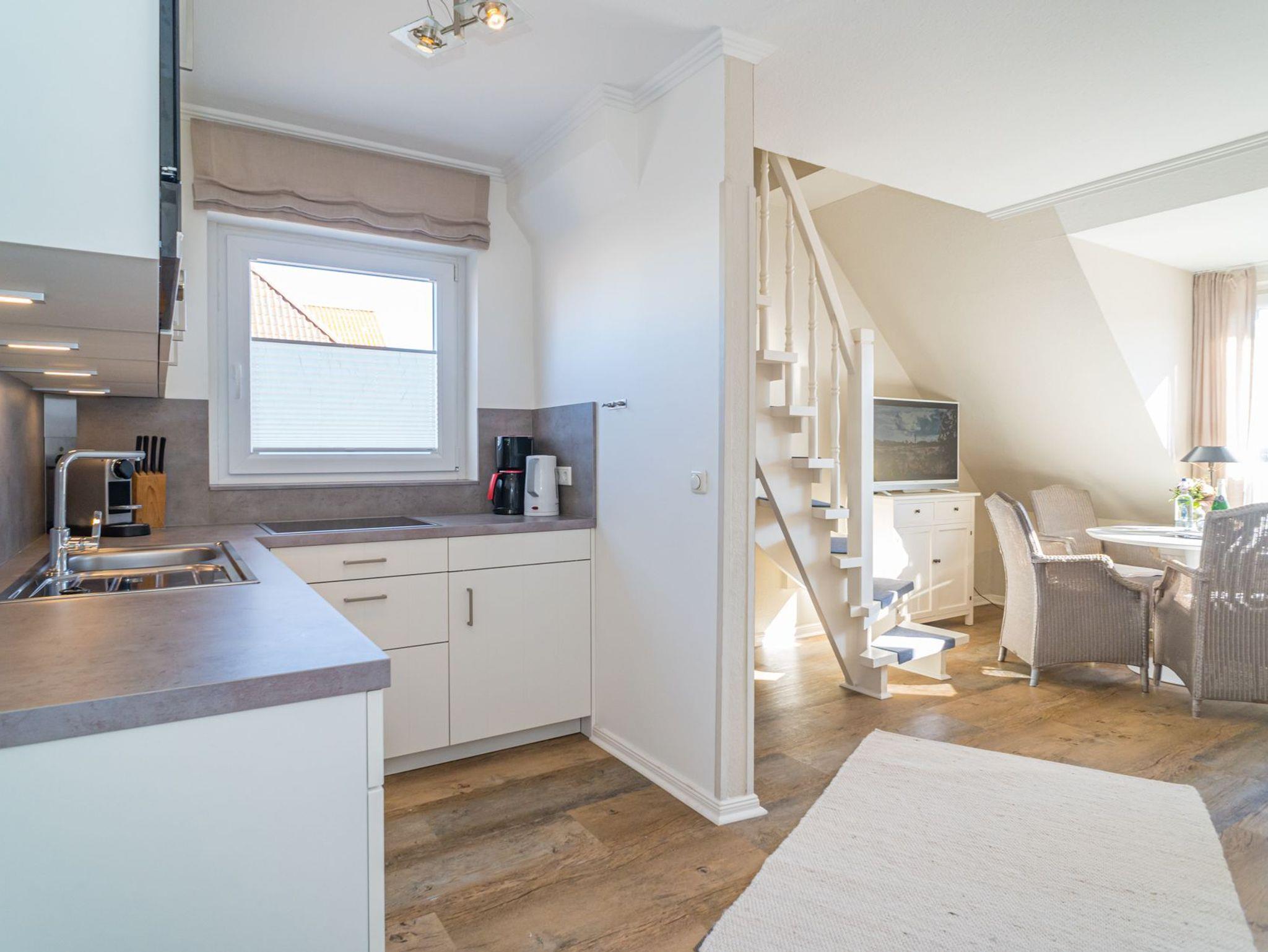 Beim Betreten der Wohnung gelangen Sie in den Flur, der direkt in das neu gestaltete Wohnzimmer führt. Hier finden Sie eine offene Küchenzeile mit moderner Ausstattung, darunter ein Geschirrspüler, eine Mikrowellen-Backofen-Kombination, eine Kaffeemaschine, ein Espressovollautomat und ein Toaster. Vom Wohnzimmer aus haben Sie Zugang zum sonnigen Süd-Balkon, perfekt für entspannte Stunden im Freien. Auf dieser Ebene befindet sich zudem ein Schlafzimmer mit einem gemütlichen Doppelbett (ca. 1,40 x 1,90 m) sowie ein Duschbad/WC. Für Unterhaltung sorgen Kabel-TV, Radio/CD und ein Telefon mit kostenlosem Wireless-LAN mit DSL-Anschluss. Das weitere Schlafzimmer hat ein großzügiges Doppelbett und reichlich Schrankraum für Ihre Garderobe.