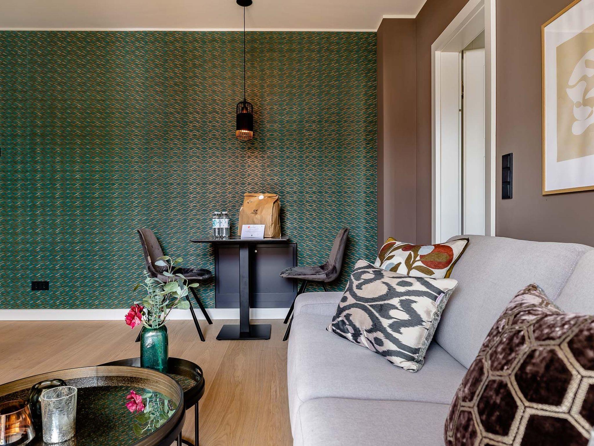 Mit hohen Decken, lichtdurchfluteten Räumen und einer hochmodernen Ausstattung überzeugt das Apartment “Living Lorens No. 5”. Beim Betreten der Ferienwohnung gelangen Sie direkt in den offenen Wohn- und Essbereich mit einem zusätzlichen Schlafsofa. Die Küche ist mit Geräten von Top-Herstellermarken wie Miele und Gaggenau ausgestattet. Für alle, die ihren Kaffee am Morgen gerne draußen genießen, ist der charmante Balkon in Richtung Osten ein echtes Highlight. Dort können Sie gemeinsam mit Ihren Liebsten entspannt den Sonnenaufgang genießen. Für die wohlverdiente Entspannung sorgen die Regendusche im Badezimmer und das gemütliche COCO-MAT Boxspringbett im Schlafzimmer. Zum Start Ihres Aufenthaltes bekommen Sie ein kleines Starterpaket für Küche und Bad geschenkt. Für eine optimale Wohlfühltemperatur, auch im Winter, gibt es im gesamten Apartment Fußbodenheizung. Ihr Vierbeiner darf in Ihrem Urlaub nicht fehlen? Kein Problem, Hunde sind bei uns im Living Lorens gerne gesehen. Ein kleines Dog-Paket inklusive Hundekörbchen und vieles mehr können Sie bequem auf Wunsch dazu buchen.