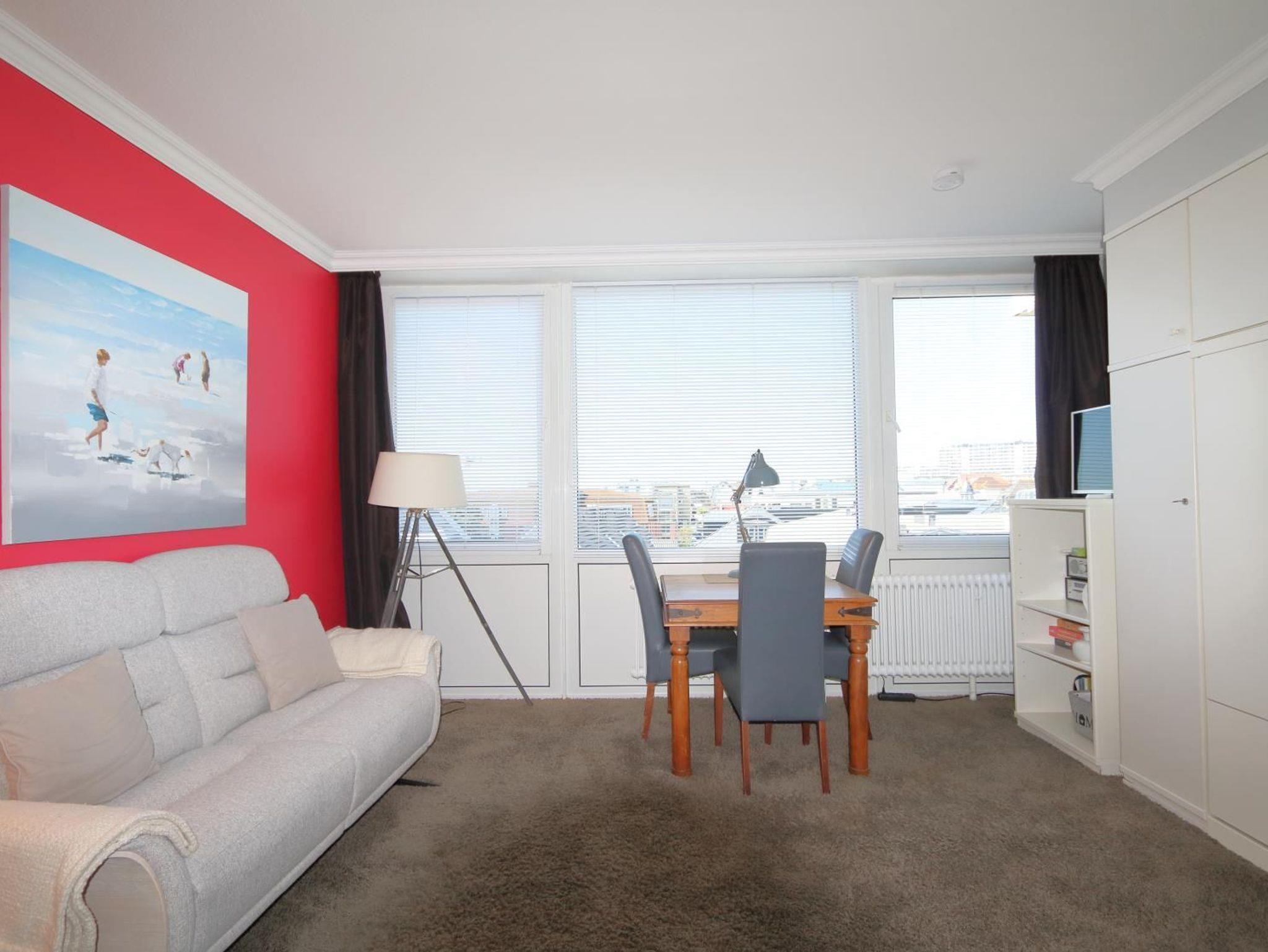 Das Appartementhaus steht an der Fußgängerzone Wilhelmstraße, die in die Friedrichstraße übergeht. Zum Strand sind es ca. 500 m. Das Appartement befindet sich in der 4. Etage mit Blick Richtung Westen.