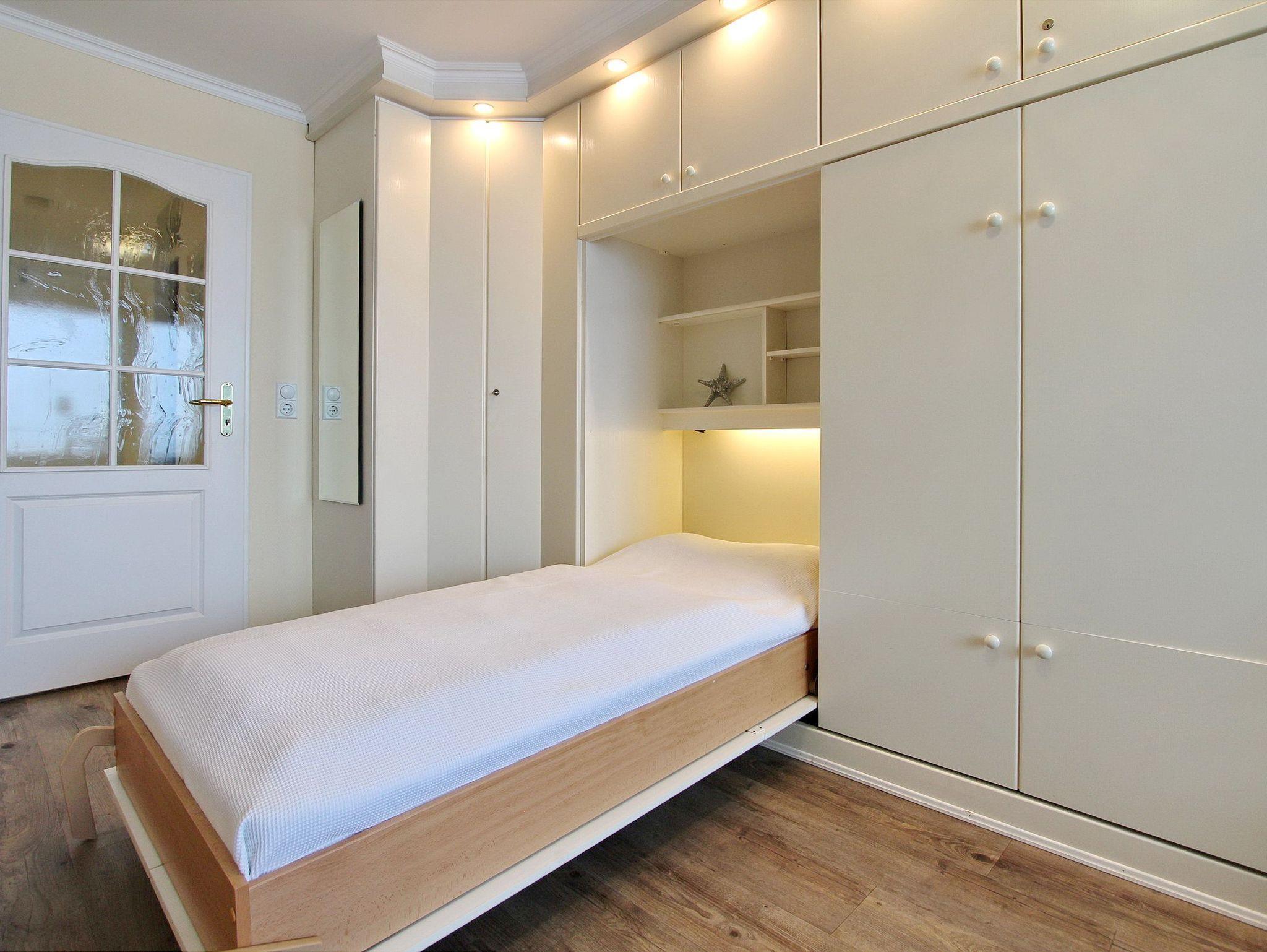 Kleine, aber sehr feine Einzimmerwohnung in der 6. Etage im Haus Metropol mit herrlichem Blick über den Strand und die Nordsee. Wohn-/Schlafraum mit vorgelagertem Westbalkon und Balkonmöbeln. In dieser Wohlfühloase stehen ihnen Einzelschrankbetten, eine Couch sowie ein Essplatz mit 2 Stühlen an Fenster zur Verfügung. Der Designfussboden in Holzoptik ist nicht nur hygienisch, sondern bietet auch Vorteile für Hausstauballergiker. Das Badezimmer verfügt über eine Dusche und einen Fön. In der Einbauküche im Flur mit Mikrowelle, Ceranfeld und zusätzlicher Senseo Kaffeepad Maschine können sie sich selbst verpflegen. Zur technischen Ausstattung gehört: ein moderner Flachbildfernseher, ein Blueray Player und ein Radio mit CD Spieler. Der WLAN Hotspot (WEG Haus Metropol - Passwortfrei - ohne Gewähr) steht ihnen kostenfrei zur Verfügung. Die Größe dieser Nichtraucherwohnung beträgt ca. 25 m².