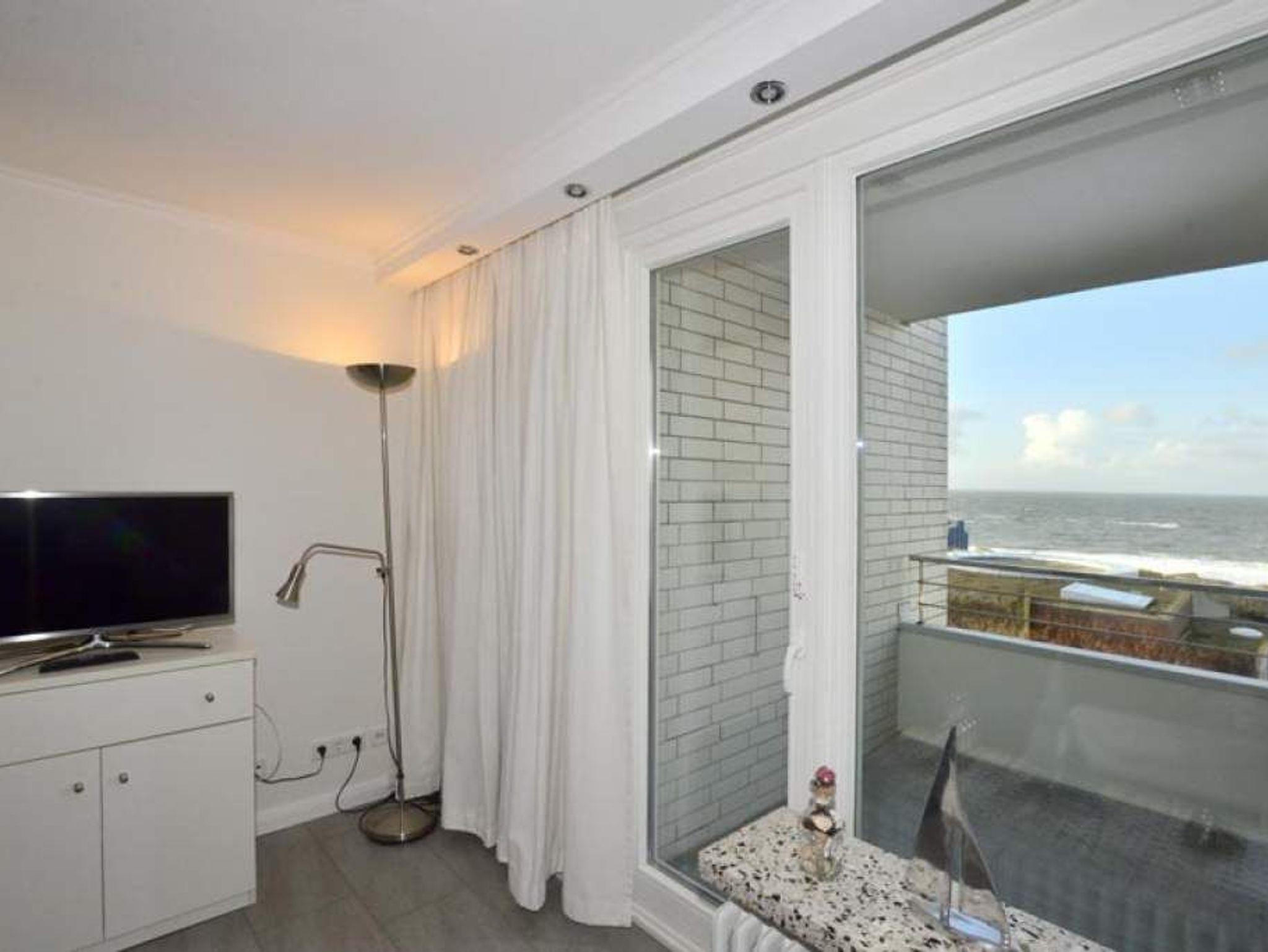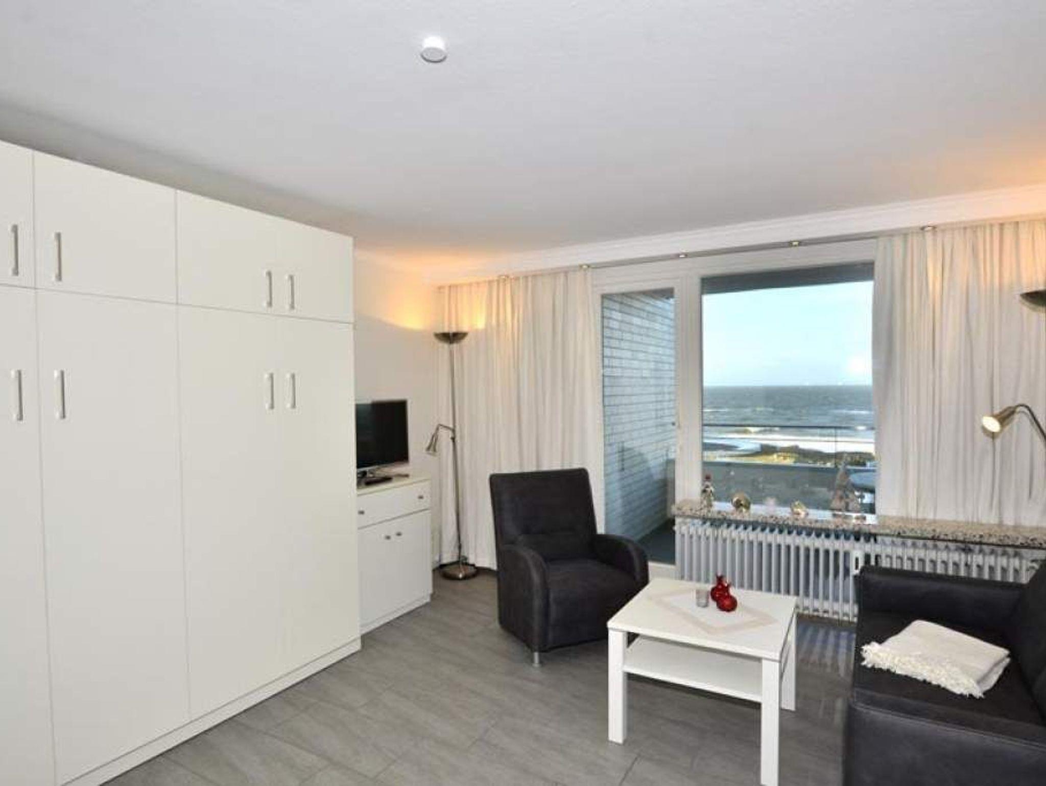 Gemütliche 1,5-Zimmer-Nichtraucher-Ferienwohnung, ca. 44 qm in der 6. Etage zur Seeseite mit herrlichem Meerblick und Westloggia (Nachmittagssonne, mit Balkonmöbeln und Auflagen) für max. 3 Personen.