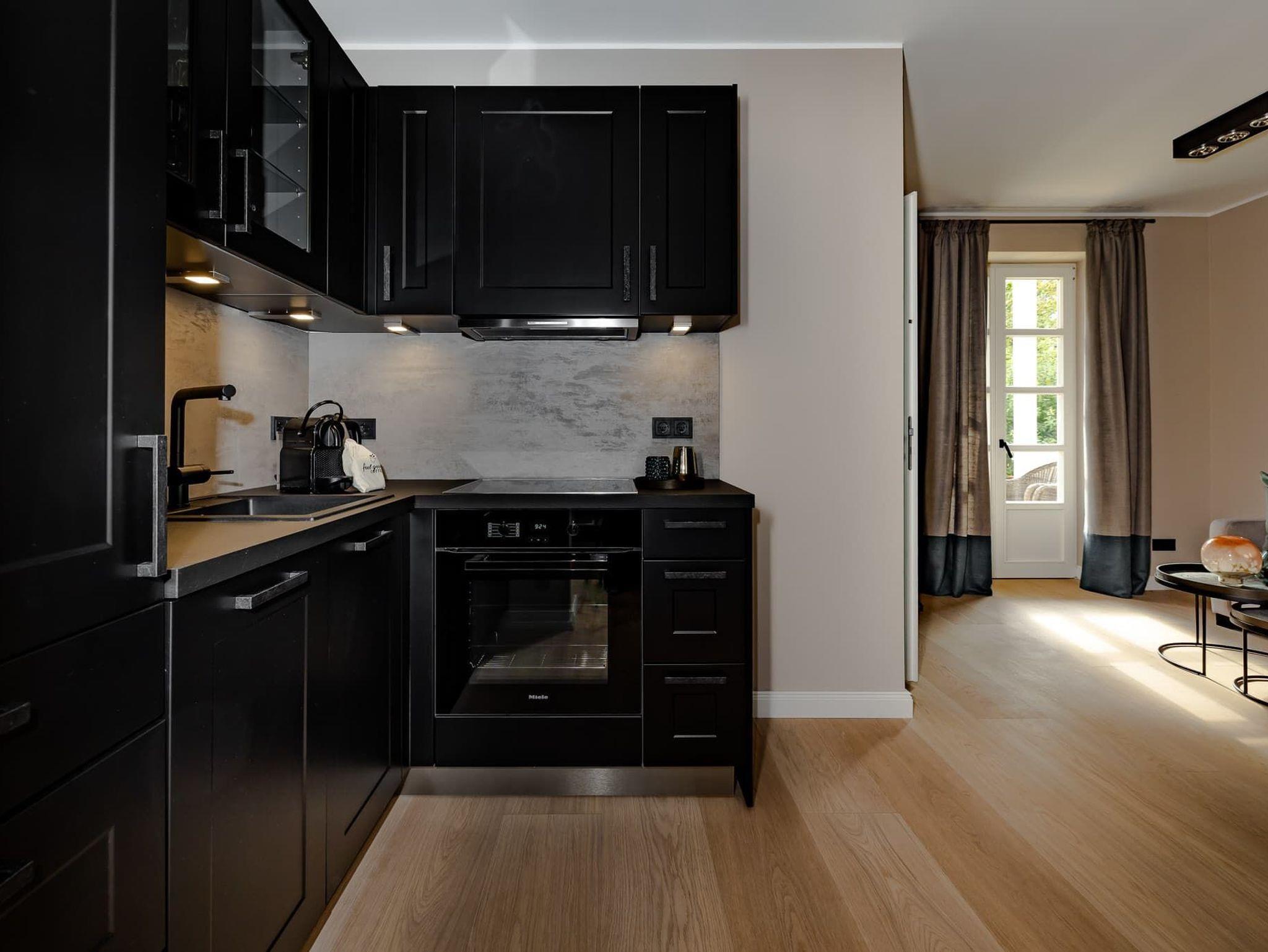 Hohe Decken, lichtdurchflutete Räume und eine stylische, moderne Ausstattung machen das 38 qm große und renovierte Apartment zu einem Ort zum Wohlfühlen und Ankommen. Beim Betreten der Ferienwohnung gelangen Sie direkt in den offenen Wohn- und Essbereich inklusive Schlafsofa. Die Küche ist hochwertig eingerichtet und mit erstklassigen Geräten von Markenherstellern wie Miele und Gaggenau ausgestattet. Für alle, die ihren ersten Kaffee am Morgen gerne bei dem Anblick des Sonnenaufgangs genießen möchten, ist die charmante Terrasse in Richtung Osten garantiert ein echtes Highlight. Für die wohlverdiente Entspannung sorgt das gemütliche Boxspringbett im Schlafzimmer und die Regendusche im modernen Badezimmer. Ein kleines Starterpaket für Küche und Bad gibt es dazu. Zudem ist das gesamte Apartment mit einer Fußbodenheizung ausgestattet ideal für kältere Tage auf Sylt.