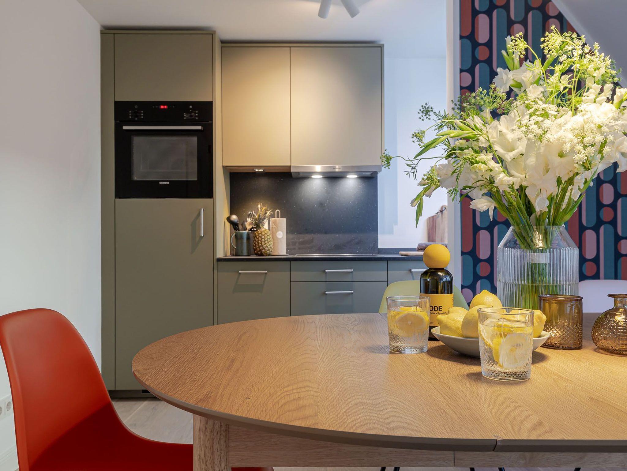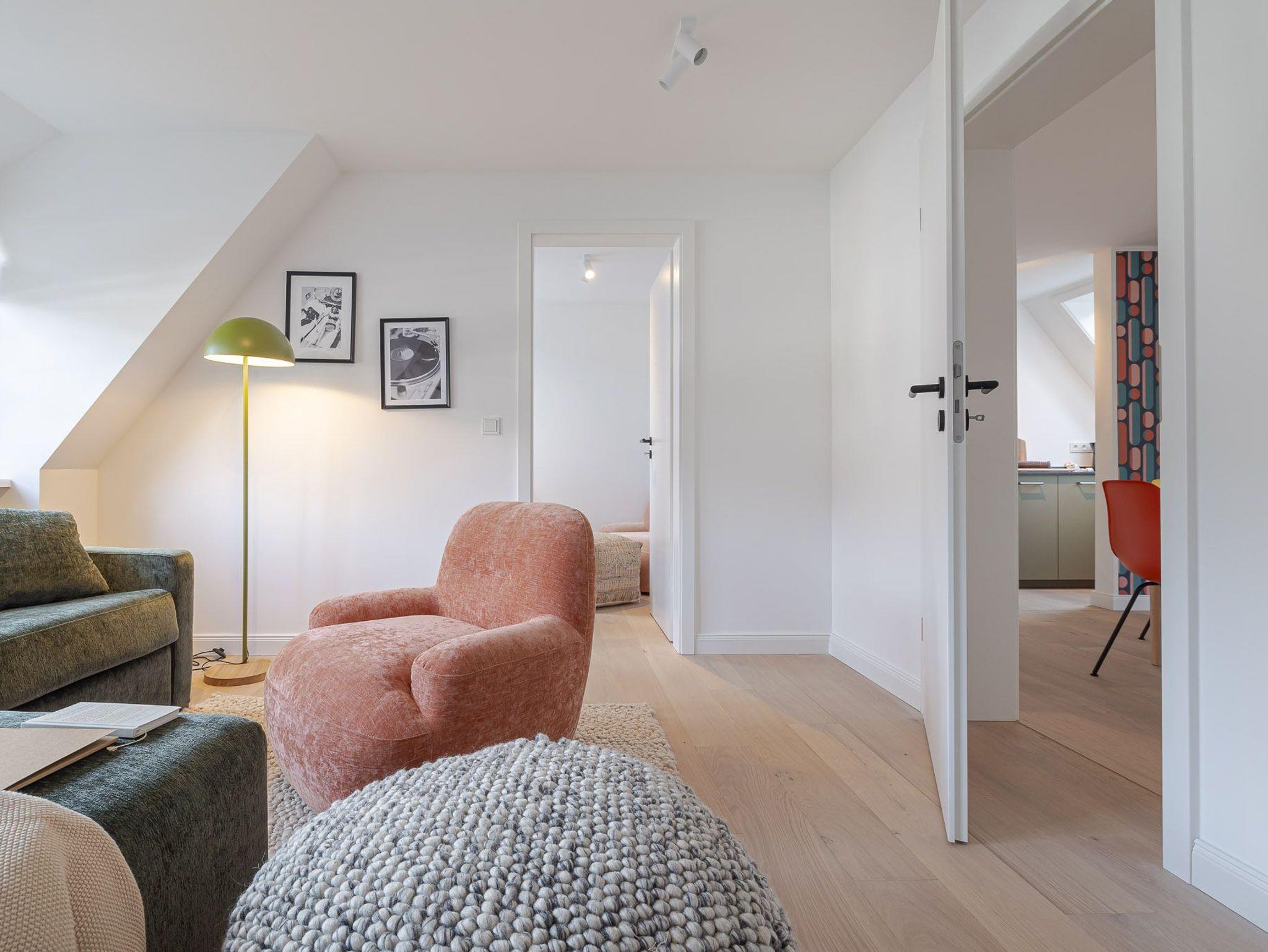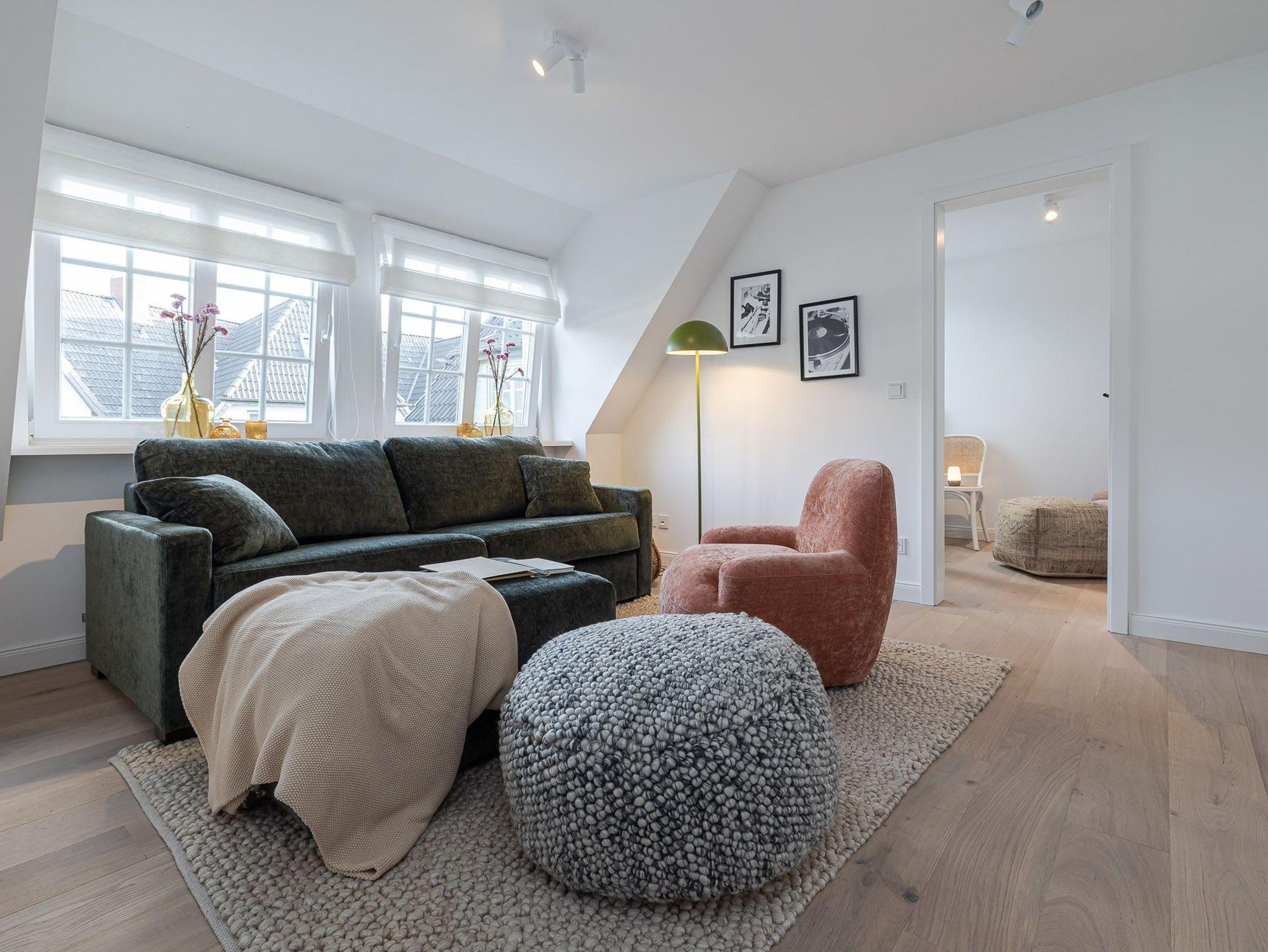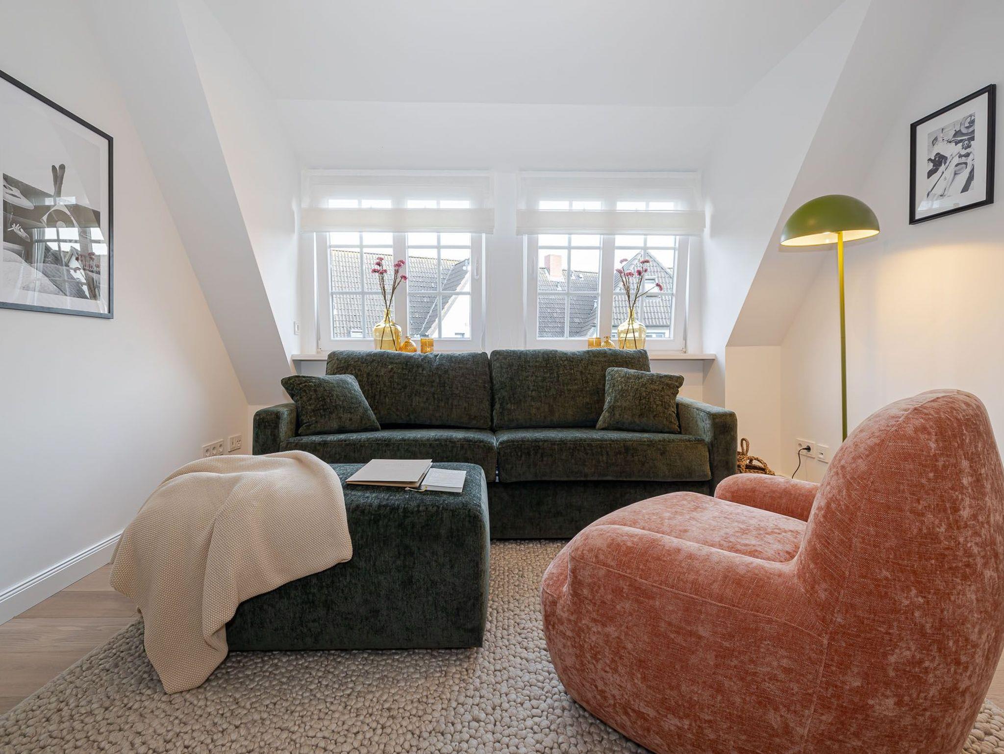 Die Kajüte #7 bietet Platz für bis zu 6 Personen. Schon auf den ersten Blick lässt sich dank des durchgängigen Designs im typischen Insellook erkennen: Das ist Sylt. Hohe und lichtdurchflutete Räume, edles Parkett aus Eiche und mit großer Sorgfalt ausgewählte Farbkombinationen verleihen dem Appartement einen ganz besonderen Charme.
