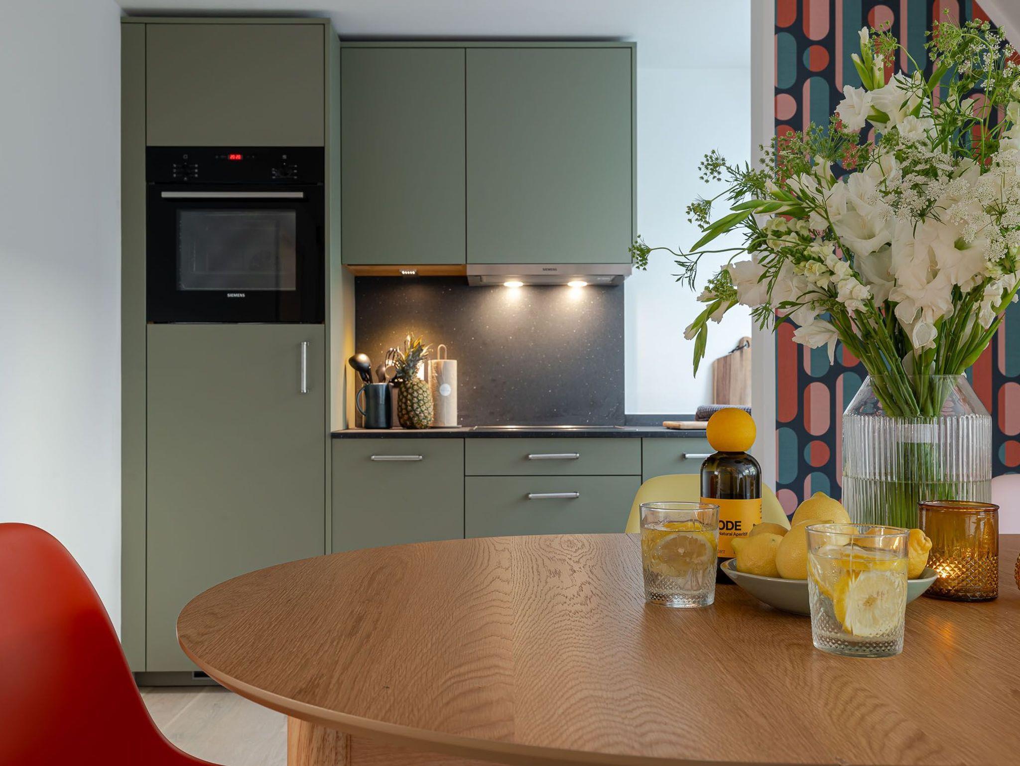 Das Beste kommt zum Schluss: Zu dieser Wohnung gehört ein kleiner eigener Gartenbereich, der mit Loungemöbeln von Mai bis Oktober zum Relaxen einlädt und hinter dem Dock 6a auf Sie wartet.