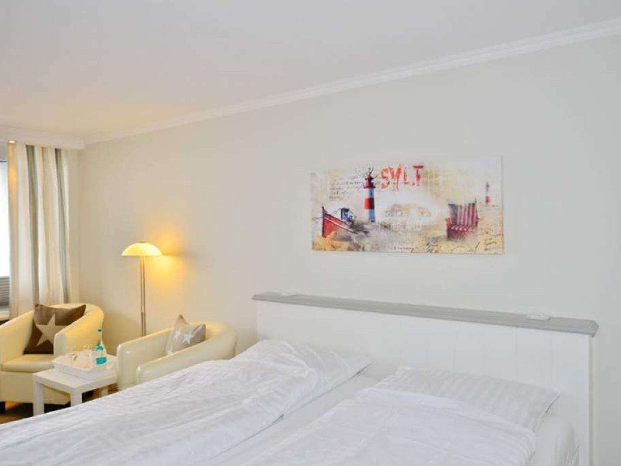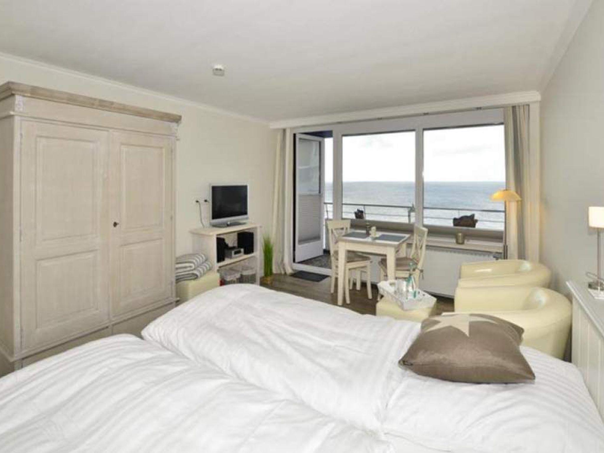 Top gelegene und im modernen Strandhaus-Stil komplett renovierte 1-Zimmer-Nichtraucher-Ferienwohnung (ca. 34 qm) in Westerland mit spektakulärem Meerblick in der 7. Etage.