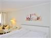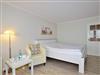 Der Wohn-/Schlafraum besteht aus 2 neuen cremefarbenen Cocktail-Sesseln jeweils mit bequemen Fußhockern, einem feststehenden Doppelbett, einem Essplatz, Kabel-Flachbild-TV, Radio/CD.