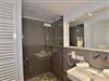 Das neue Duschbad/WC hat einen Waschtisch, einen Handtuchtrockner und einen Föhn.