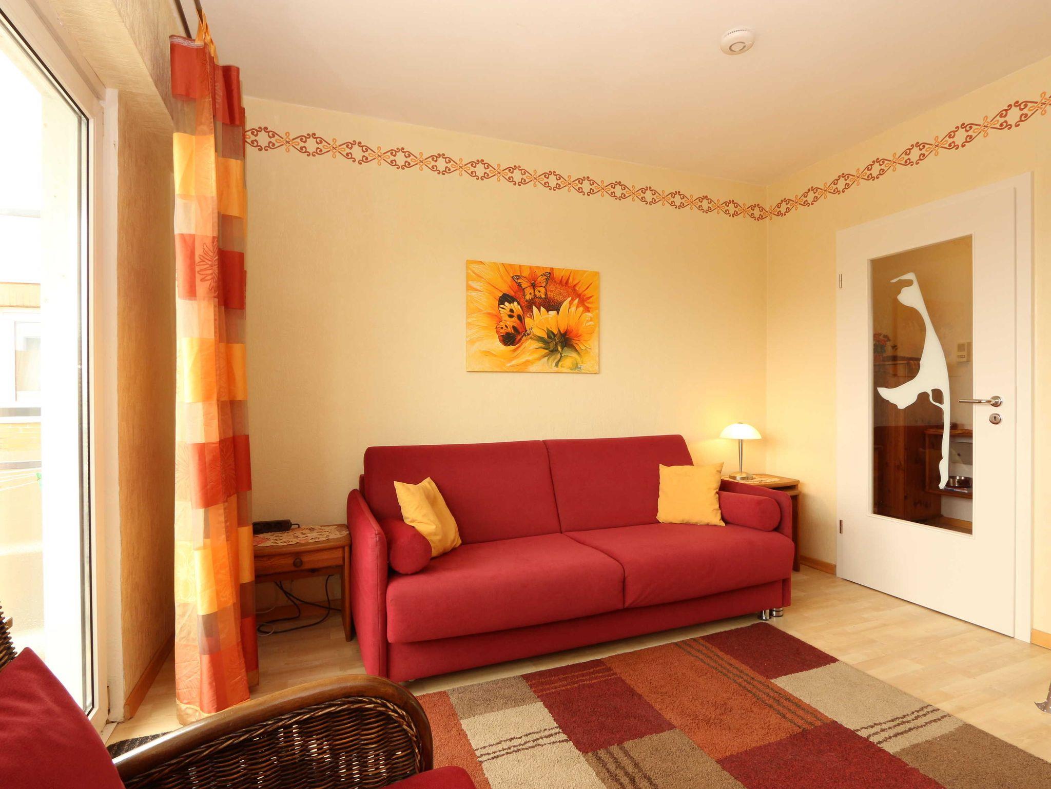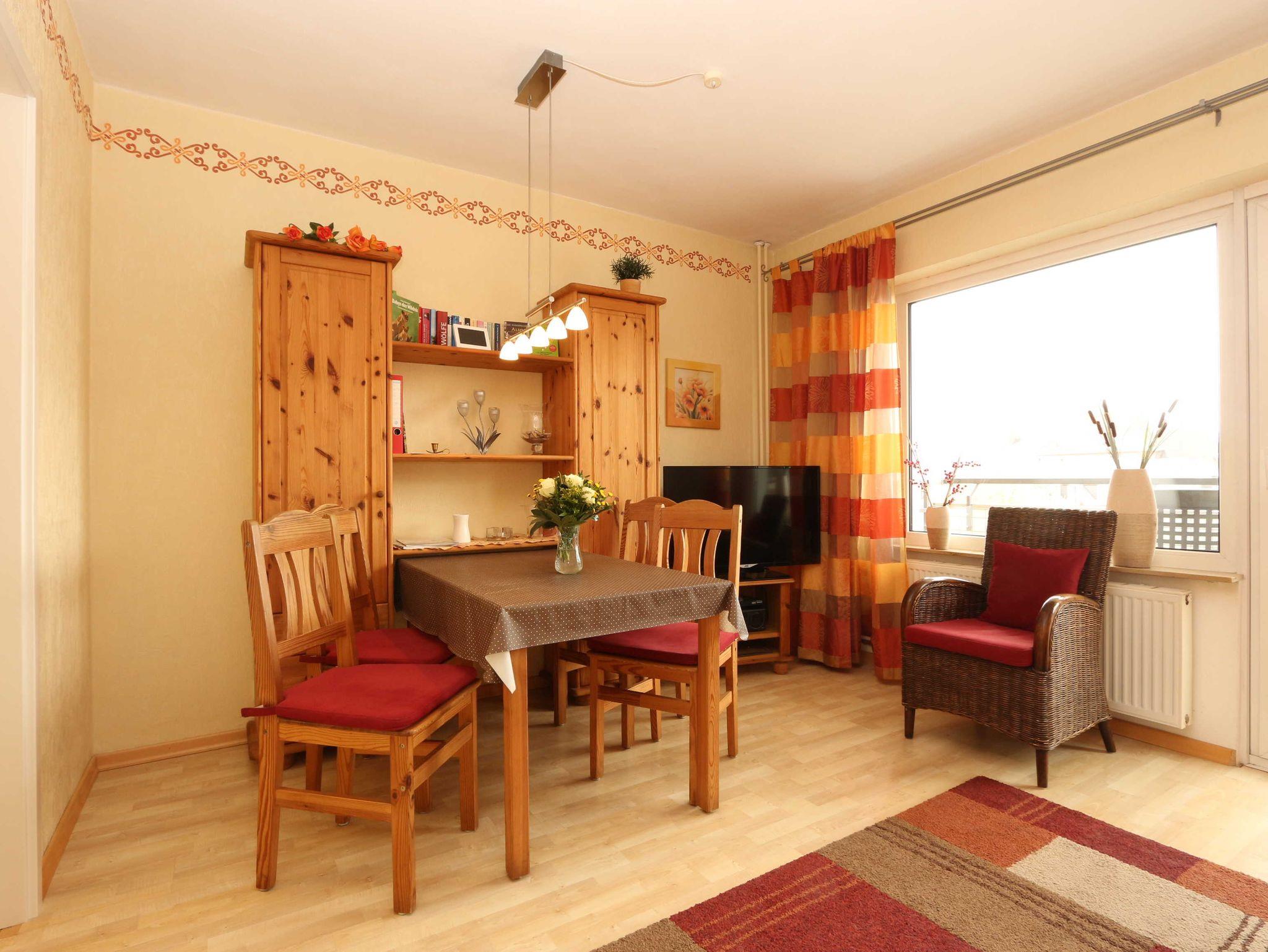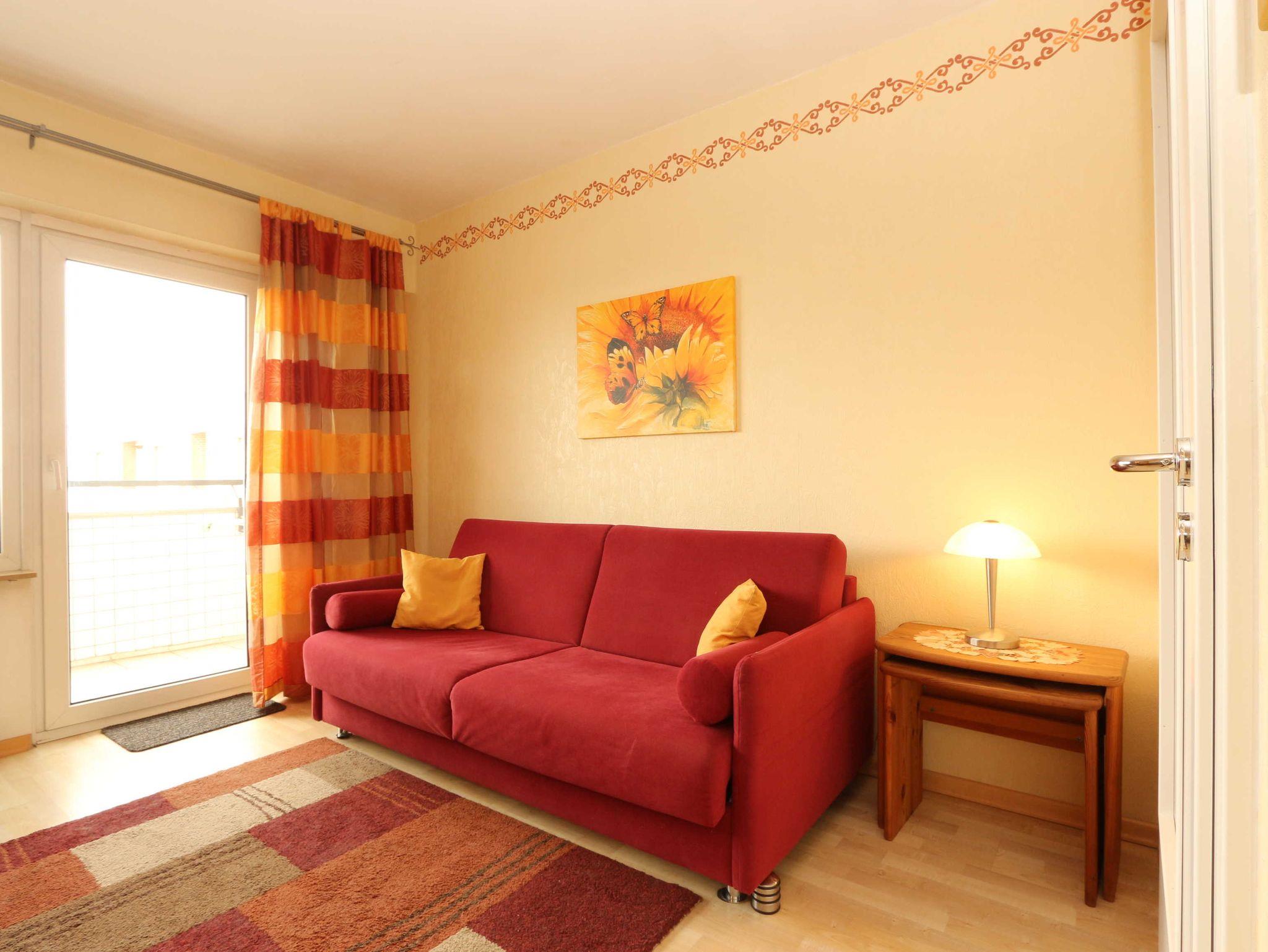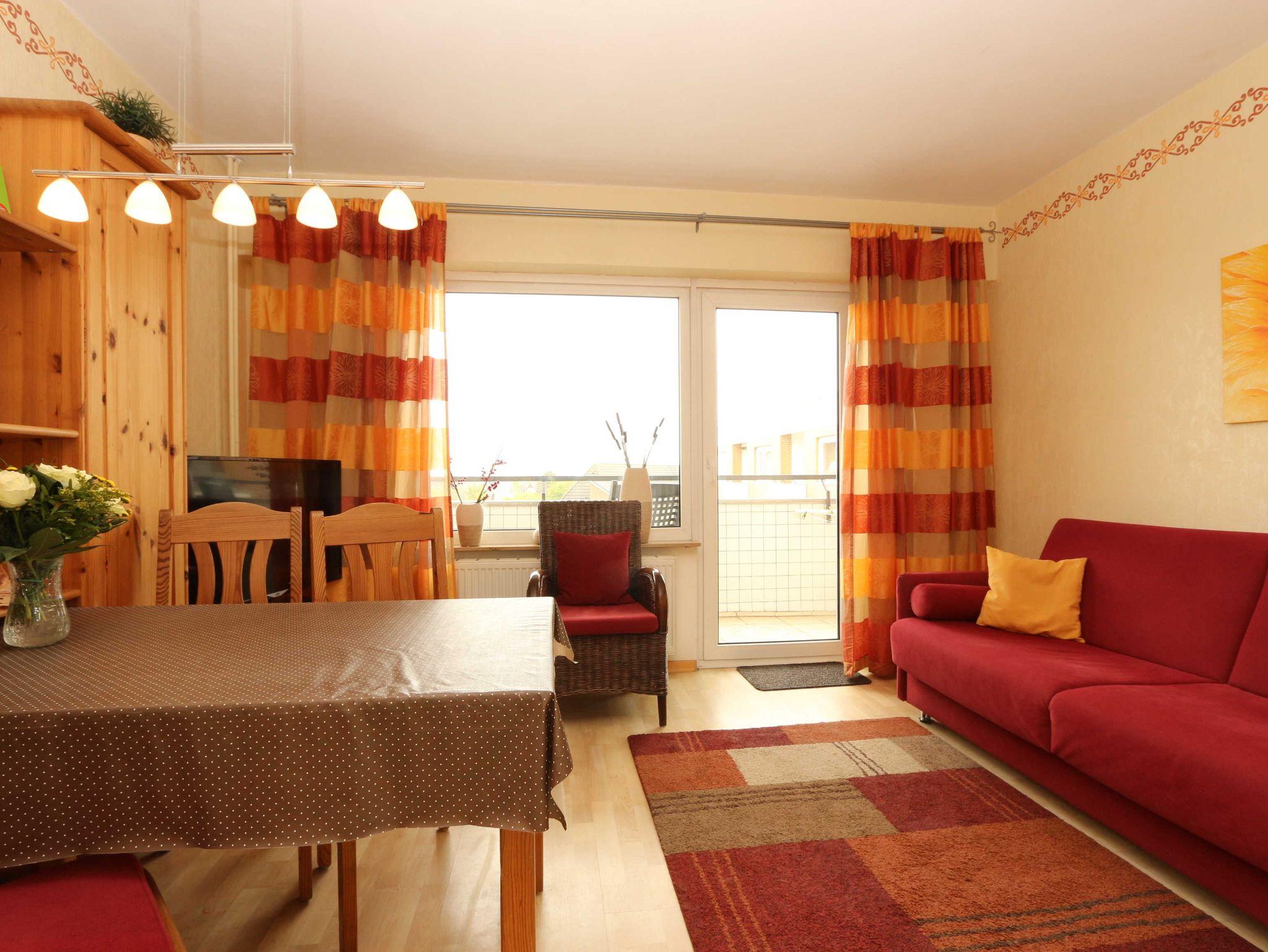• 2-Zimmer-Ferienwohnung (3.OG, Appartement 68) mit komfortabler Ausstattung für 4 Personen (ca. 39 m²)mit Wohn- und Esszimmer, Schlafzimmer, Küche, Bad und Balkon;