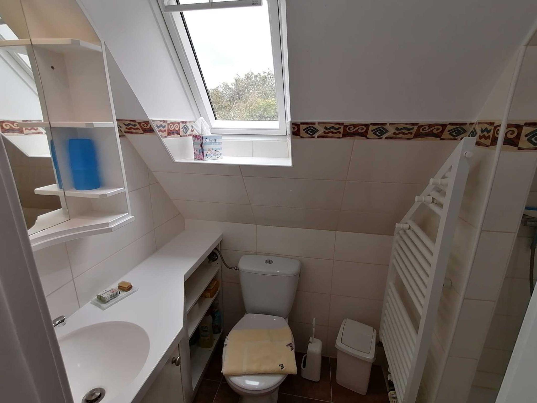 Bad mit Dusche/WC. Teilweise schräge Wände.