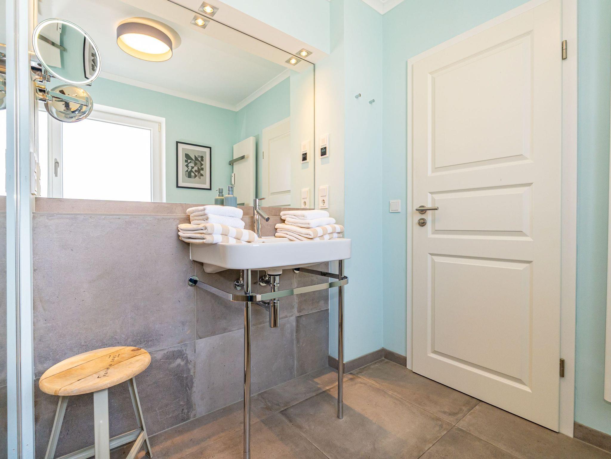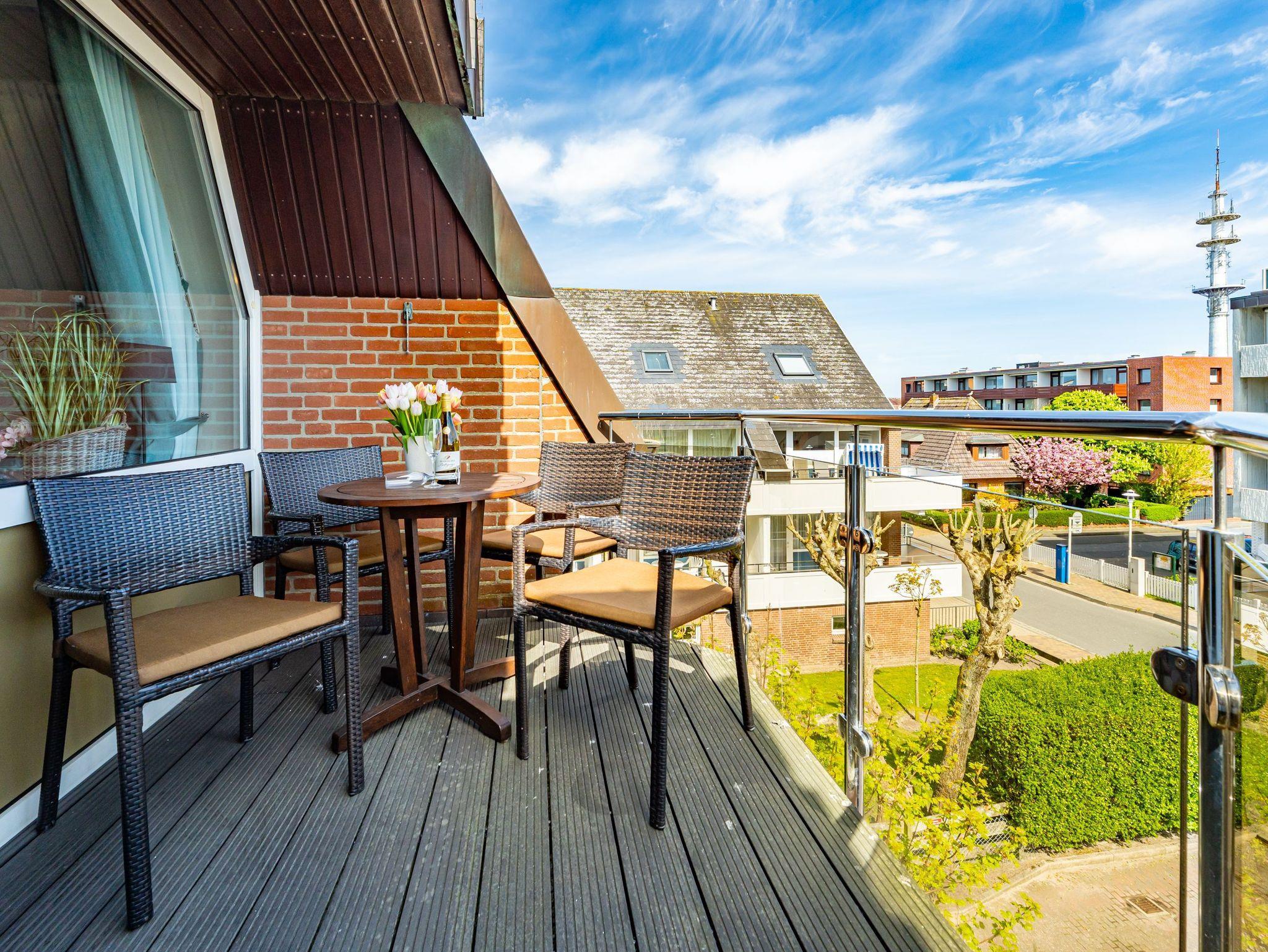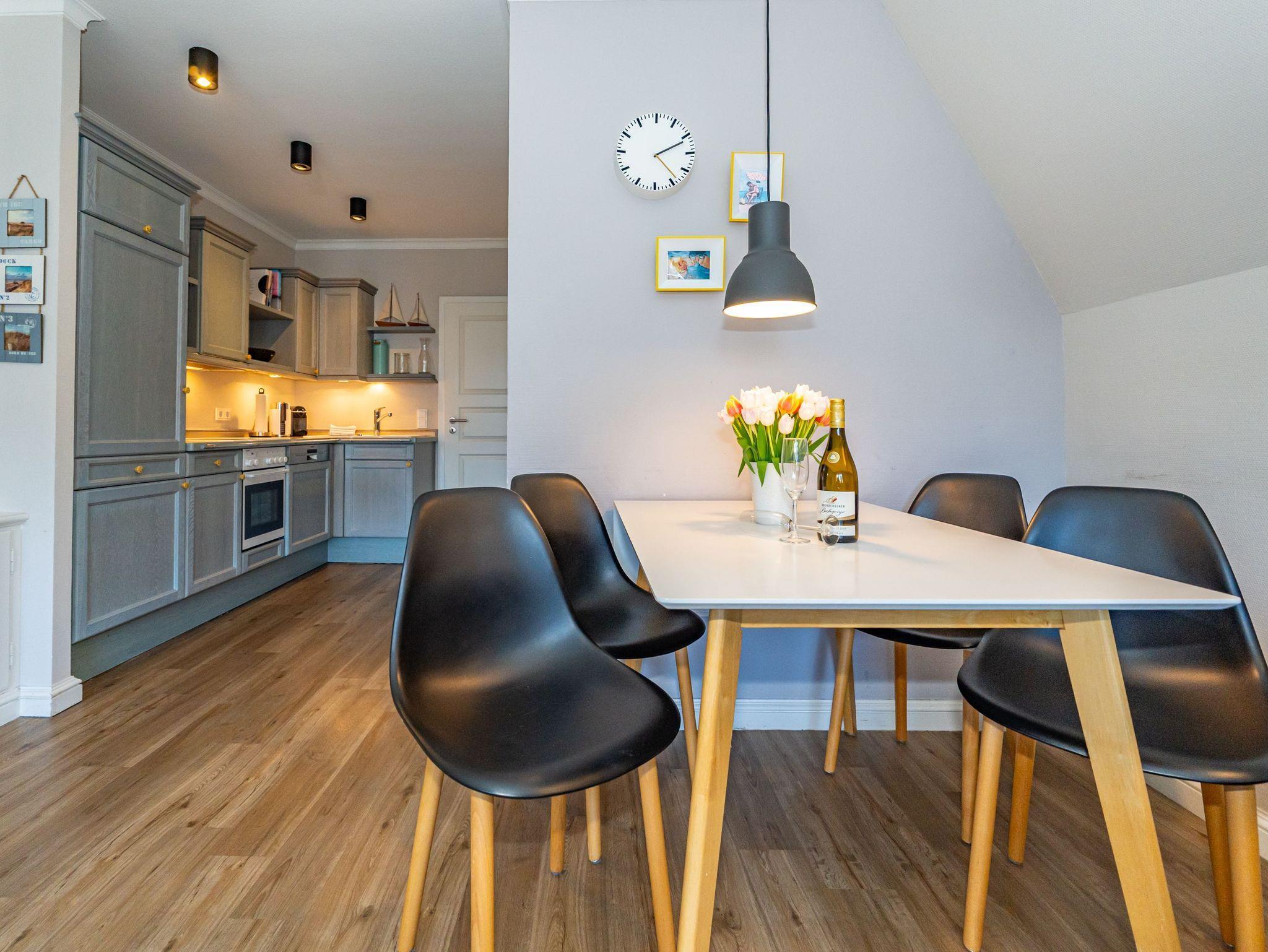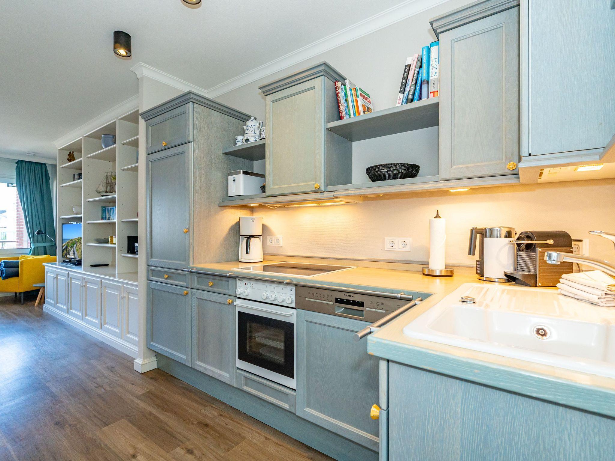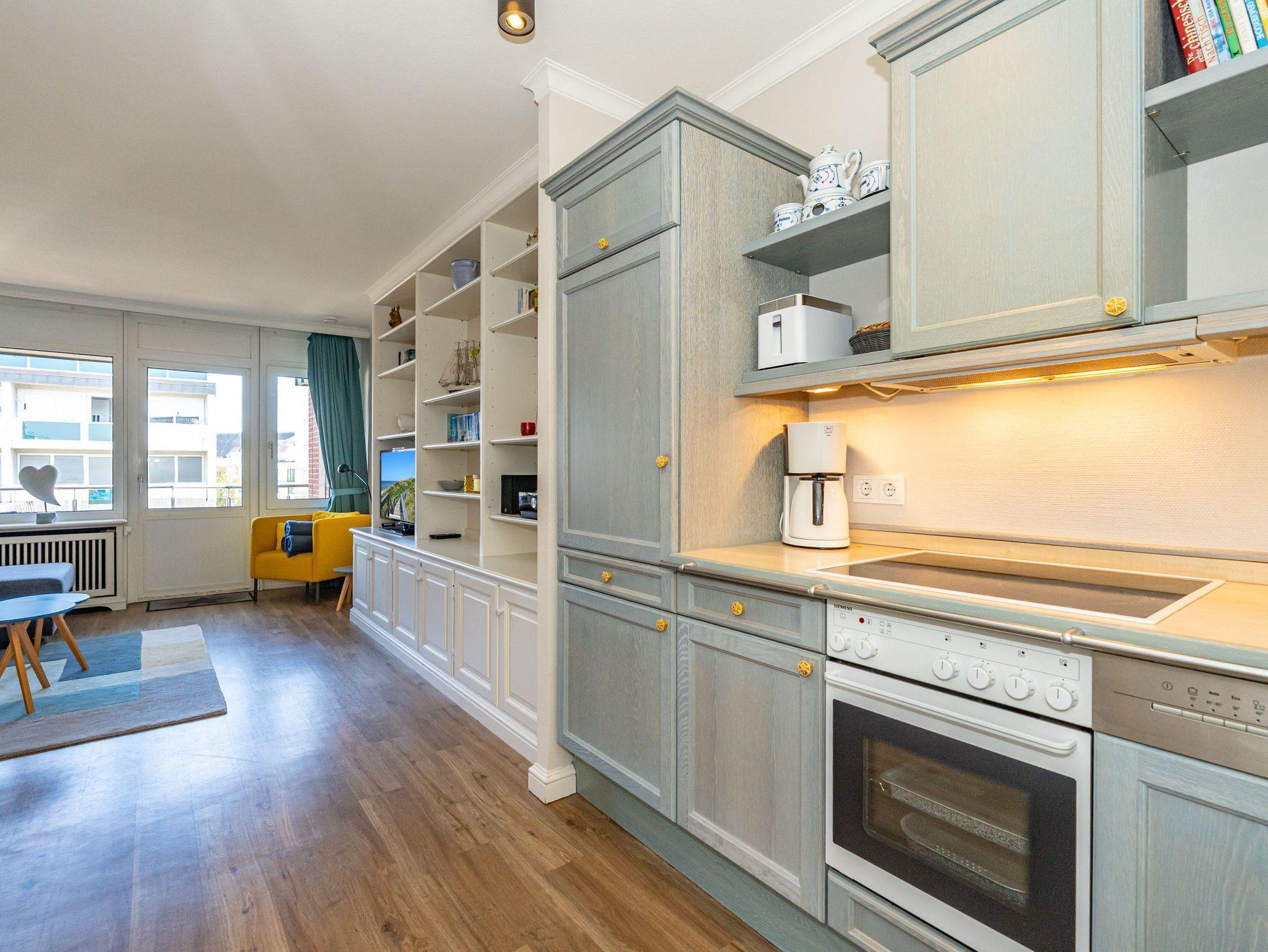 Mit pastelligen Farben und einem modernen Möbelmix bietet diese hochwertig ausgestattete Ferienwohnung Sylter Glück in Westerland auf einer Fläche von 75 m² Platz für maximal 4 Personen. Sie befindet sich in der 2. Etage und verfügt neben dem Wohnzimmer über ein Schlafzimmer sowie ein Badezimmer. Zur Ausstattung gehören ein Ostbalkon mit Balkonmöbeln, Auflagen, sowie ein offener WLAN Hotspot im Haus. Der Wohnbereich vereint eine gemütliche Schlafcouch (Liegefläche 1,40 x 2m), einen Flachbild-TV sowie eine voll ausgestattete offene Einbauküche mit Backofen, Geschirrspüler, Cerankochfeld sowie Nespressomaschine (Kapseln). Kühlschrank, Kaffeemaschine, Toaster und Wasserkocher gehören zur Grundausstattung. Vom Wohnzimmer aus hat man Zutritt auf den geschützten Balkon, der bei schönem Wetter zum sonnenbaden und verweilen einlädt. Für einen guten Start in den Tag sorgt das trendige großzügige Badezimmer, das nicht nur ein optischer Hingucker ist, sondern mit Regendusche, Fön und Handtuchtrockner entsprechende Annehmlichkeiten mit sich bringt.