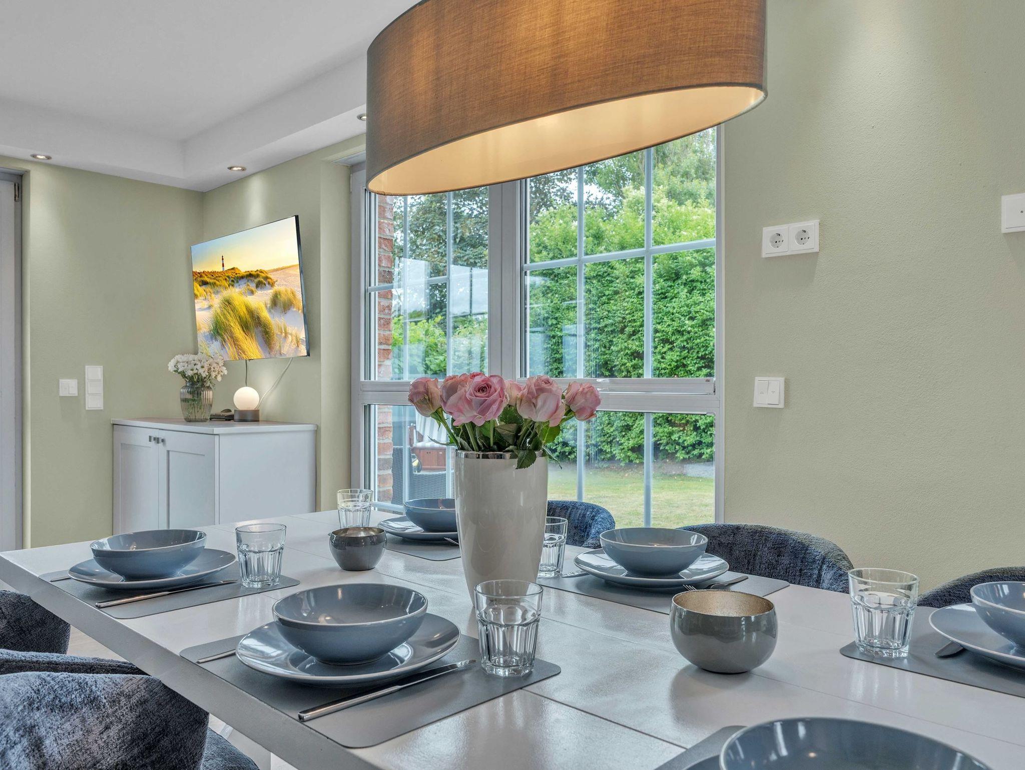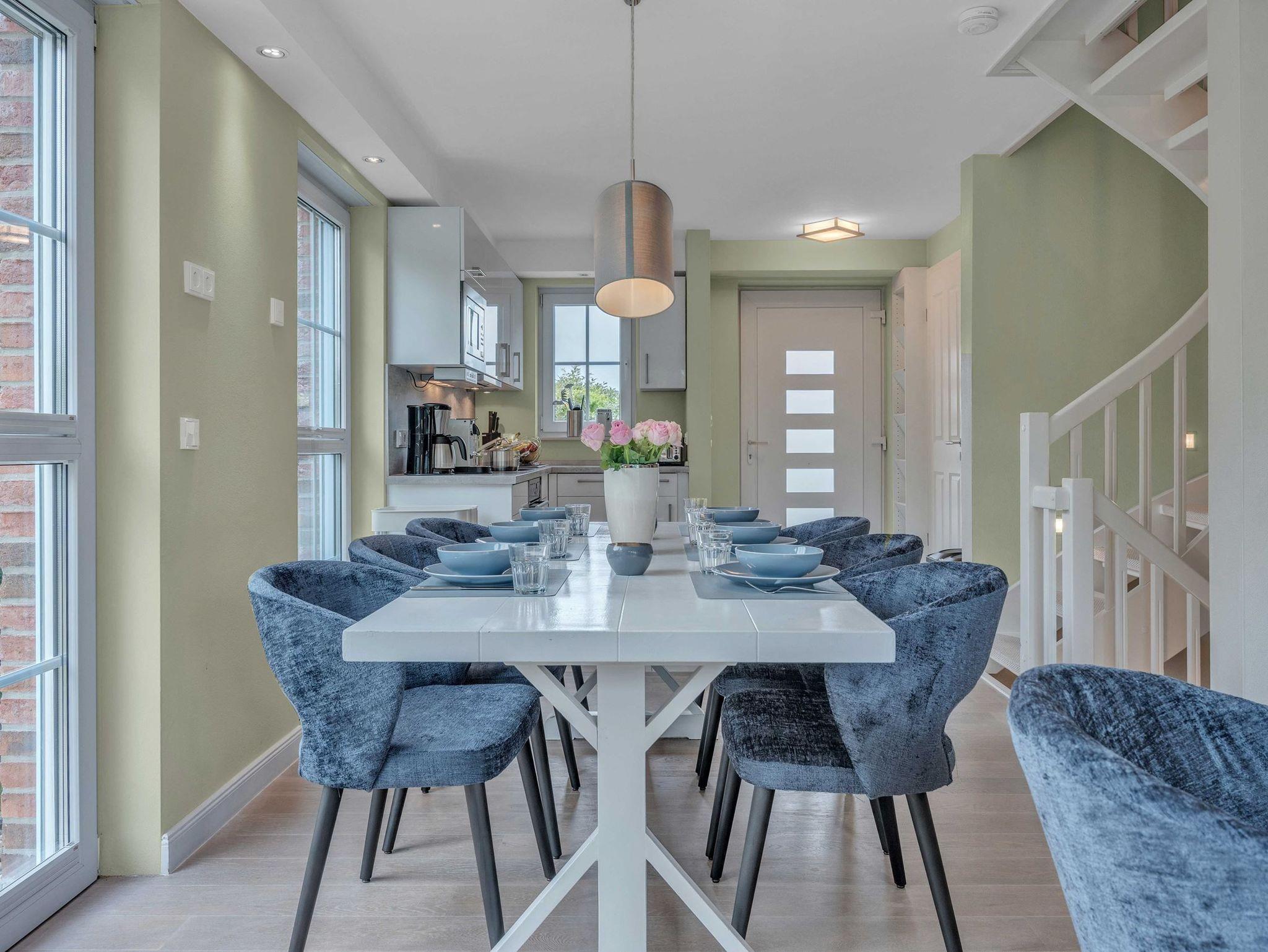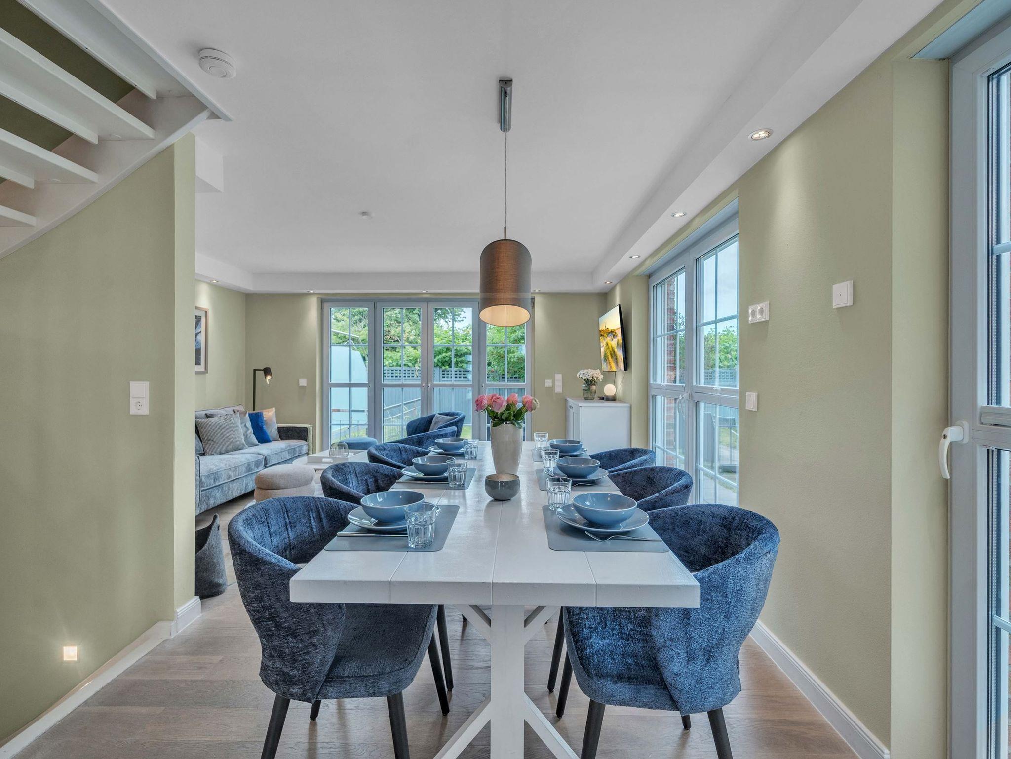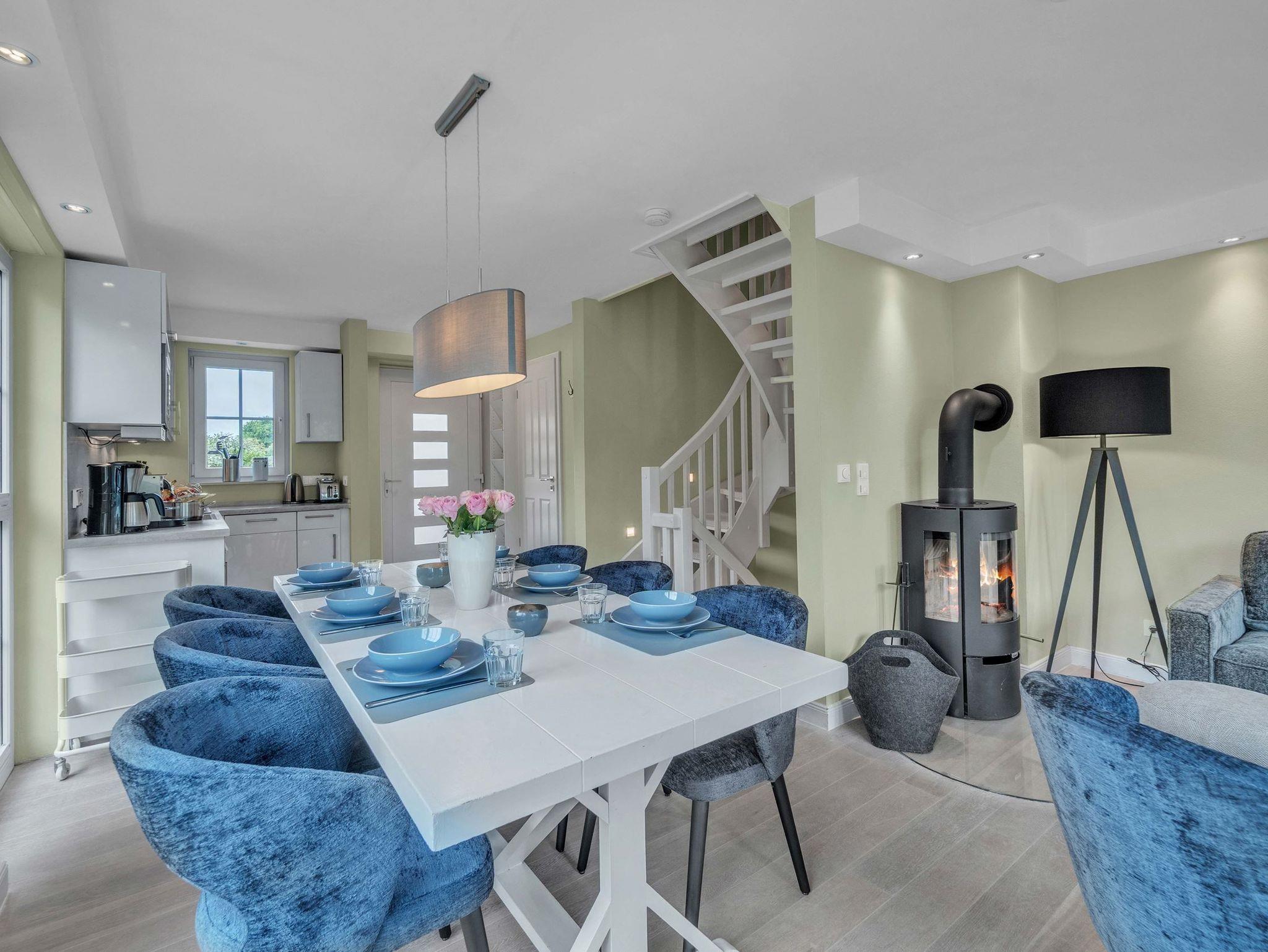 Dieses hochwertige Feriendomizil bietet Platz für bis zu 8 Personen (Empfehlung: Maximal 4 Erwachsene und 4 Kinder). Das Haus ist in einem hellen, modernen Design eingerichtet. Sie erwartet ein modernes Wohlfühl-Ambiente mit hellem Landhausdielenparkett, Flachbildfernsehern in allen Schlafzimmern, 3 wunderschönen Bädern aus Naturstein - zusätzlich eine Sauna sowie eine Whirlbadewanne. Nicht zu vergessen der Kaminofen, welcher gemütliche Abende im Wohnzimmer garantiert. Das Haus teilt sich wie folgt auf: Im Untergeschoss haben Sie ein großes Schlafzimmer mit Doppelbett (180x200xm), ein Badezimmer, sowie die Sauna. Im Erdgeschoss haben Sie ein Badezimmer mit Dusche, die große Küche, den Essbreich, sowie das Wohnzimmer. im 1. OG finden Sie ein großes Schlafzimmer mit einem Doppelbett (180x200cm), ein kleineres Schlafzimmer mit einem Kojenbett (140x200cm), sowie ein Badezimmer mit Dusche. Im Dachgeschoss finden Sie das vierte Schlafzimmer mit 2 Einzelbetten. Dies empfehlen wir aufgrund der Dachgeschrägen für Kinder empfehlen würden. Außerdem handelt es sich um eine offene Galerie.