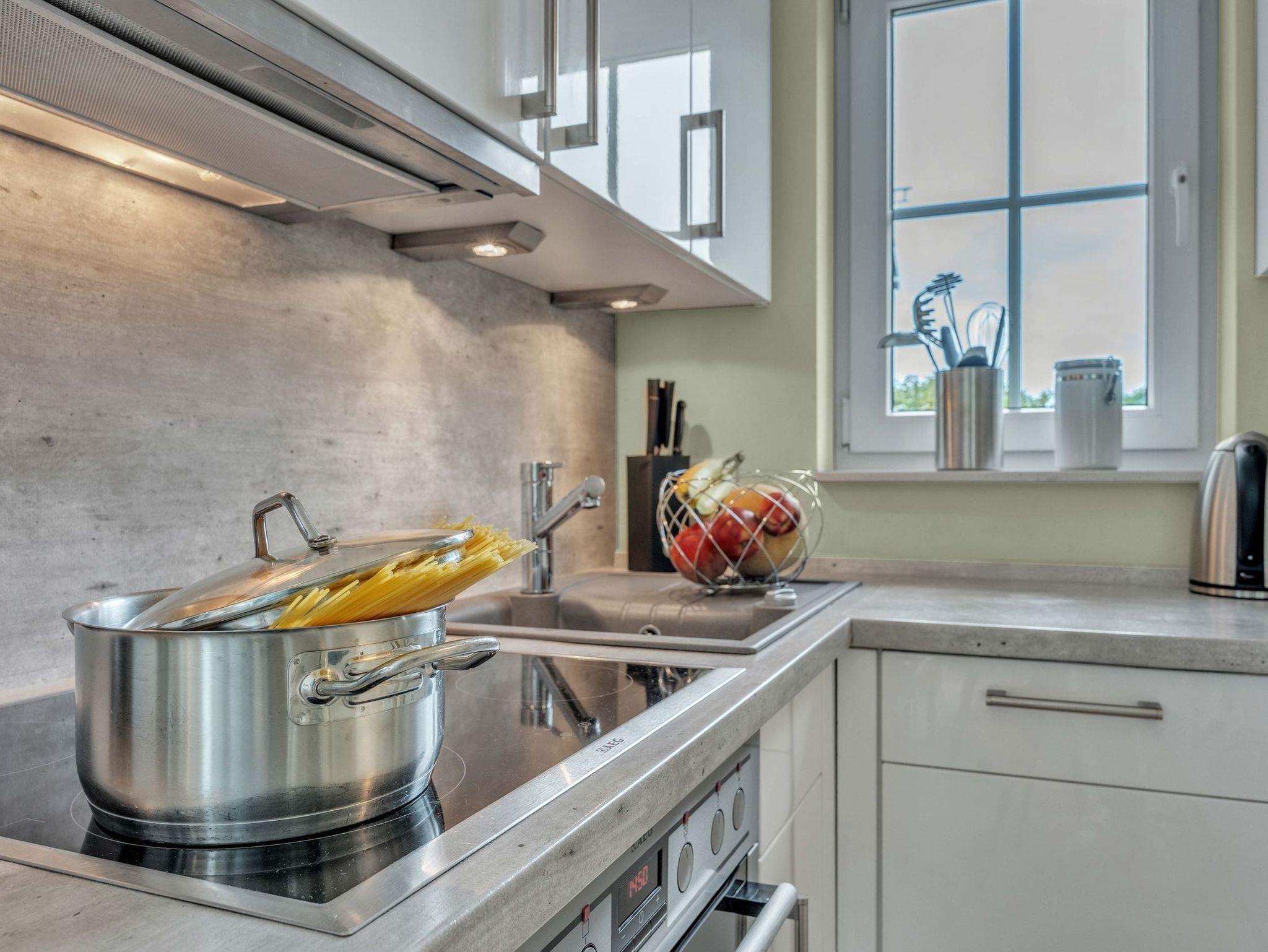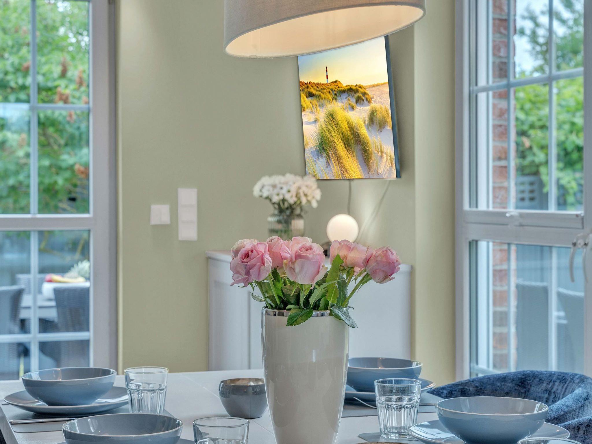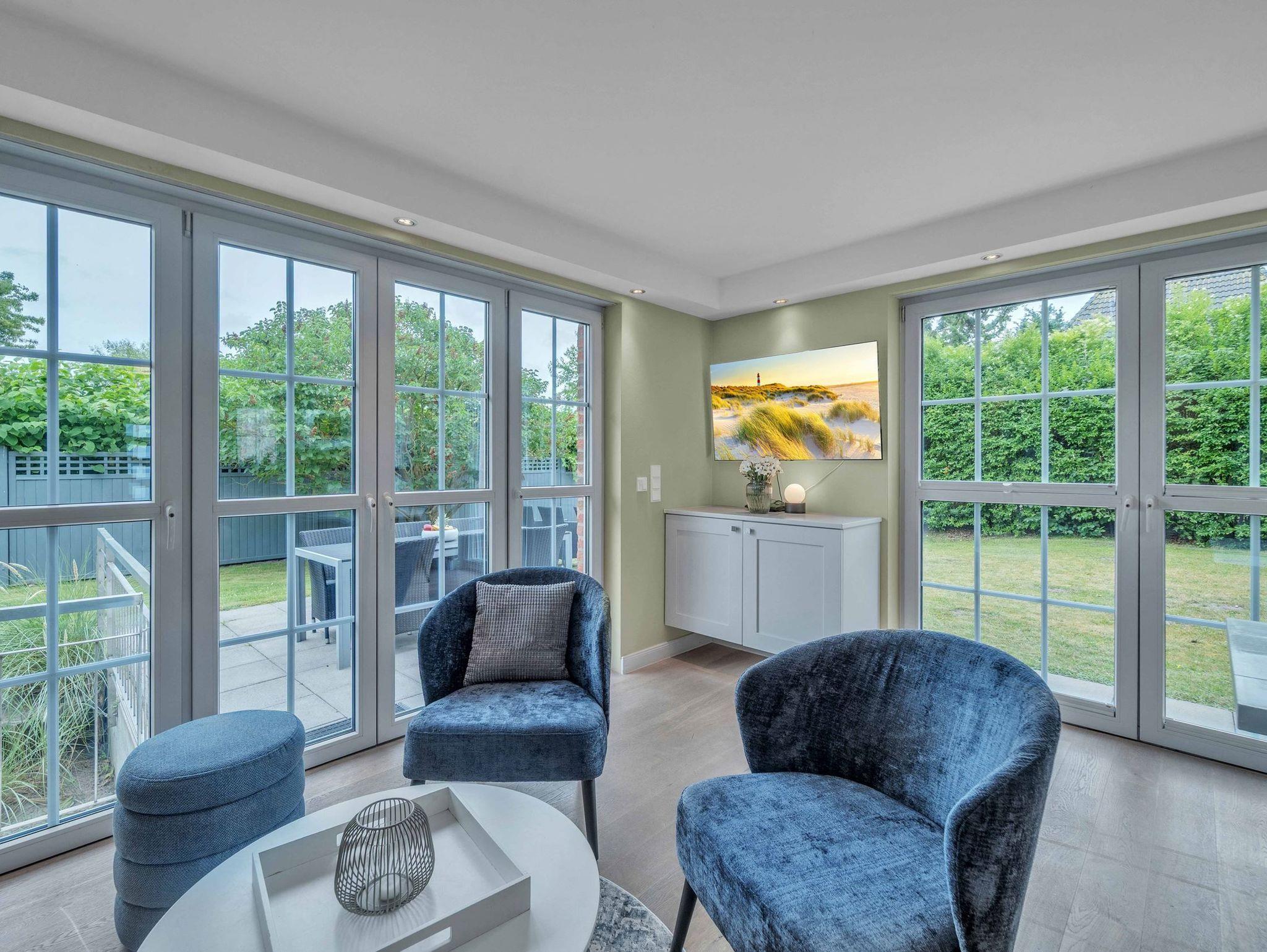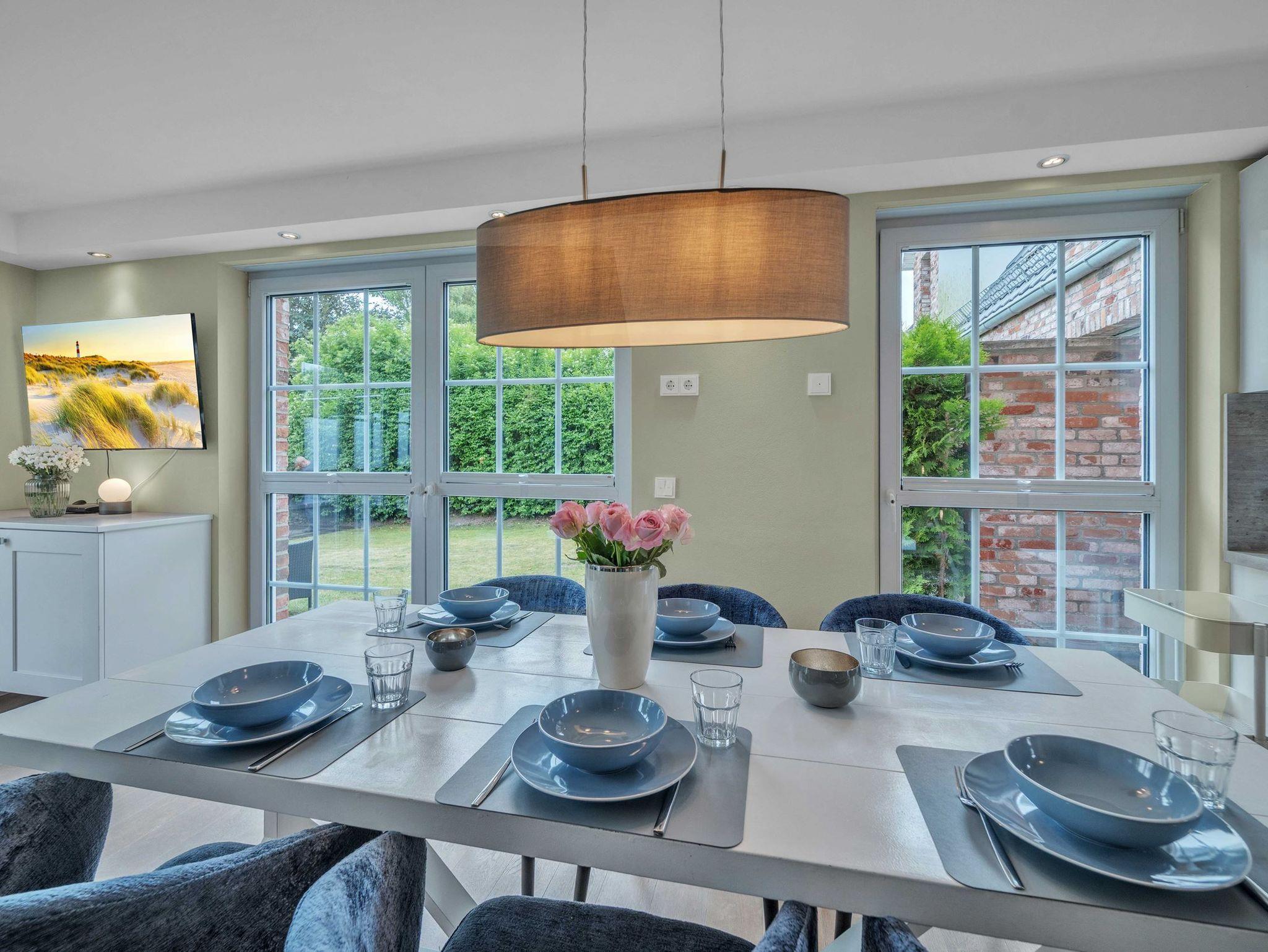 Dieses hochwertige Feriendomizil bietet Platz für bis zu 8 Personen (Empfehlung: Maximal 4 Erwachsene und 4 Kinder). Das Haus ist in einem hellen, modernen Design eingerichtet. Sie erwartet ein modernes Wohlfühl-Ambiente mit hellem Landhausdielenparkett, Flachbildfernsehern in allen Schlafzimmern, 3 wunderschönen Bädern aus Naturstein - zusätzlich eine Sauna sowie eine Whirlbadewanne. Nicht zu vergessen der Kaminofen, welcher gemütliche Abende im Wohnzimmer garantiert. Das Haus teilt sich wie folgt auf: Im Untergeschoss haben Sie ein großes Schlafzimmer mit Doppelbett (180x200xm), ein Badezimmer, sowie die Sauna. Im Erdgeschoss haben Sie ein Badezimmer mit Dusche, die große Küche, den Essbreich, sowie das Wohnzimmer. im 1. OG finden Sie ein großes Schlafzimmer mit einem Doppelbett (180x200cm), ein kleineres Schlafzimmer mit einem Kojenbett (140x200cm), sowie ein Badezimmer mit Dusche. Im Dachgeschoss finden Sie das vierte Schlafzimmer mit 2 Einzelbetten. Dies empfehlen wir aufgrund der Dachgeschrägen für Kinder empfehlen würden. Außerdem handelt es sich um eine offene Galerie.