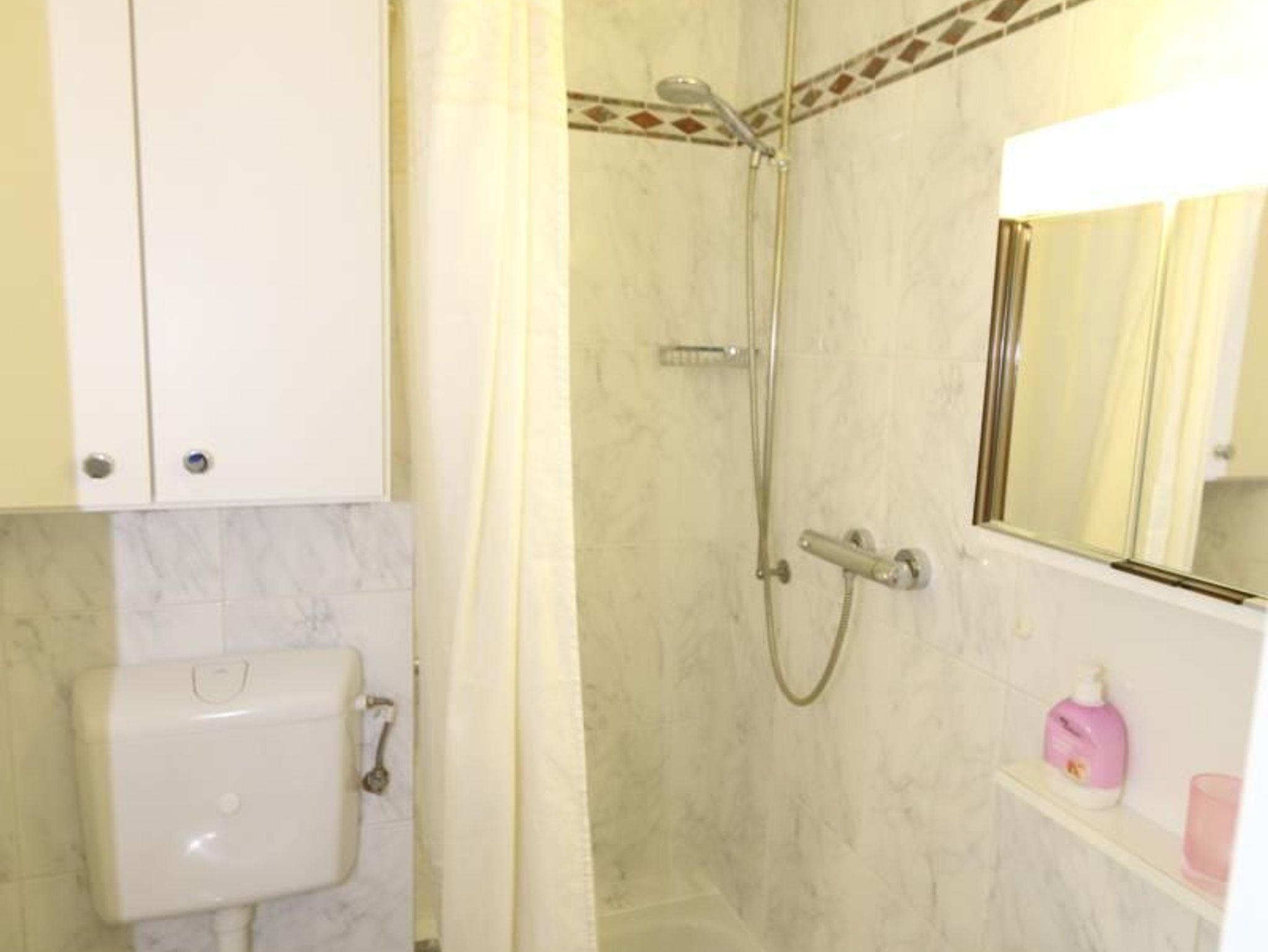 Das helle und praktisch eingerichtete Ferienappartement verfügt über ein Duschbad (Föhn vorhanden), eine kleine Pantry-Küche und über einen Schlaf-und Wohnbereich. Das Appartement hat große Fenster.