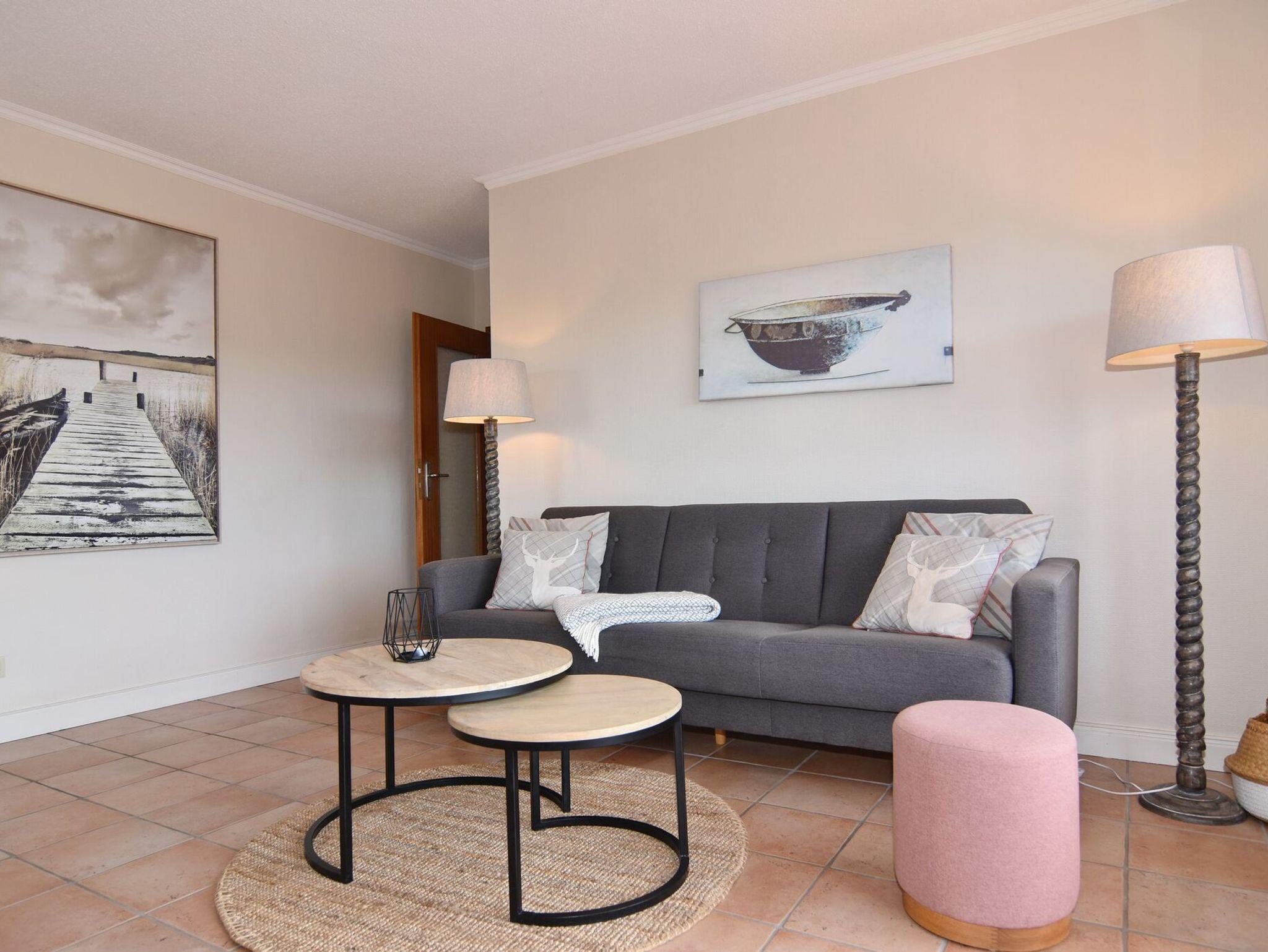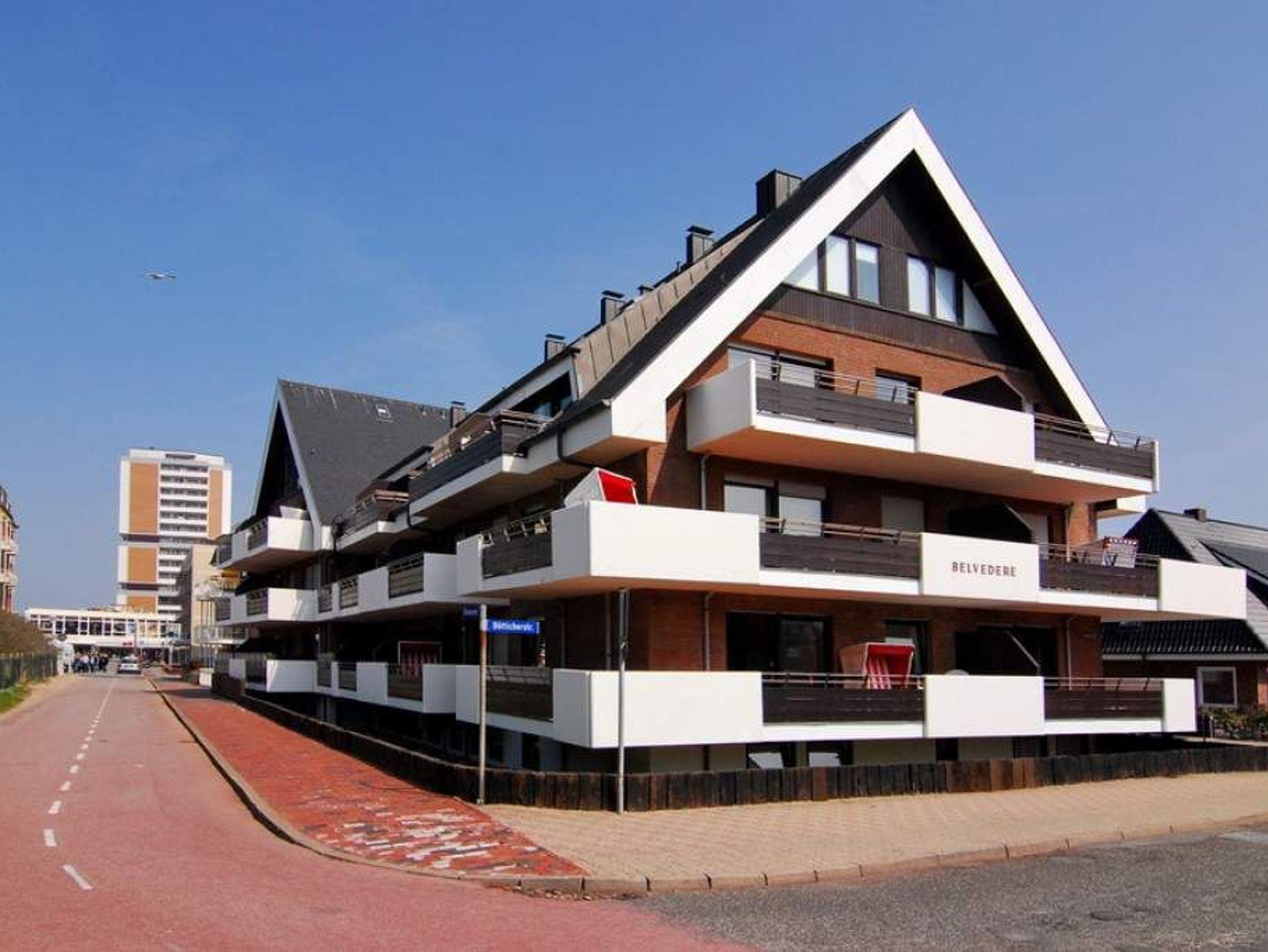Großzügige 2-Zimmer-Wohnung in TOP-Lage. Direkt hinter der Düne liegt das Apartmenthaus Belvedere. Von hier aus sind es nur noch wenige Schritte bis ans Meer und in die Innenstadt laufen Sie ca. 2 Minuten. Die Wohnung befindet sich im 1. OG des Hauses, hat ein großzügiges Wohnzimmer mit Zugang zum Südwestbalkon, offener Küche und Essplatz sowie einem Schlafzimmer mit Doppelbett und Einbauschränken und ein Duschbad/WC. Der Balkon ist möbliert. Die Sitzecke besteht aus einer 3-Sitzer-Couch und einem Sessel mit Fusshocker. Die offene Küche verfügt über Mikrowelle und Geschirrspüler. Zur Wohnung gehört der Tiefgaragenstellplatz Nr. 12. Tierhaltung und Rauchen sind in der Wohnung nicht gestattet. Bettwäsche und Handtücher sind zur Anreise aufgezogen!