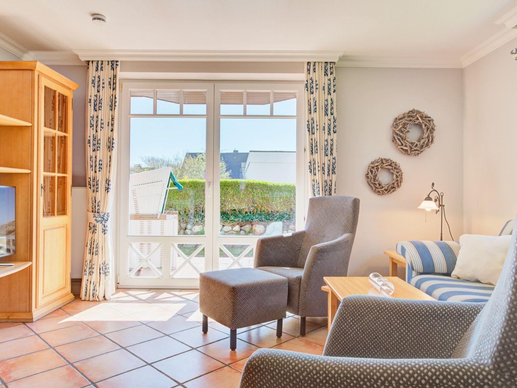 Auch eine Terrasse mit Strandkorb und Gartenmöbeln steht Ihnen zur Verfügung.