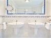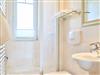 Zwei Badezimmer, einmal mit Wanne, Doppelwaschbecken und WC, und ein Duschbad mit WC.