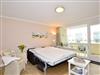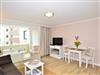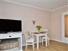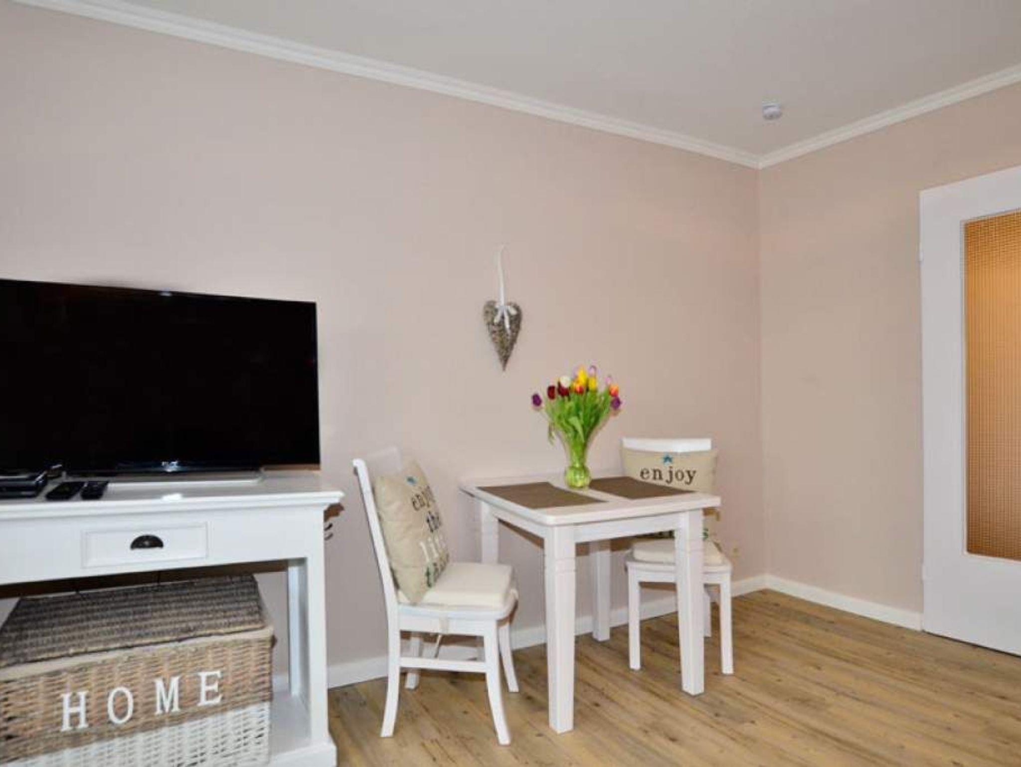 Der Wohn-/Schlafraum verfügt, neben einem hochwertigen Schlafsofa (mit Kaltschaummatratze, 160 x 200 cm, in optimaler Liegehöhe) noch über einen Sessel, einen separaten Essplatz mit 2 Stühlen und einen großen Sat-Flachbild-TV, Radio sowie Internetnutzung per W-Lan.