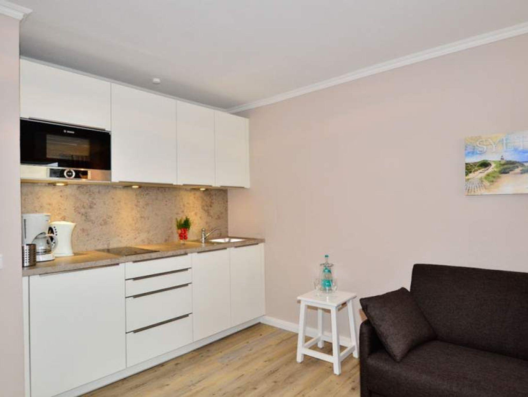 Die moderne, voll ausgestattete Einbauküche hat eine Geschirrspüler, eine Mikrowelle, ein Ceranfeld mit 2 Kochfeldern und einen Kühlschrank mit 3*-Gefrierfach. Kaffeemaschine, Wasserkocher und Toaster gehören zur Grundausstattung.