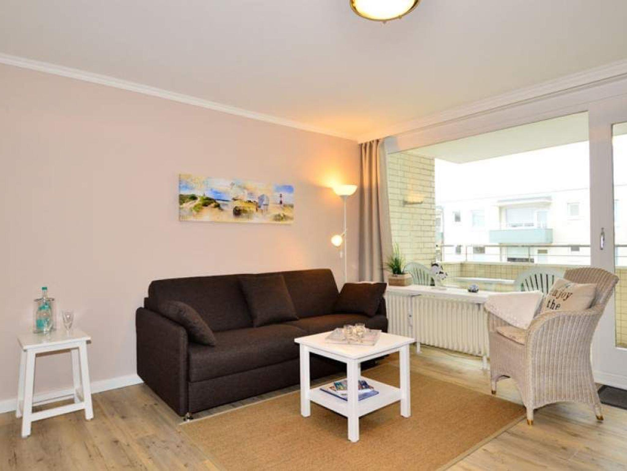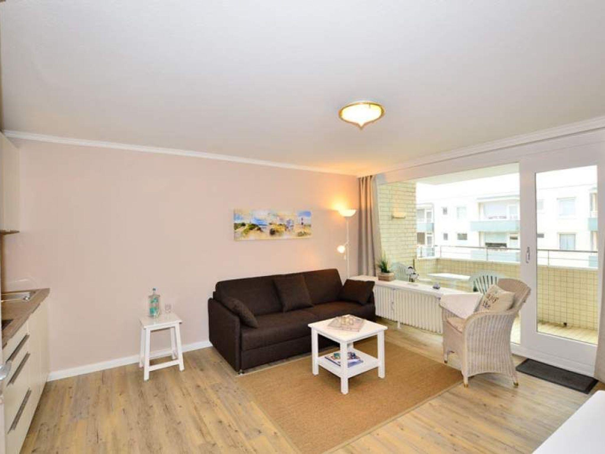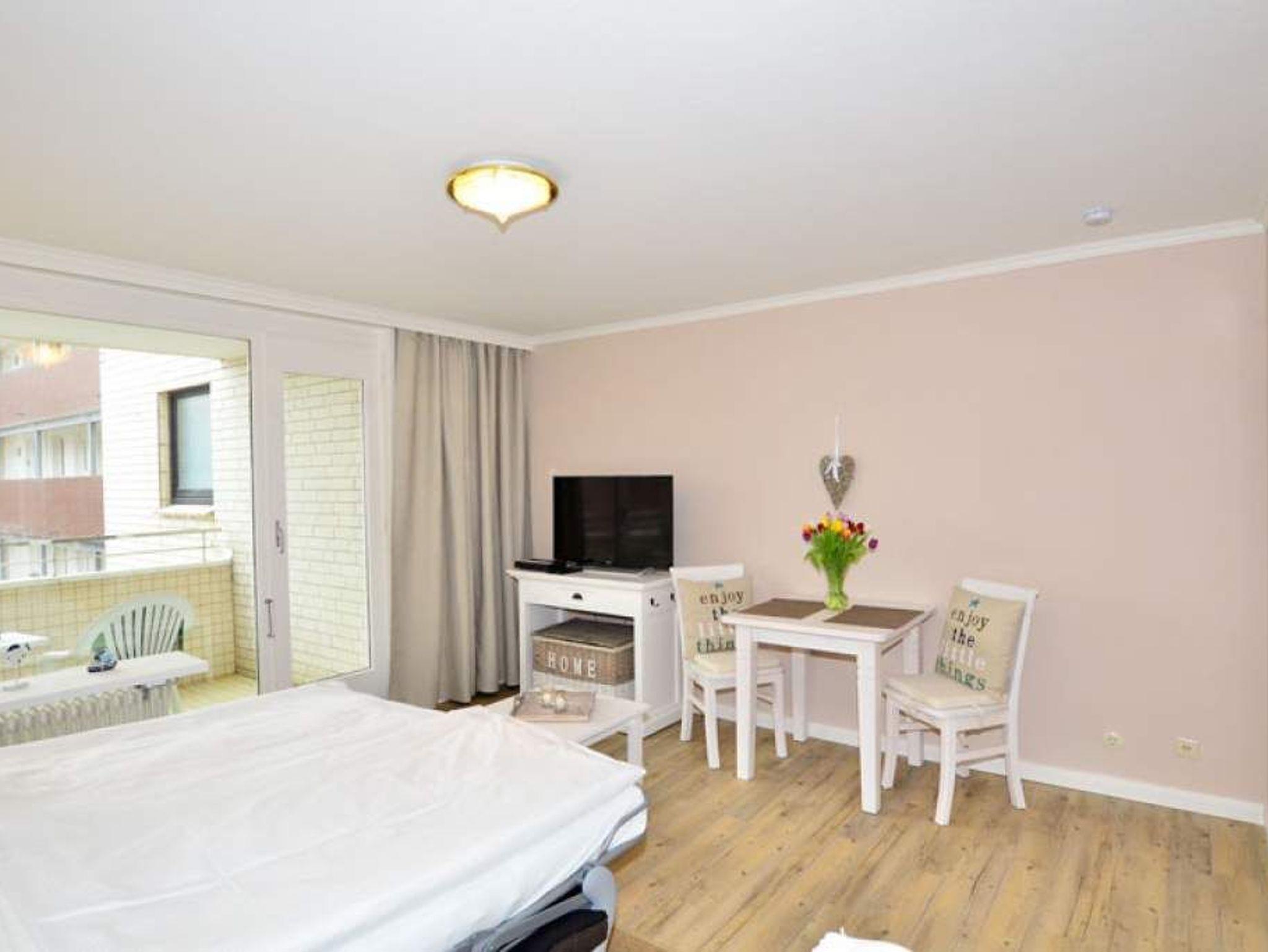 1-Zimmer-Nichtraucher-Ferienwohnung, ca. 35 m², in der 4. Etage zur Südseite mit Südbalkon (ganzen Tag Sonne, mit Balkonmöbeln und Auflagen) für max. 2 Personen.