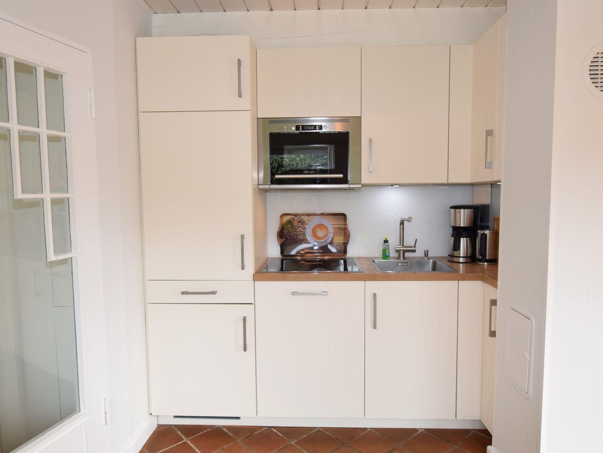 Die Pantry hat einen Geschirrspüler, eine Mikrowelle, ein 4-Platten-Ceranfeld und einen Kühlschrank mit 3-Sterne-Gefrierfach. Kaffeemaschine, Wasserkocher und Toaster gehören zur Grundausstattung.