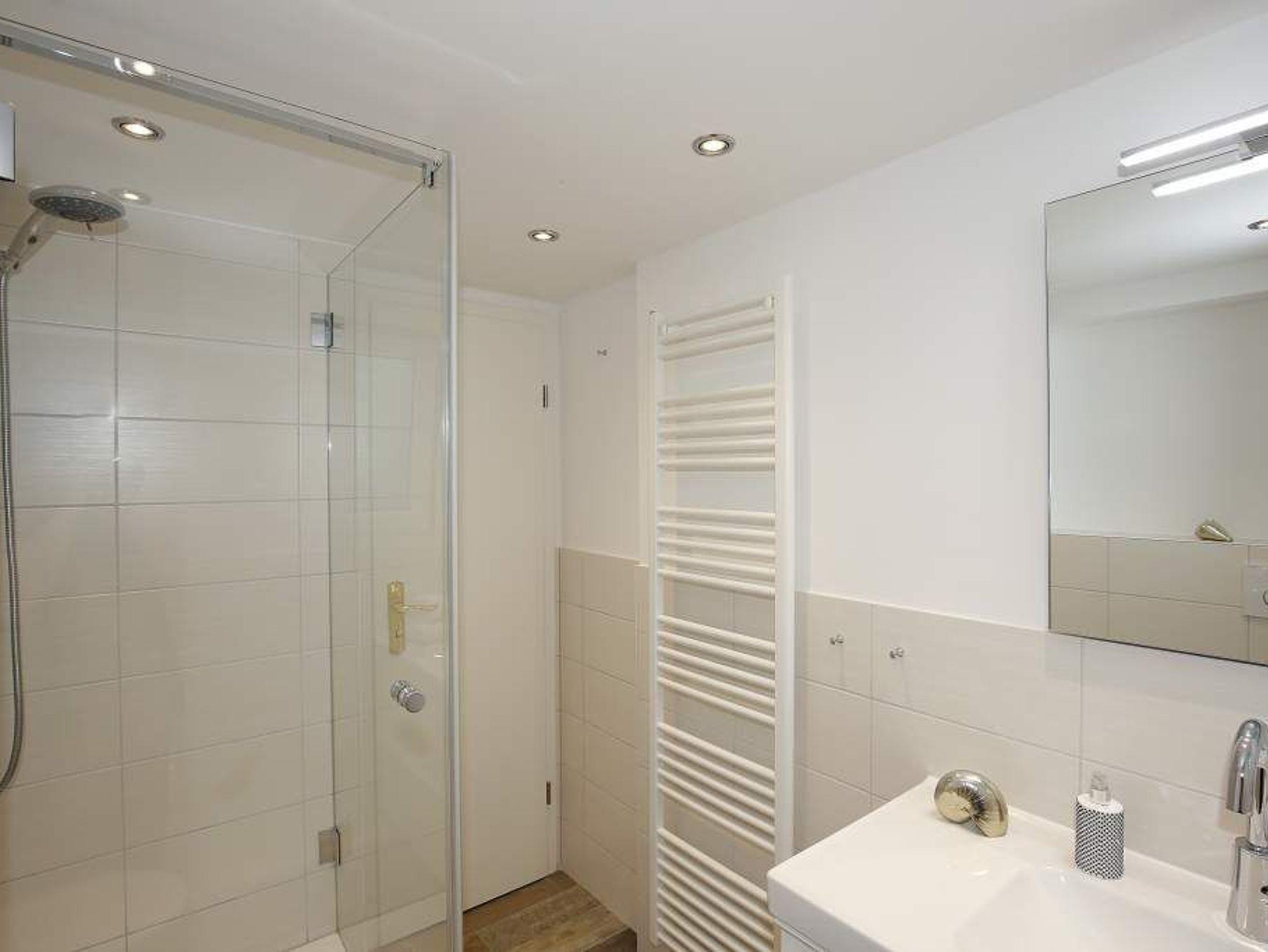 Das 2. Schlafzimmer (Fliesenboden) hat ein gutes Doppelbett (Einzelmatratzen 0,90 x 2,00 m), ein Duschbad/WC und eine Waschmaschine.