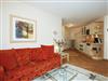 Das geräumige mit Fliesen ausgelegte Wohnzimmer ist mit einer gemütlichen Sitzecke mit Sofa (mit Schlaffunktion, 1,50 x 2,00m), Stressless-Sessel und dazugehörigem Fußhocker, Essplatz, moderner, offener Küchenzeile, Flachbildfernseher mit Kabelanschluss sowie Garderobe ausgestattet. Vom Wohnraum erreicht man den sonnigen Südwestbalkon (mit Balkonmöbeln), das großzügige Schlafzimmer und das Badezimmer.