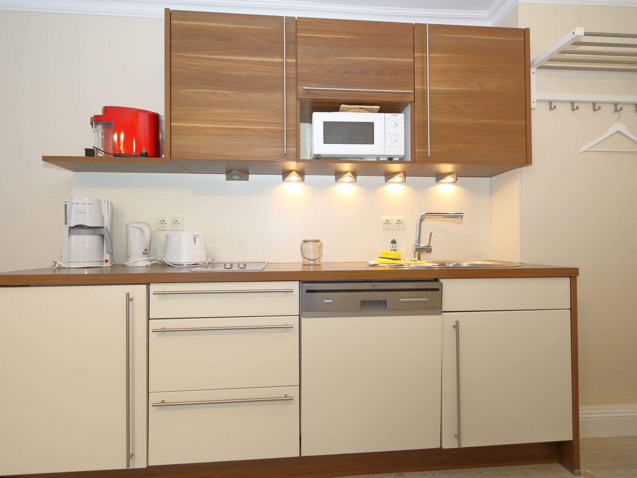 Die Küchenzeile ist mit Spülmaschine und Toaster, Microwelle und Kaffeemaschine sowie Wasserkocher und allen erforderlichen Küchenutensilien komplett ausgestattet.