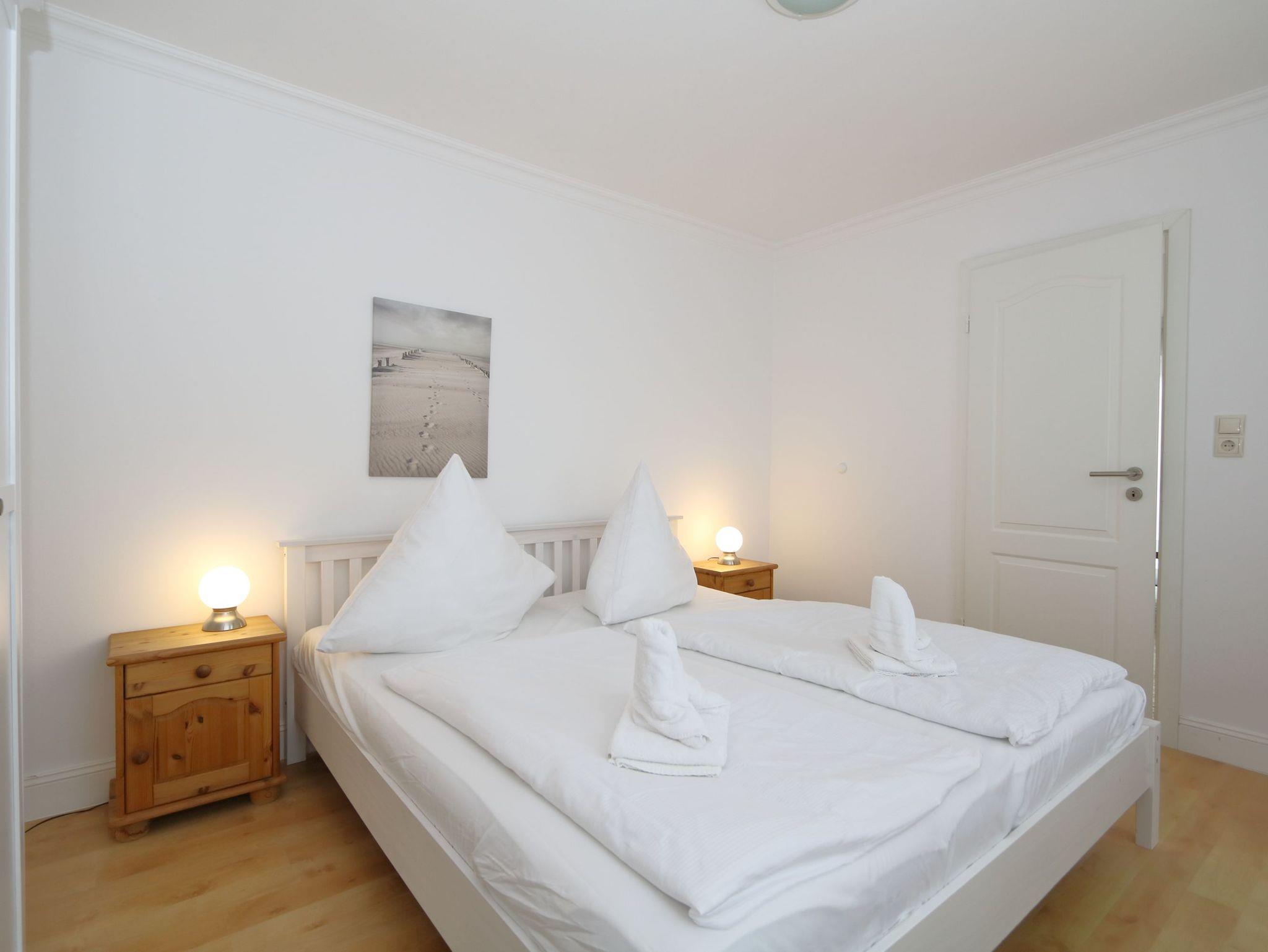 Im Flur befindet sich eine Garderobe. Von hier aus kommen Sie in das moderne Duschbad oder in das neue Schlafzimmer mit Doppelbett und großem Kleiderschrank.