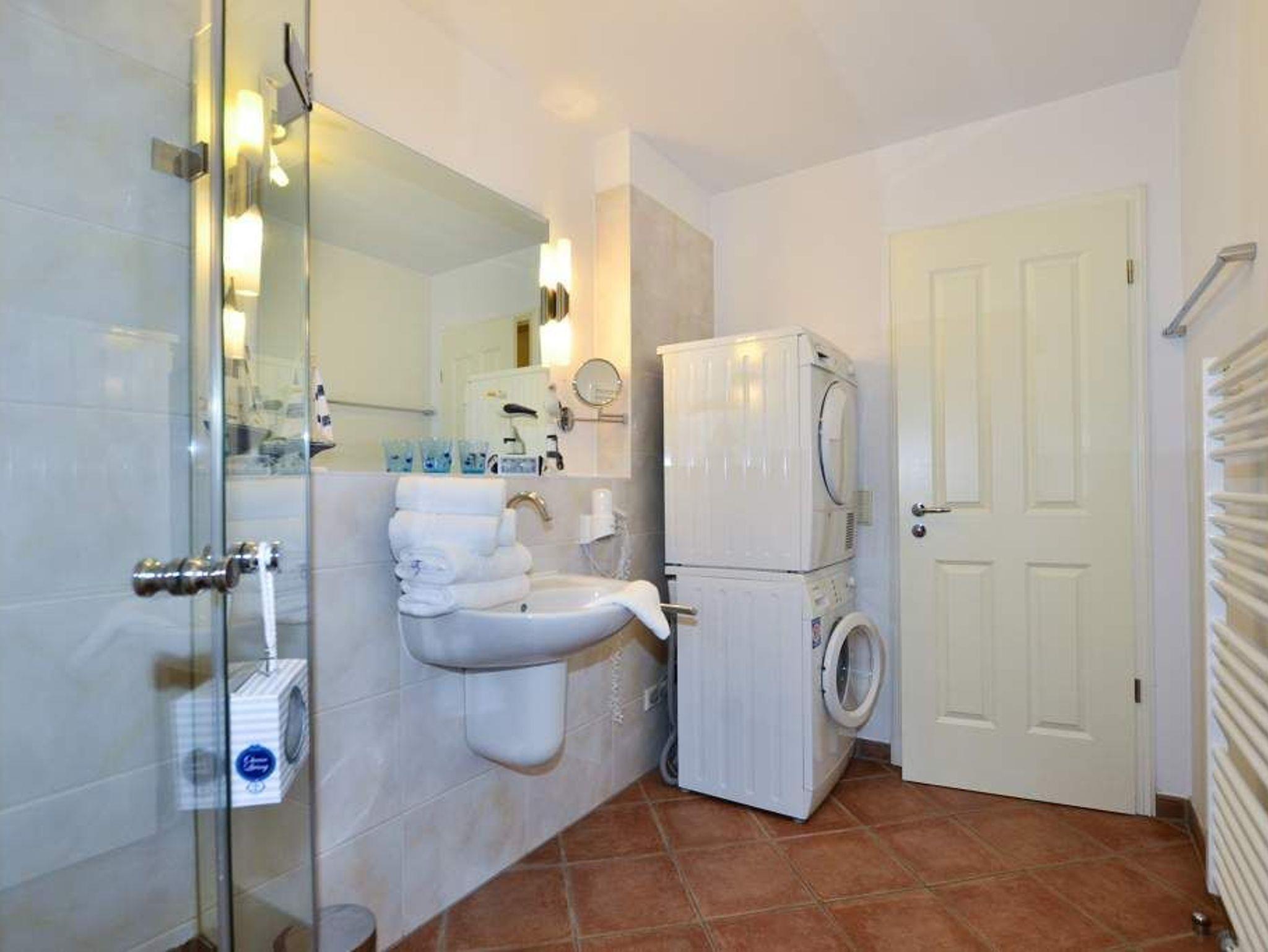 Das 2. Schlafzimmer hat ein Doppelbett (mit zwei Einzelmatratzen 0,90 x 2,00 m) und ein Duschbad/WC mit Waschmaschine und Trockner.