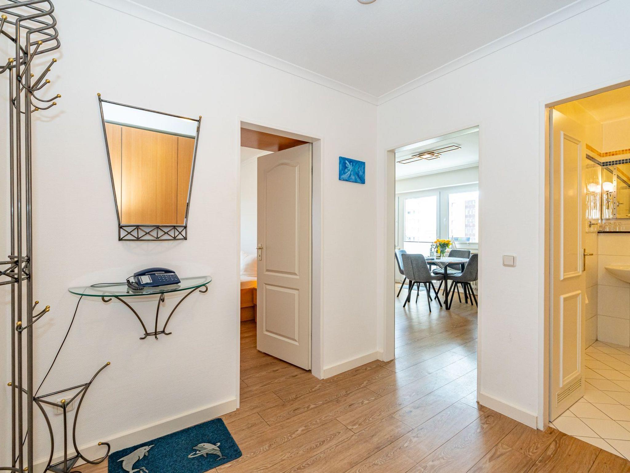 Komfortable 2-Zimmer-Nichtraucher-Ferienwohnung, ca. 52 qm in der 3. Etage mit großzügiger Südloggia (mit Balkonmöbeln und Auflagen) für max. 4 Personen.