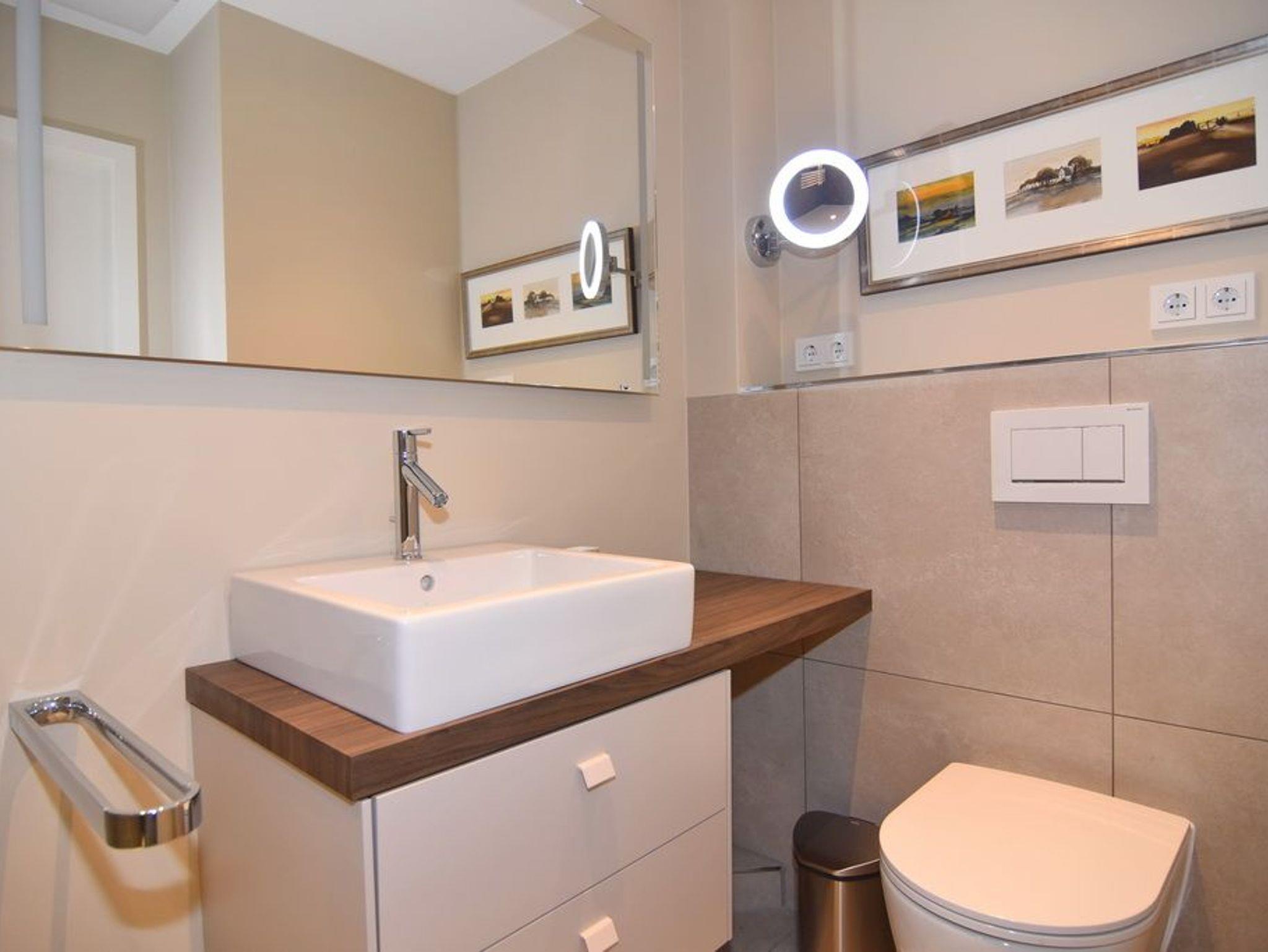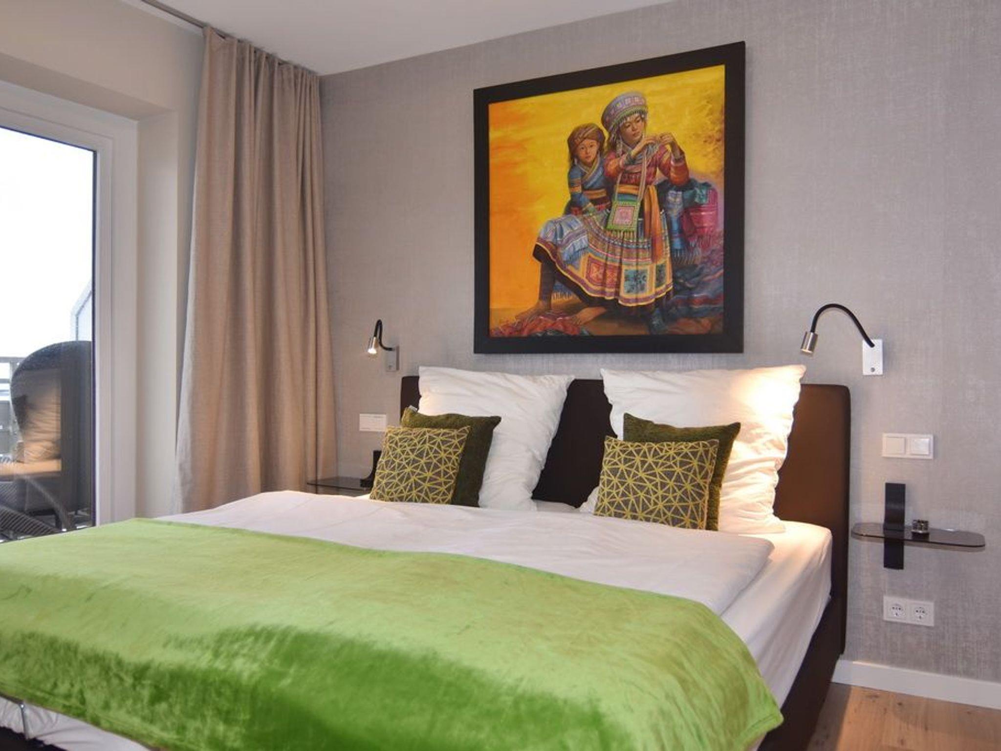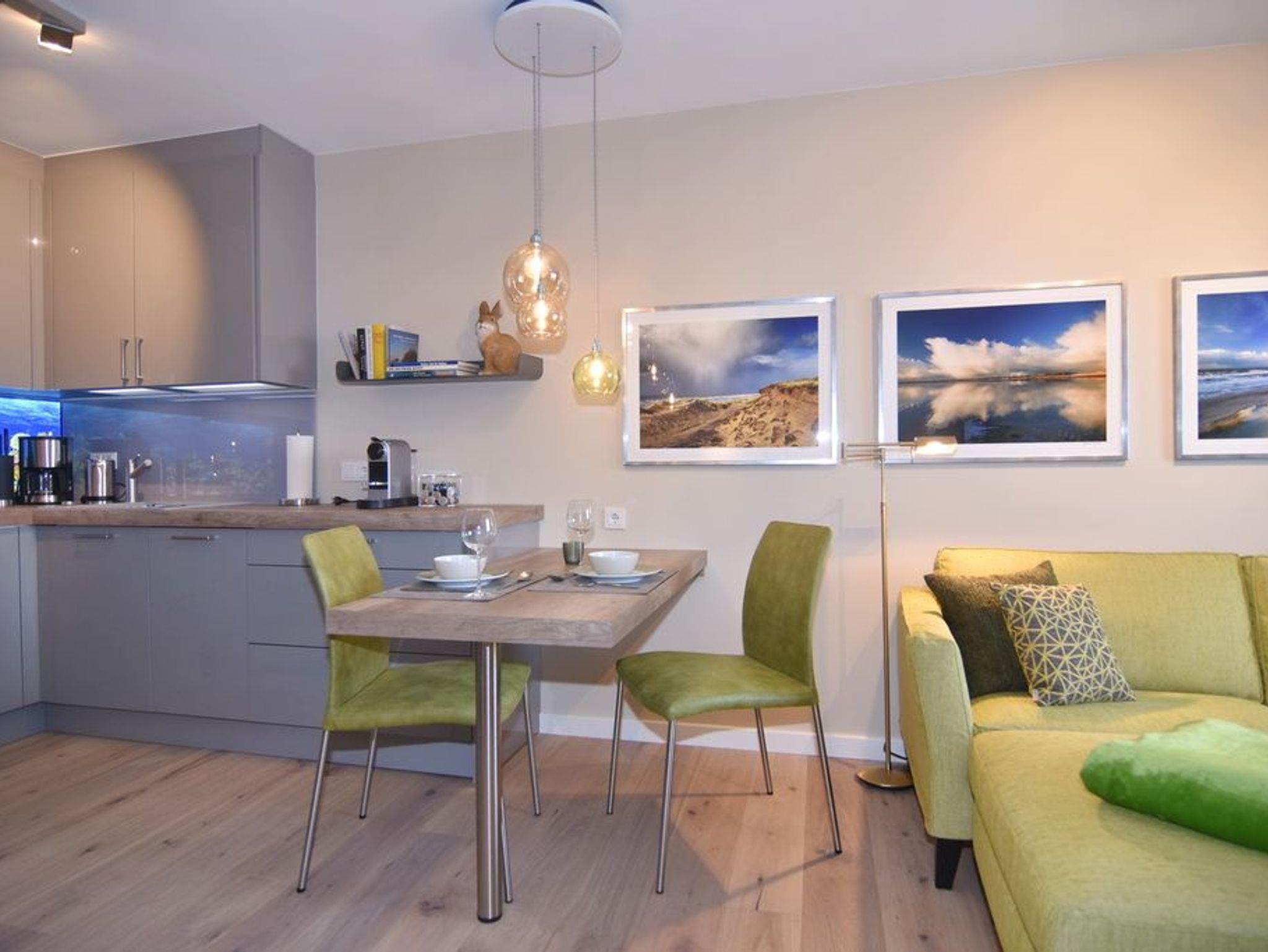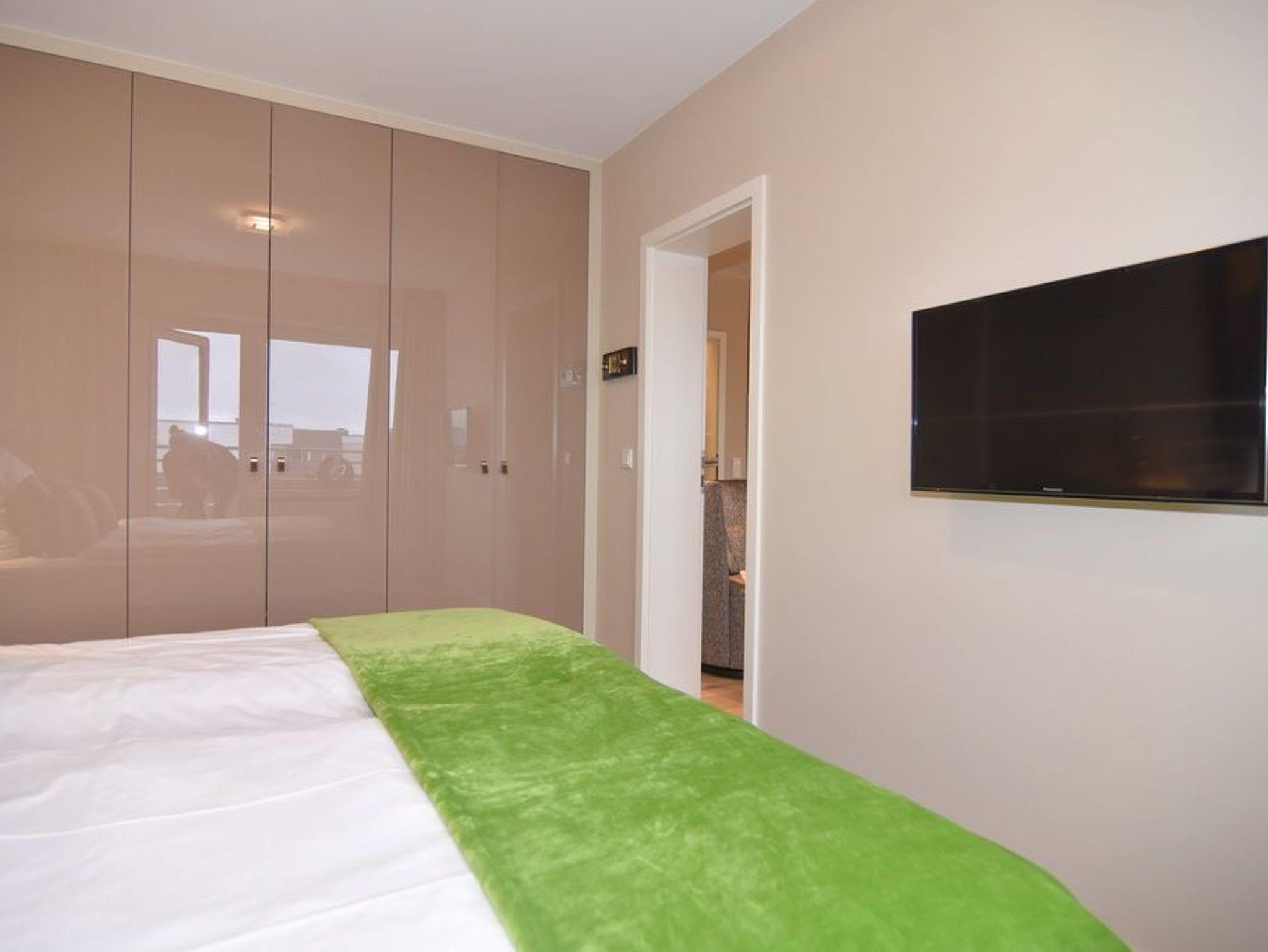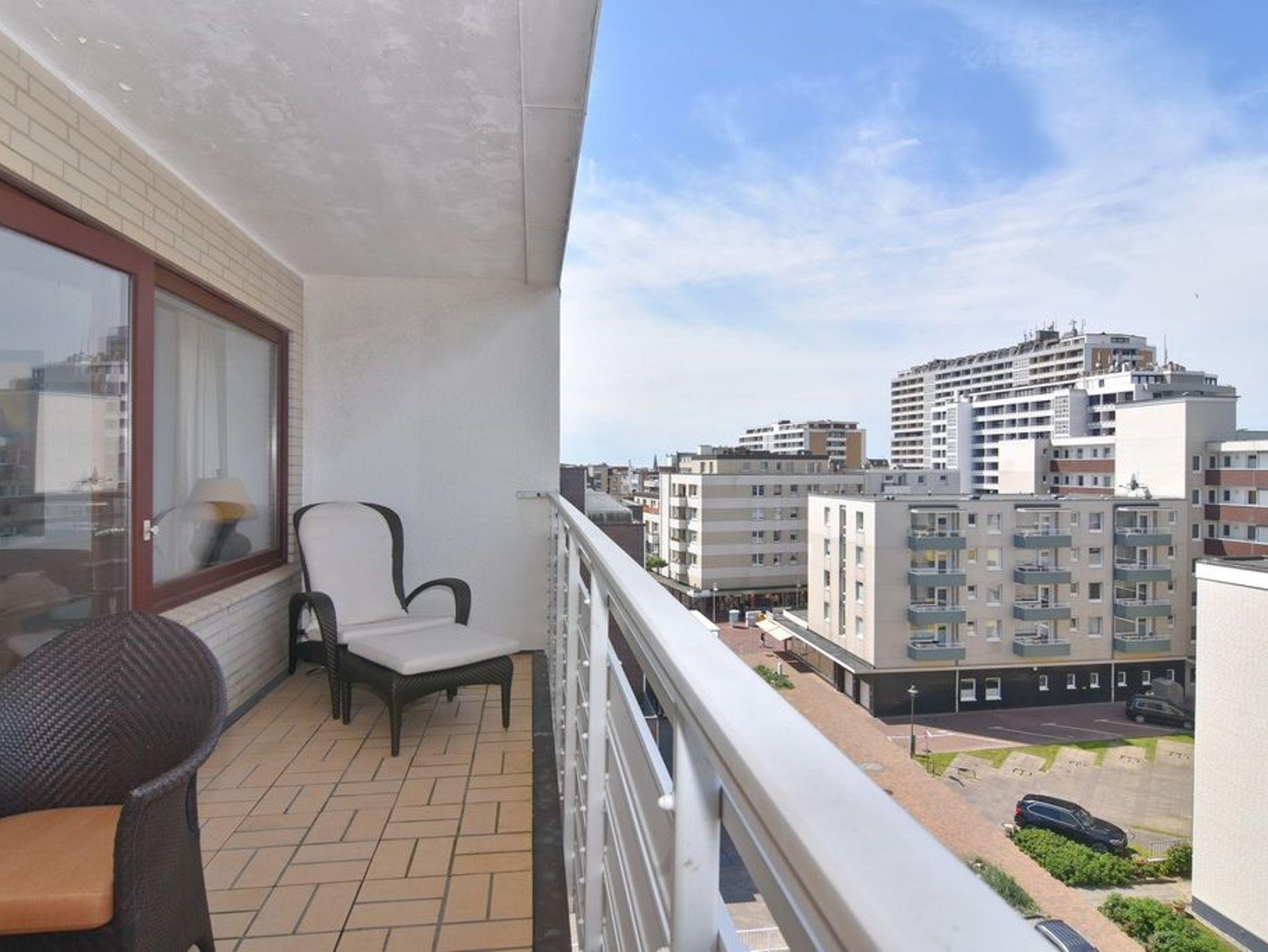 Exklusive 2-Zimmer-Wohnung in Strandnähe mit ca. 53 qm im 6. OG. Der Wohnraum hat eine gemütliche Sitzecke aus Sofa, Hocker und Sessel und ist verbunden mit einer offenen Küche mit großem Kühlschrank, 2-Platten-Herd, Geschirrspüler und Mikrowelle. Vom Wohnzimmer gelangen Sie auf den möblierten Westbalkon mit schönem Meeresblick. Vom separaten Schlafzimmer mit Doppelbett, Einbauschrank und TV gelangen Sie ebenfalls auf den sonnigen Westbalkon. Das Badezimmer ist mit einer großen Dusche, Waschtisch und Kosmetikspiegel ausgestattet. Ein kleiner Flur mit Garderobe stellt das Entreé dar. Fahrstuhl und Fahrradkeller sind im Haus vorhanden. Zum Fahrstuhl gelangen Sie über 8 Stufen. Tiefgaragenstellplatz 2 ist durch eine enge Einfahrt nur eingeschränkt nutzbar - Zufahrt über Bomhoffstraße 3. (Einfahrt am Hotel) Einfahrtshöhe 2 m, Garagenplatz ca. 2,20 m Breite. Tierhaltung und Rauchen sind in der Wohnung nicht gestattet. Bettwäsche und Handtücher sind zur Anreise aufgezogen.