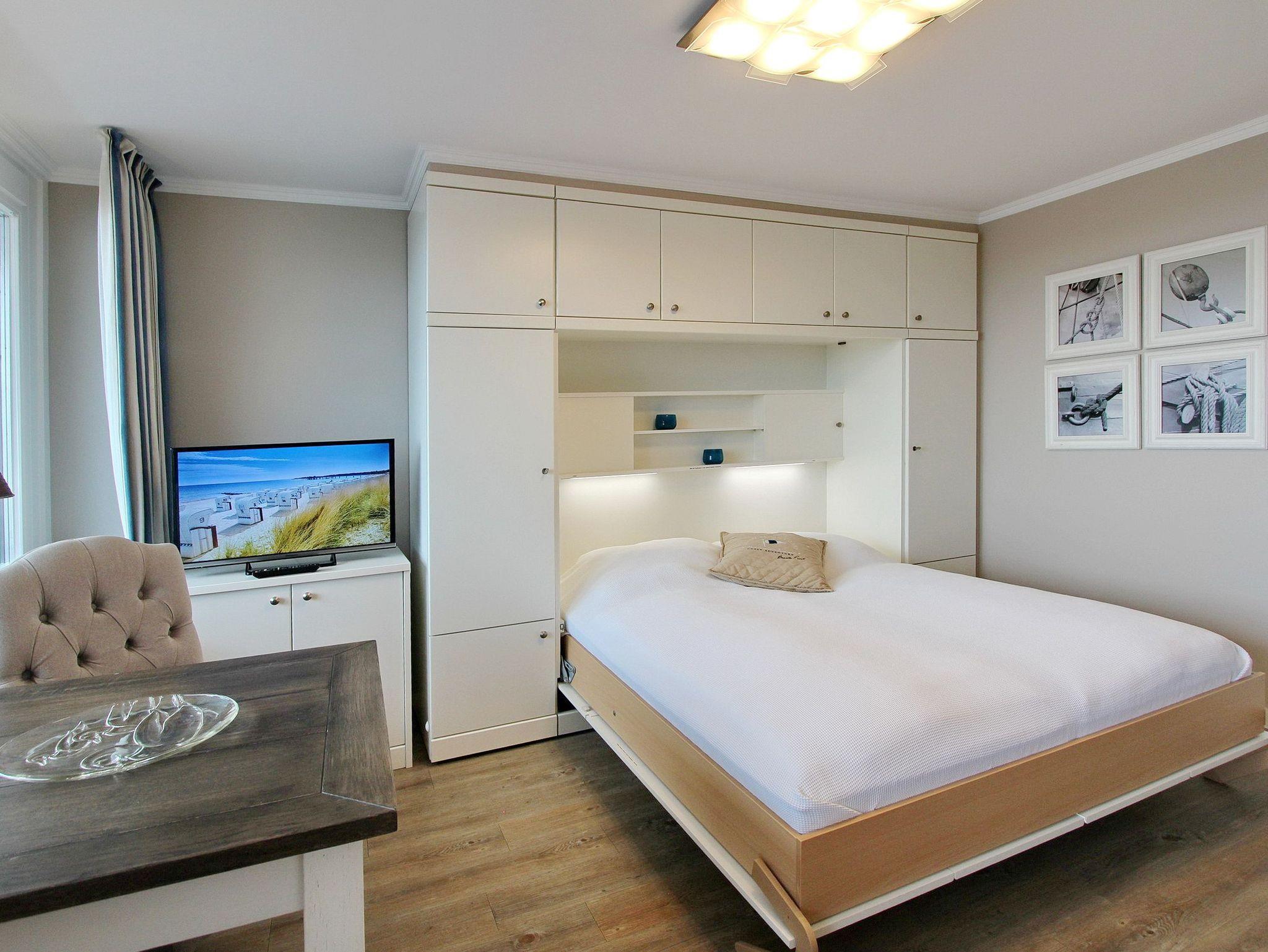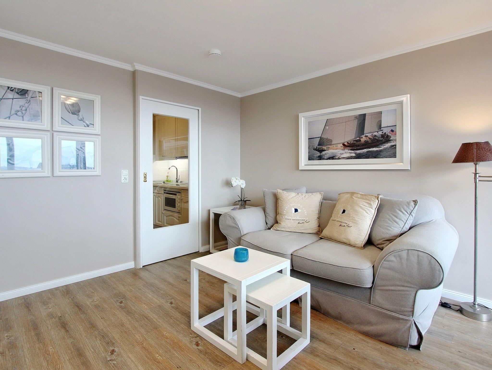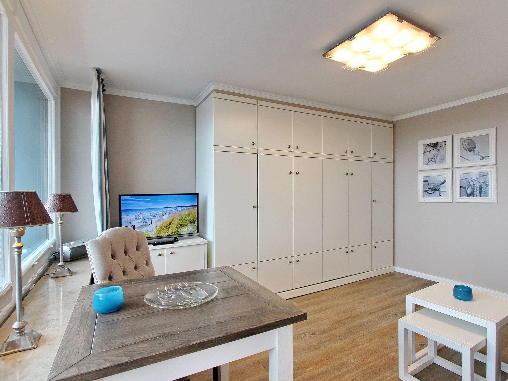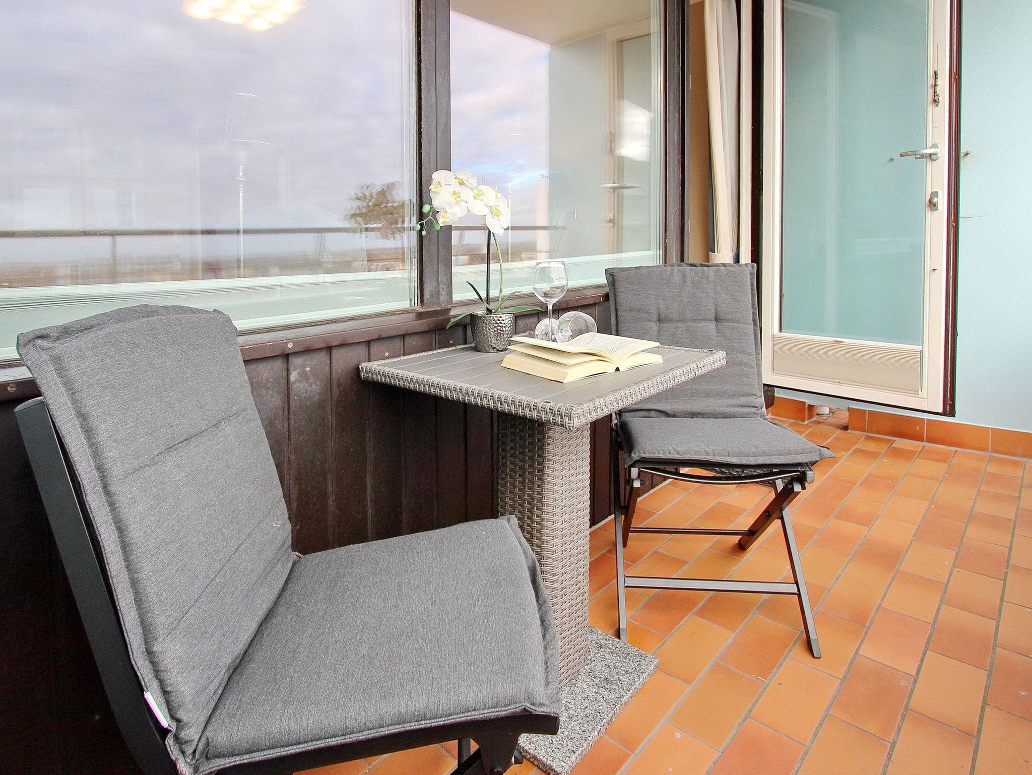 Hell und freundlich eingerichtetes Appartement im Haus Metropol in der 6. Etage, nur wenige Gehminuten vom Strand und Meer entfernt. Der kombinierte Wohn-/Schlafraum mit vorgelagertem Ostbalkon mit Balkonmöbeln ist neu und modern möbliert und hat ein sehr stimmiges Einrichtungskonzept. Die Wohnung hat einen Designfussboden in Holzoptik, ein große Couch, ein Doppelschrankbett (2 Matratzen) und einen Essplatz mit 2 bequemen Polsterstühlen am Fenster. Das helle Badezimmer hat eine Badewanne. Ein Haltegriff ermöglicht sicheres Ein- und Aussteigen. Um sich selbst zu verpflegen gibt es im Flur eine Küchenzeile mit Ceranfeld und eine Mikrowelle. Zur technischen Ausstattung gehört ein Flachbildfernseher und eine Stereoanlage. Das freie WLAN Netzwerk (WEG Haus Metropol - Passwortfrei - ohne Gewähr) können sie kostenfrei nutzen. Die Größe dieser Nichtraucherwohnung ist ca. 30 m².