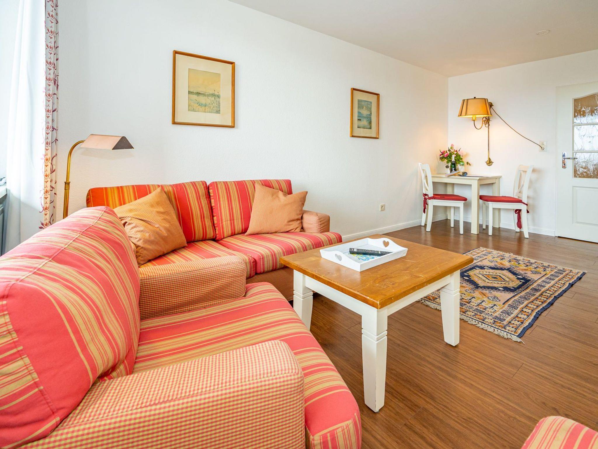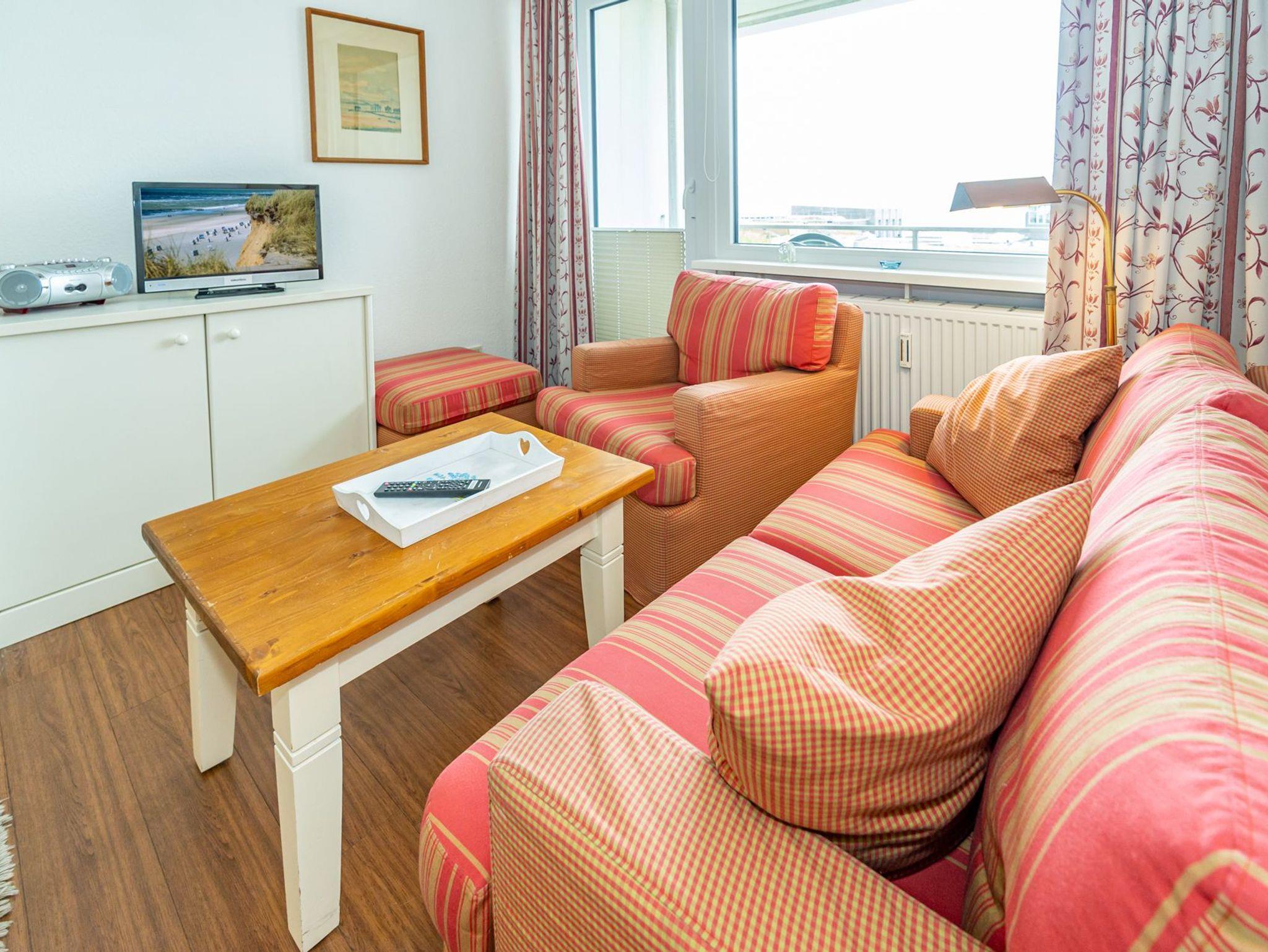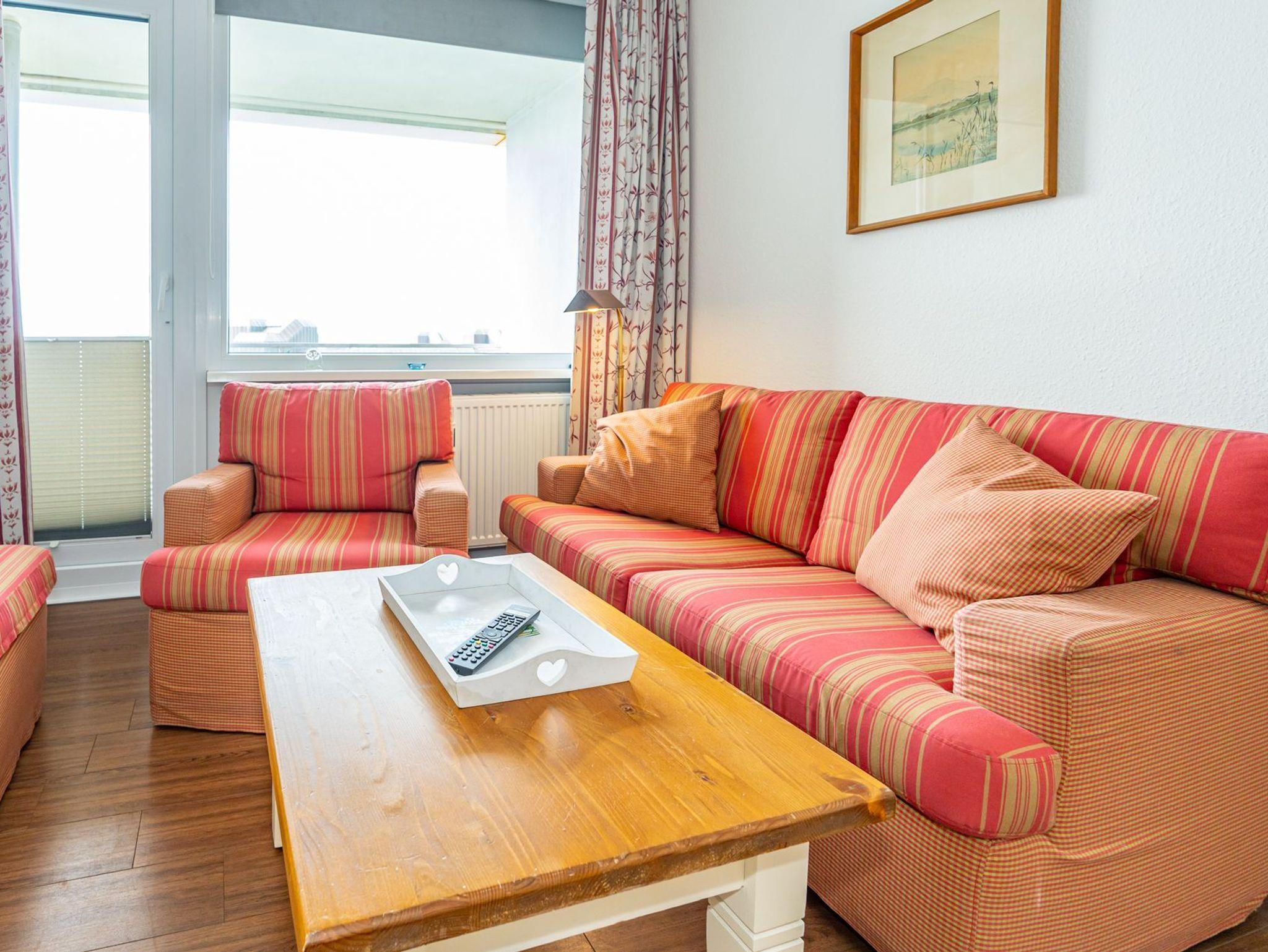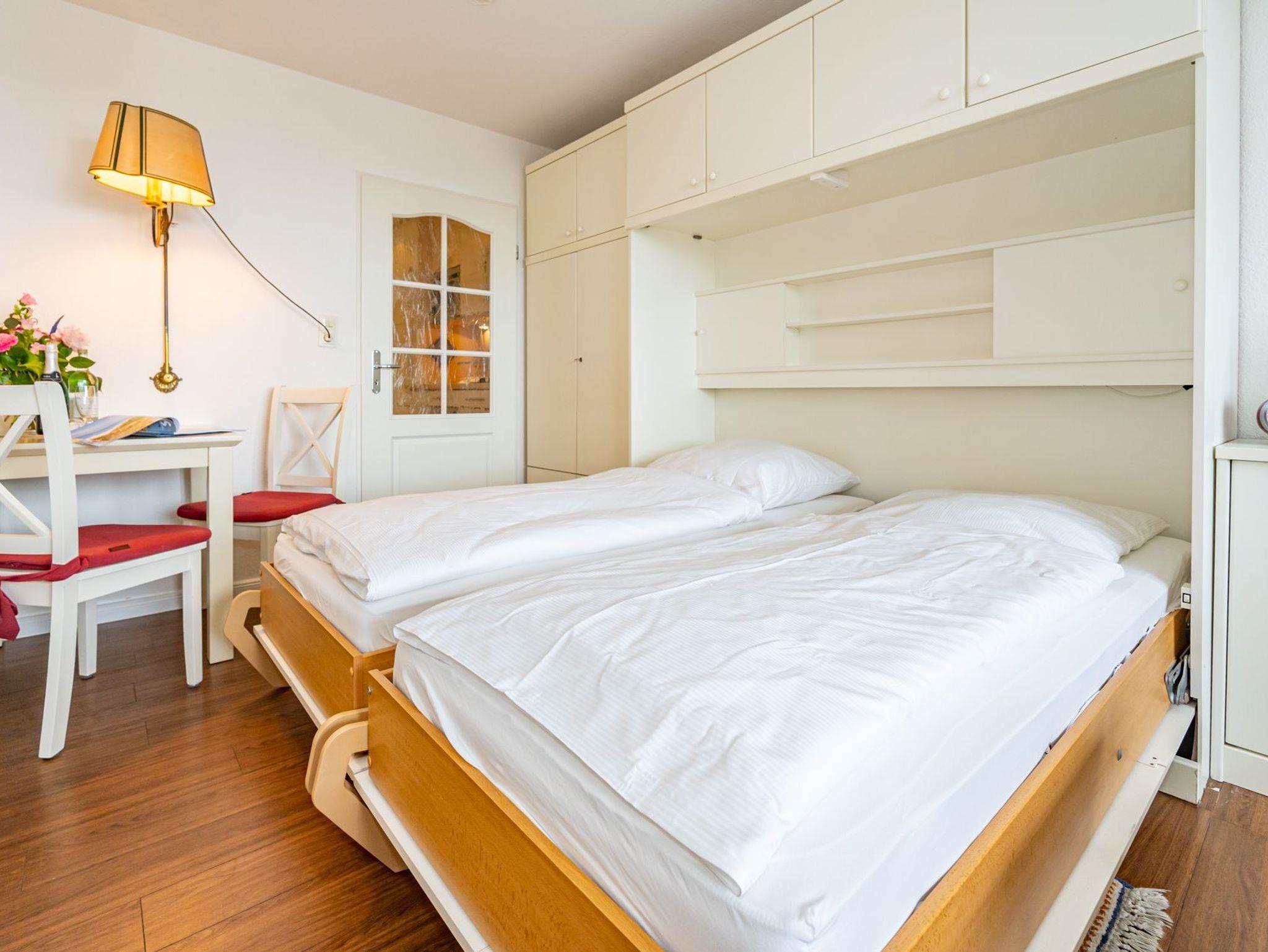 1-Zimmer-Nichtraucher-Ferienwohnung (ca. 25 qm) in der 4. Etage zur Seeseite mit Westloggia und Meerblick (Abendsonne, mit Balkonmöbeln und Auflagen) für max. 2 Personen.