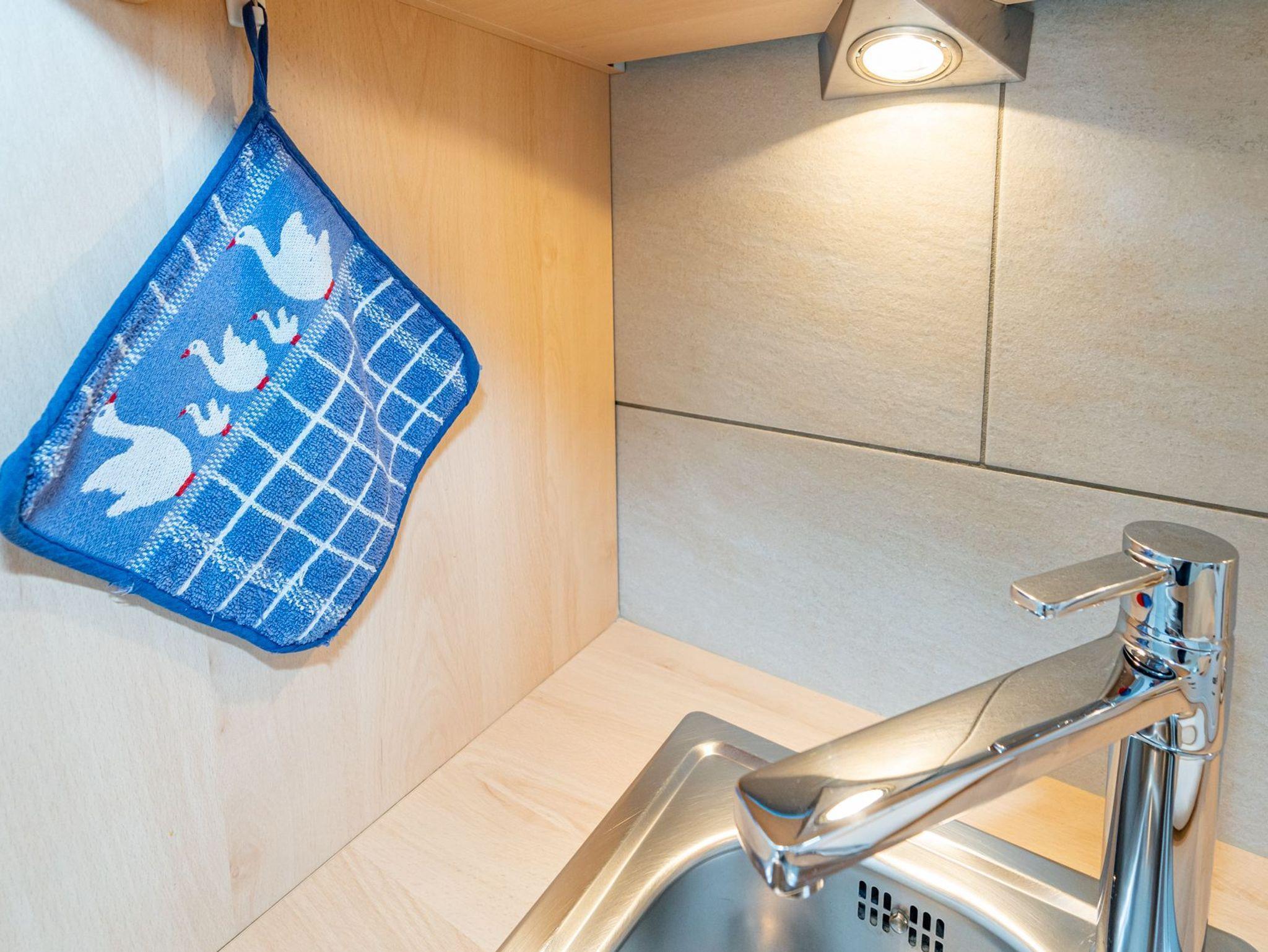 Die Küchenzeile hat einen Geschirrspüler, eine Mikrowelle mit Grillfunktion, 2-Platten-Ceranfeld, Kühlschrank mit 3* Gefrierfach. Kaffeemaschine, Wasserkocher und Toaster gehören zur Grundausstattung.