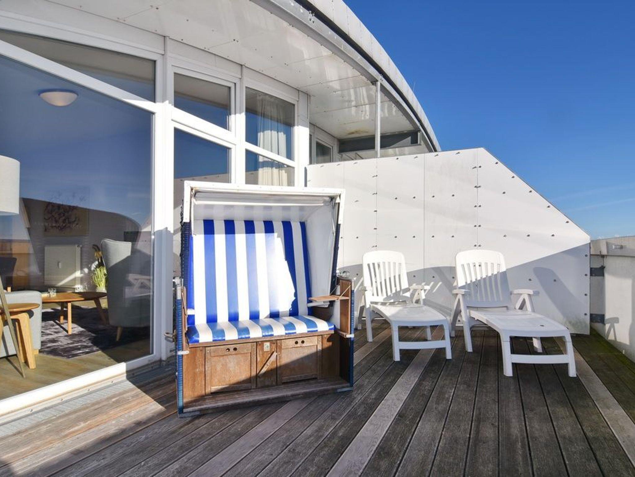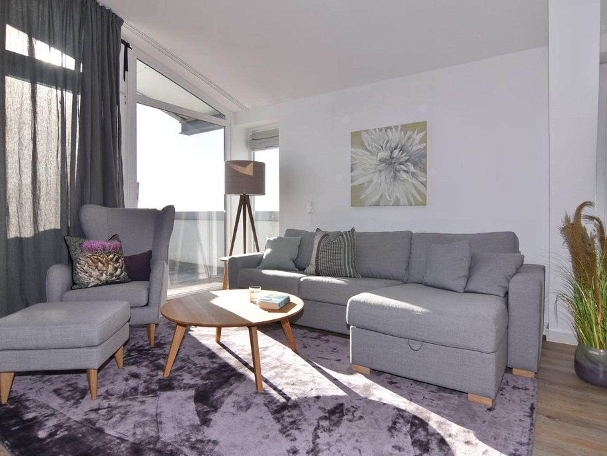 Modernes 2-Zimmer-Penthouse im 6.OG mit umlaufender Dachterrasse (Süden/Westen/Norden) mit Strandkorb. Ca. 72 m² im Haus Mauritius. Wohnzimmer mit großer Schlafcouch und Sessel, TV, offene Küche mit Geschirrspüler und Mikrowelle, Essplatz , Schlafzimmer mit Doppelbett, Duschbad/WC und separates Gäste-WC. Rauchen und Tierhaltung ist nicht gestattet. Ein Pkw-Stellplatz kann kostenpflichtig hinzugebucht werden. Bettwäsche und Handtücher sind zur Anreise aufgezogen!Waschküche und Fahrradkeller im Haus. Internet (ohne Gewähr).