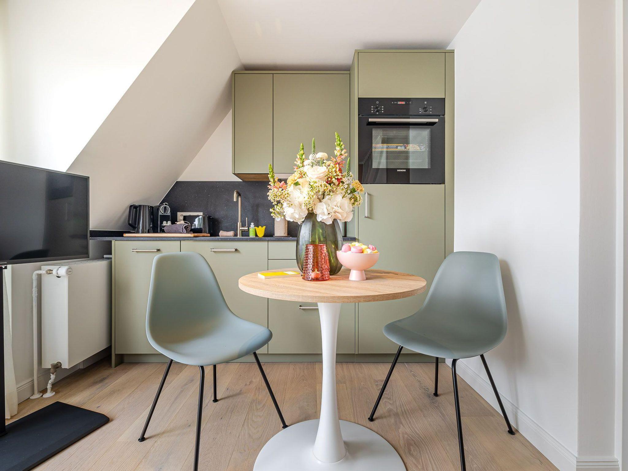Klein, aber oho! In Ihrer Küche werden Sie weder auf Funktionalität, noch auf Equipment verzichten müssen. Sie ist ausgestattet mit Geräten diverser Markenhersteller, z.B. von Miele und hält alles für Sie bereit, was Sie zum Gelingen Ihrer Mahlzeiten benötigen. Letztere können Sie sich dann von Mai bis Oktober - hoffentlich immer bei feinstem Inselwetter- auf Ihrem mit modernen Balkonmöbeln ausgestatteten Balkon munden lassen.