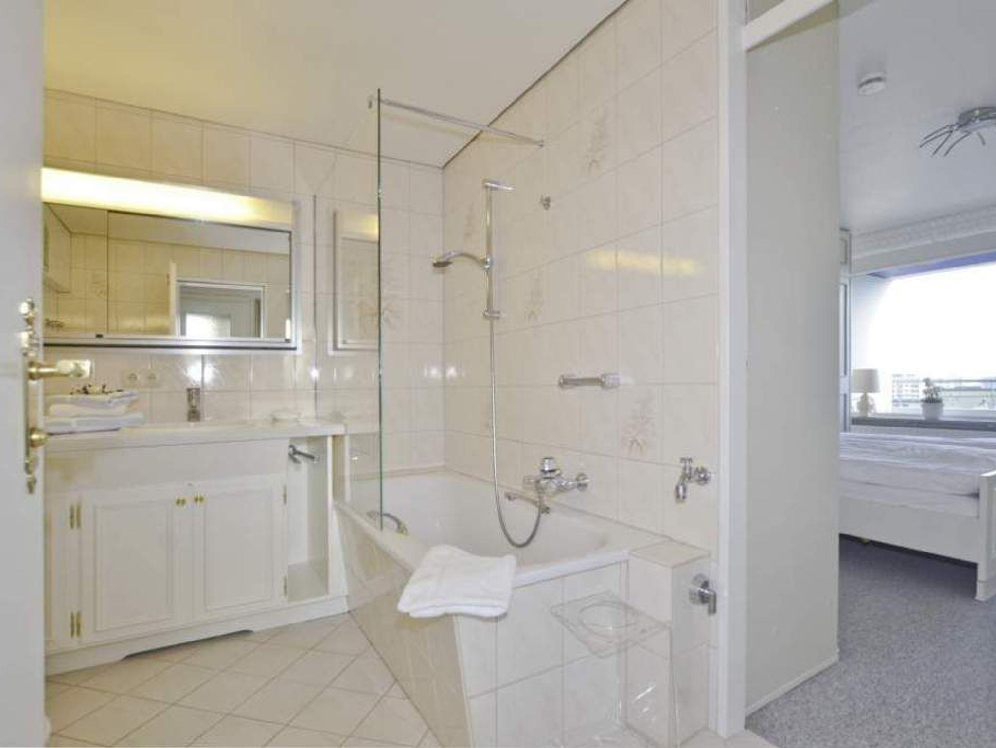 Das großzügige Bad bietet Wellness-Komfort auf hohem Niveau: Ein Doppelwaschtisch, eine Echtglas-Duschvorrichtung in der Badewanne, ein Bidet, ein Handtuchtrockner und ein Fön stehen Ihnen zur Verfügung geschmackvoll ausgestattet und durchdacht gestaltet.