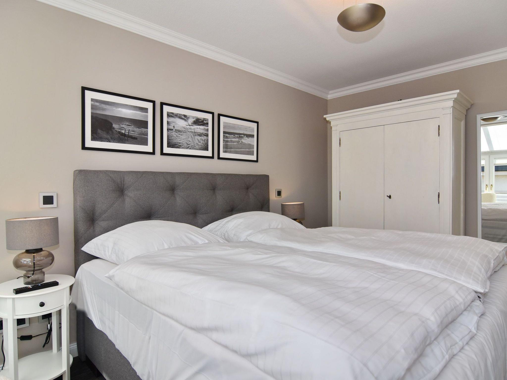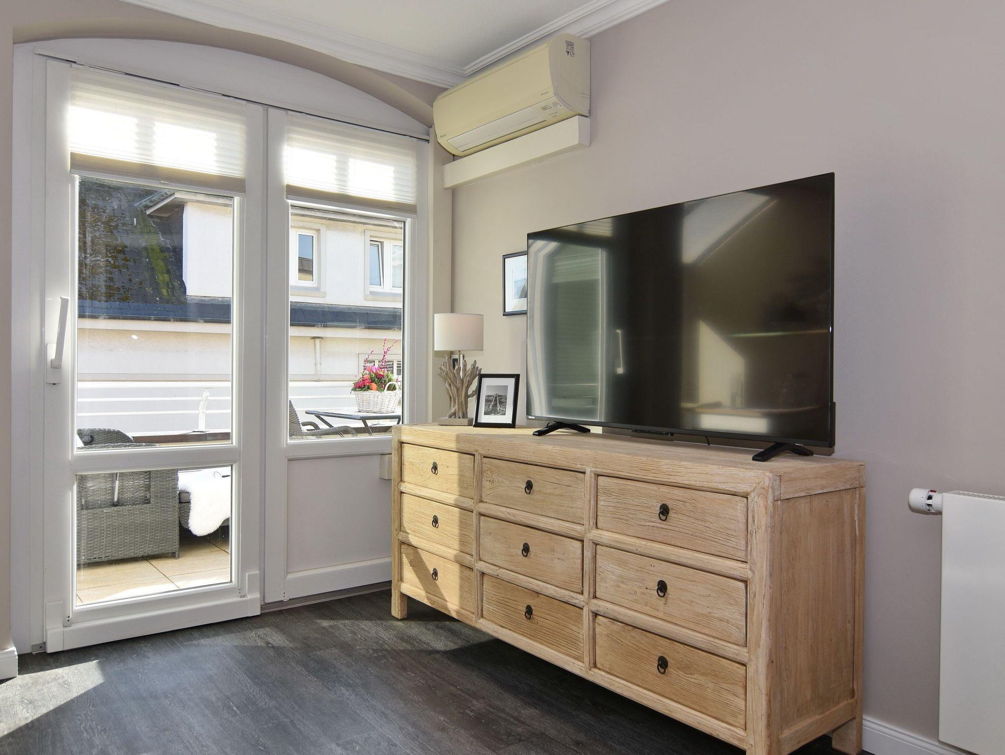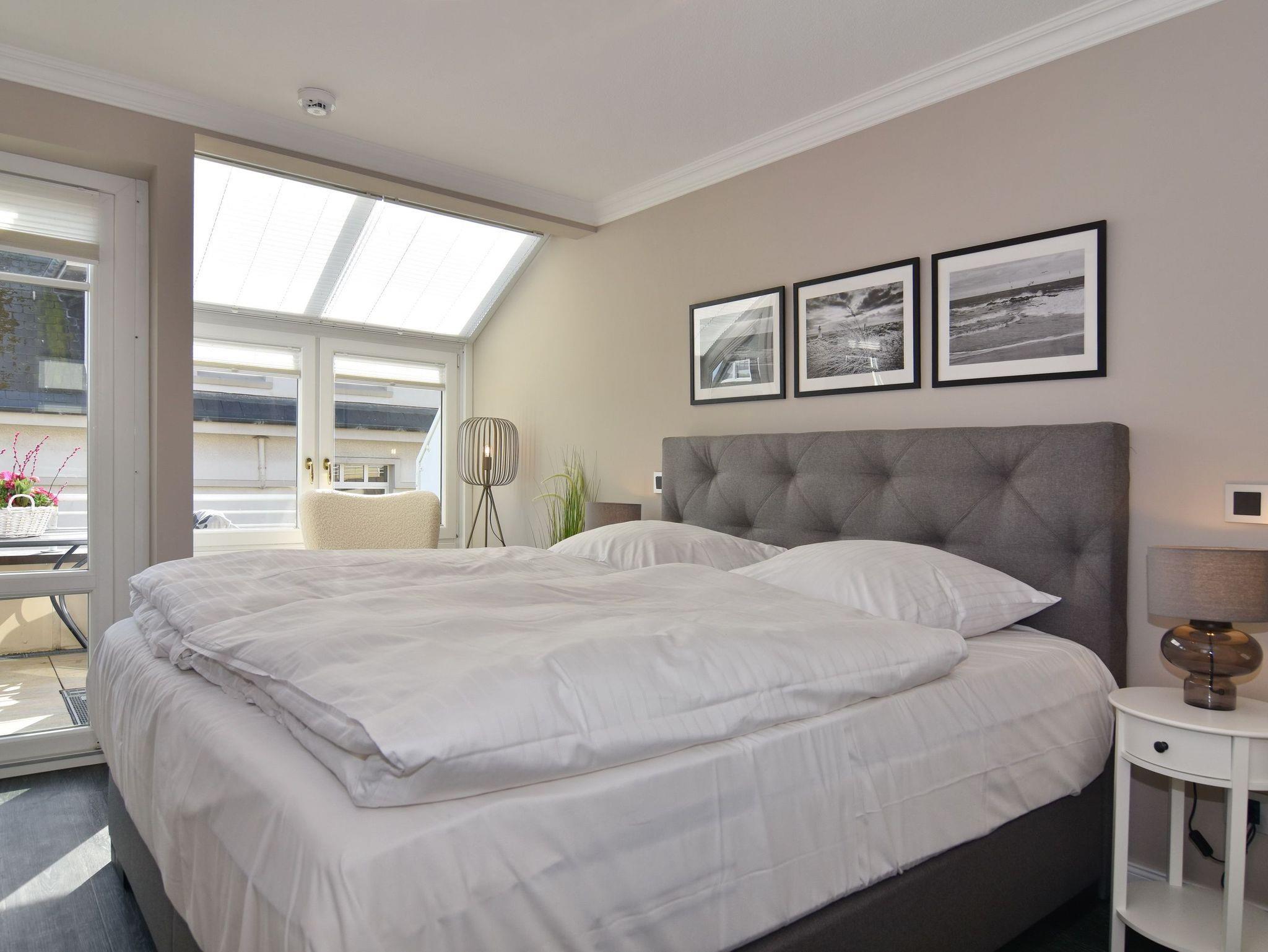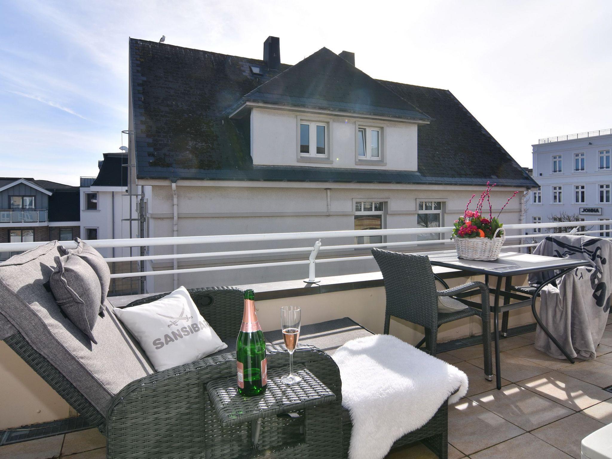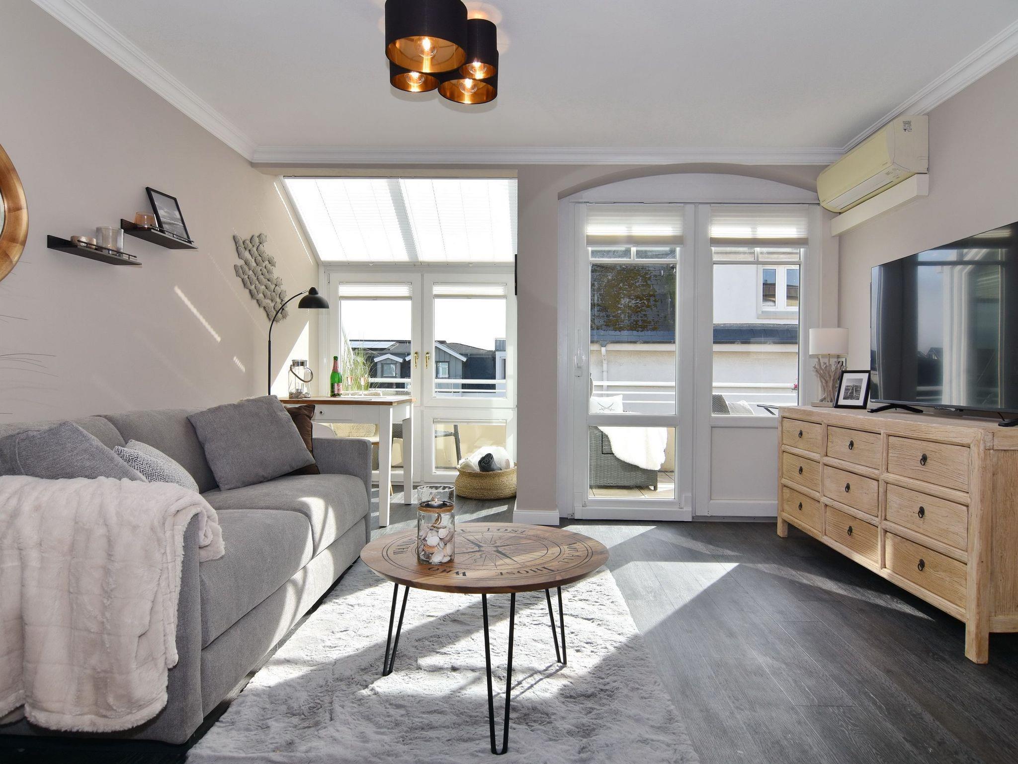 Wunderschöne 2-Zimmer-Wohnung im 2. OG der Residenz Bismarck. Direkt im Herzen Westerlands erwartet Sie eine lichtdurchflutete und modern eingerichtete Wohnung. Die Wohnung verfügt über ein Wohn- und ein Schlafzimmer. Von beiden Räumen gelangen Sie auf die großzügige Südterrasse. Im Wohnzimmer befindet sich der Essplatz im Wintergarten und bietet Ihnen selbst an grauen Tagen viel Licht. Das Sofa verfügt über eine Schlaffunktion, so dass Sie auch getrennt schlafen können. Die offene Küche verfügt über Backofen, Mikrowelle, Cerankochfeld, Kühlschrank mit Gefrierfach, Wasch-Trockner, Nespressomaschine und Kaffeefiltermaschine. Das Schlafzimmer hat neben dem komfortablen Boxspringbett (180x200), einen Kleiderschrank, TV und kleine Leseecke mit Sessel im dazugehörigen Wintergarten. Sämtliche Fenster sind mit Plissees versehen, im Schlafzimmer sind entgegen der Bilder inzwischen Verdunklungsplissees angebracht worden. Wohn- und Schlafraum verfügen über eine Klimaanlage. Das Badezimmer besteht aus Wanne mit Duschvorrichtung, Waschbecken und WC. Die Betten sind zur Anreise bezogen.