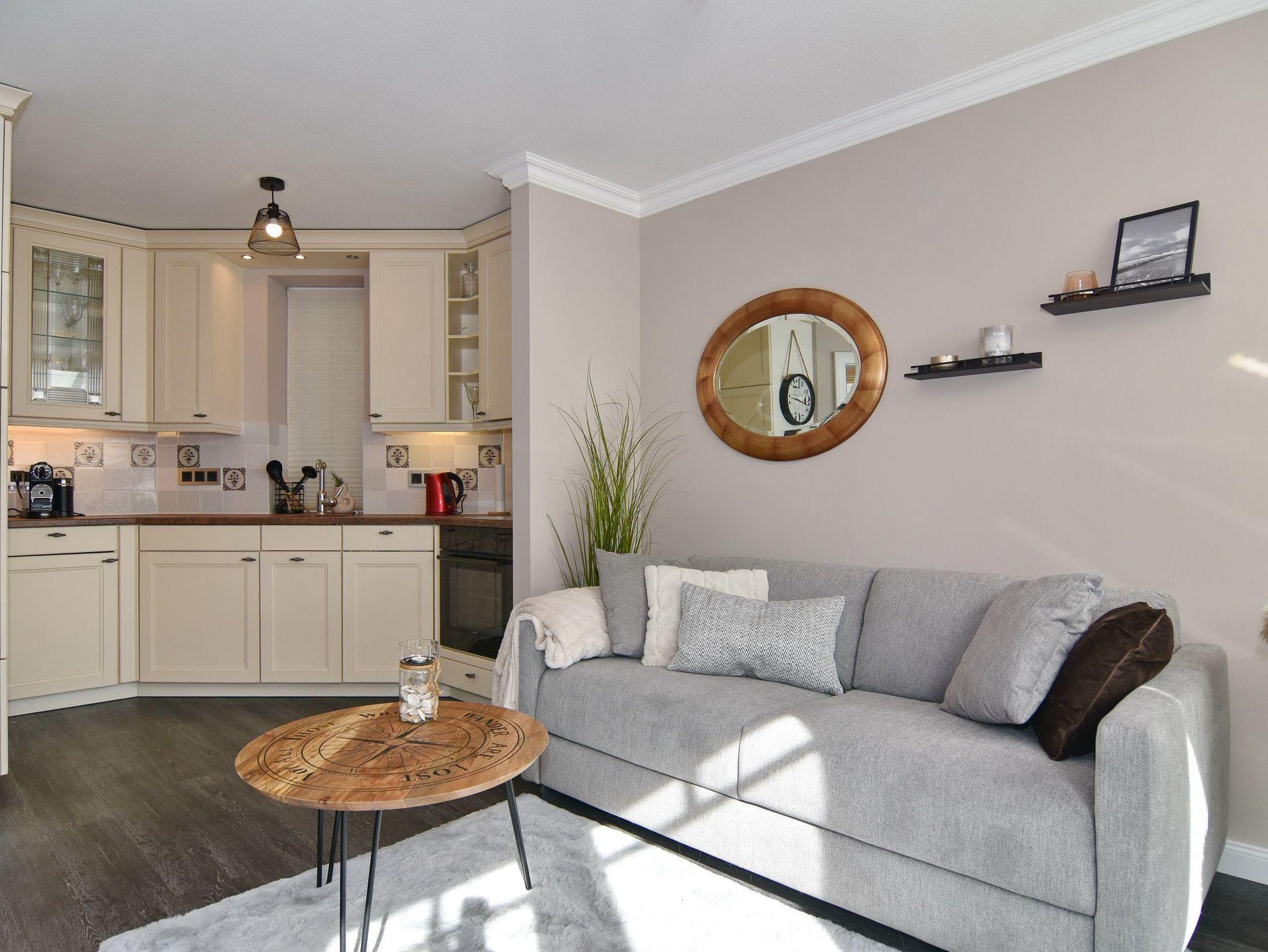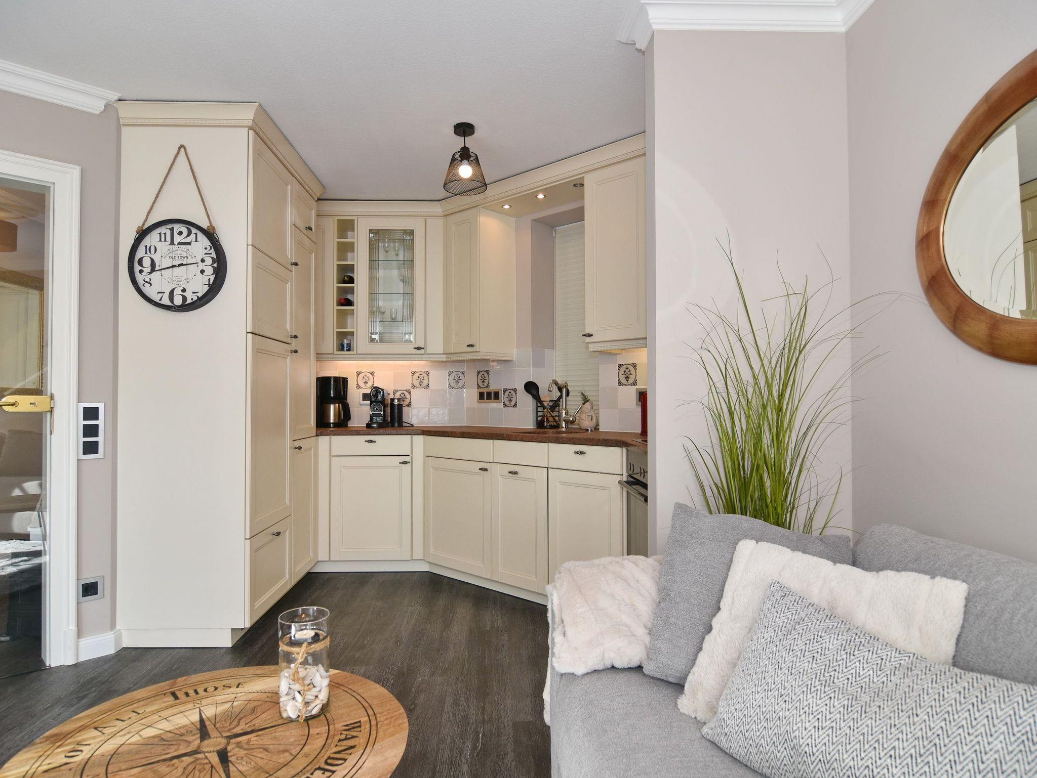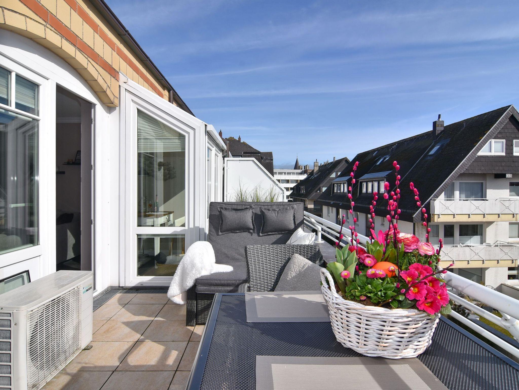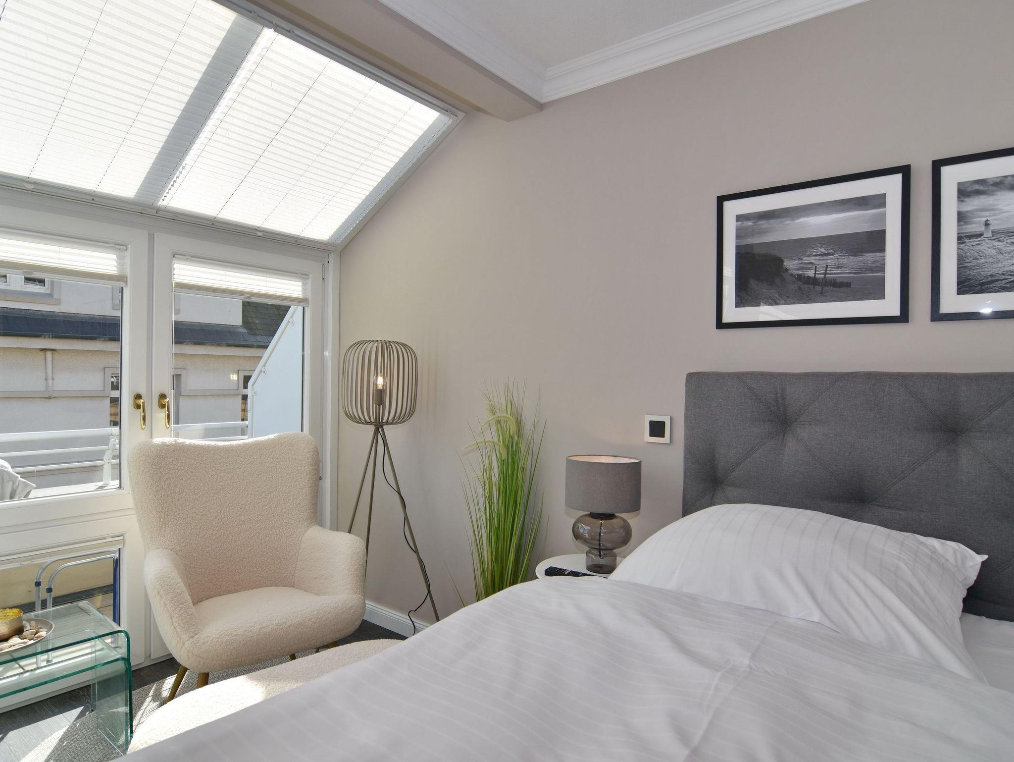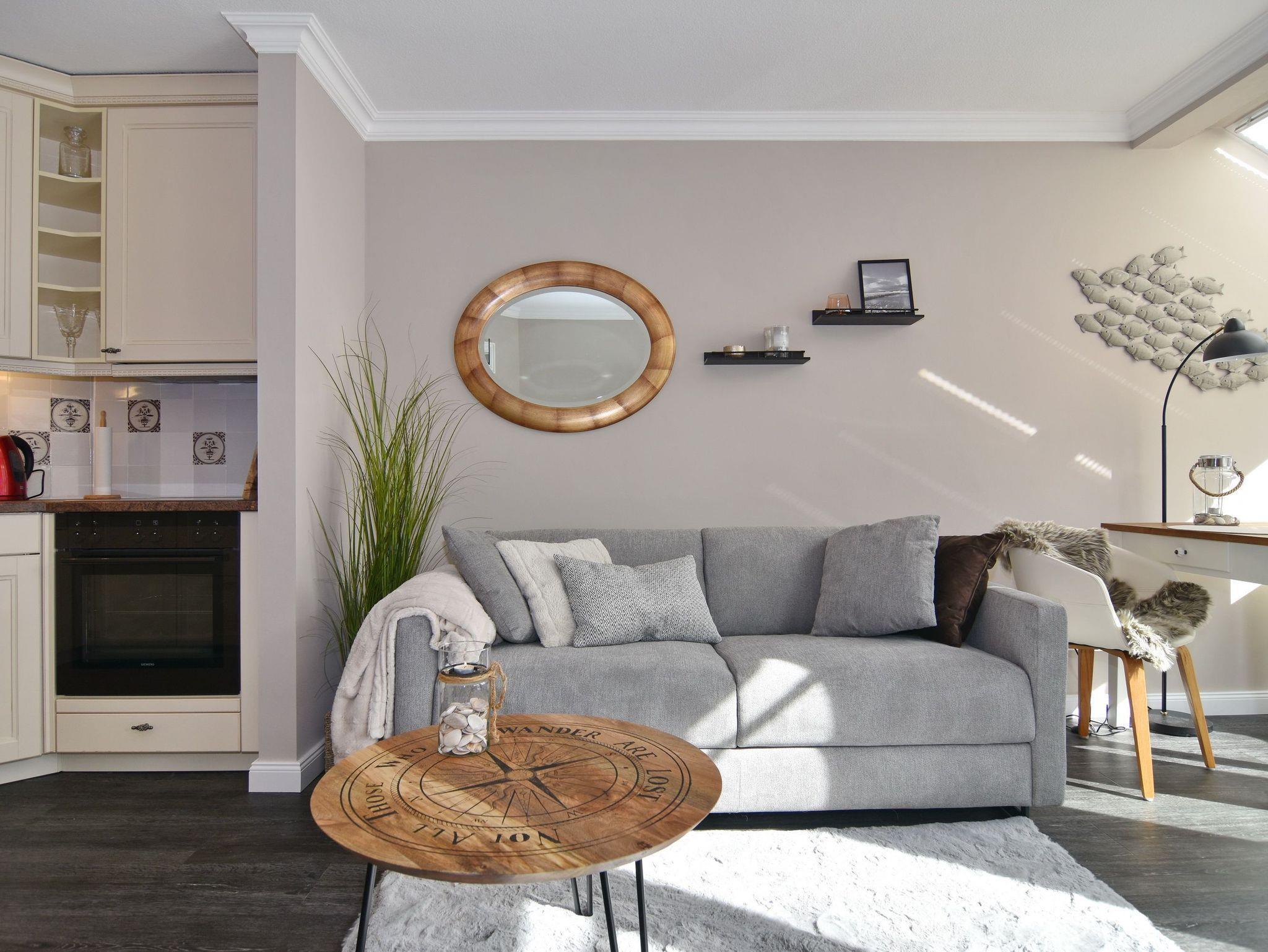 Wunderschöne 2-Zimmer-Wohnung im 2. OG der Residenz Bismarck. Direkt im Herzen Westerlands erwartet Sie eine lichtdurchflutete und modern eingerichtete Wohnung. Die Wohnung verfügt über ein Wohn- und ein Schlafzimmer. Von beiden Räumen gelangen Sie auf die großzügige Südterrasse. Im Wohnzimmer befindet sich der Essplatz im Wintergarten und bietet Ihnen selbst an grauen Tagen viel Licht. Das Sofa verfügt über eine Schlaffunktion, so dass Sie auch getrennt schlafen können. Die offene Küche verfügt über Backofen, Mikrowelle, Cerankochfeld, Kühlschrank mit Gefrierfach, Wasch-Trockner, Nespressomaschine und Kaffeefiltermaschine. Das Schlafzimmer hat neben dem komfortablen Boxspringbett (180x200), einen Kleiderschrank, TV und kleine Leseecke mit Sessel im dazugehörigen Wintergarten. Sämtliche Fenster sind mit Plissees versehen, im Schlafzimmer sind entgegen der Bilder inzwischen Verdunklungsplissees angebracht worden. Wohn- und Schlafraum verfügen über eine Klimaanlage. Das Badezimmer besteht aus Wanne mit Duschvorrichtung, Waschbecken und WC. Die Betten sind zur Anreise bezogen.