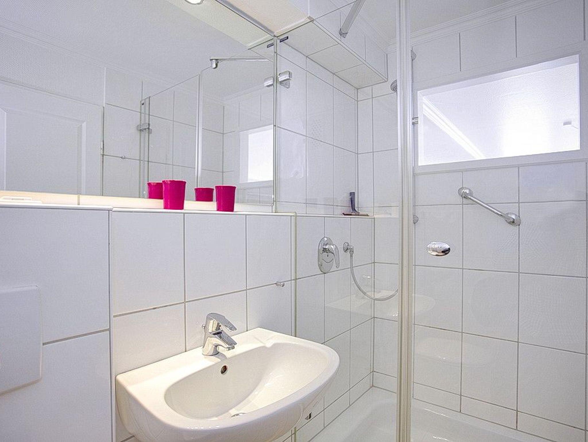 Das moderne 1-Zimmer-Apartment im 1. OG vom Haus Metropol mit ca. 43 m² überzeugt durch sein großes gefliestes Wohn-/Schlafzimmer mit feststehendem Doppelbett (160x200), Couchecke und Essplatz direkt am Fenster. Zudem finden Sie im Wohnbereich einen Flat-TV, ein Radio und WLAN (ohne Gewähr). Die seperate Küche mit Backofen, Geschirrspüler und Cerankochfeld ist voll ausgestattet. Im Eingangsbereich befindet sich der Zugang zum Duschbad mit WC.