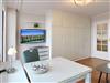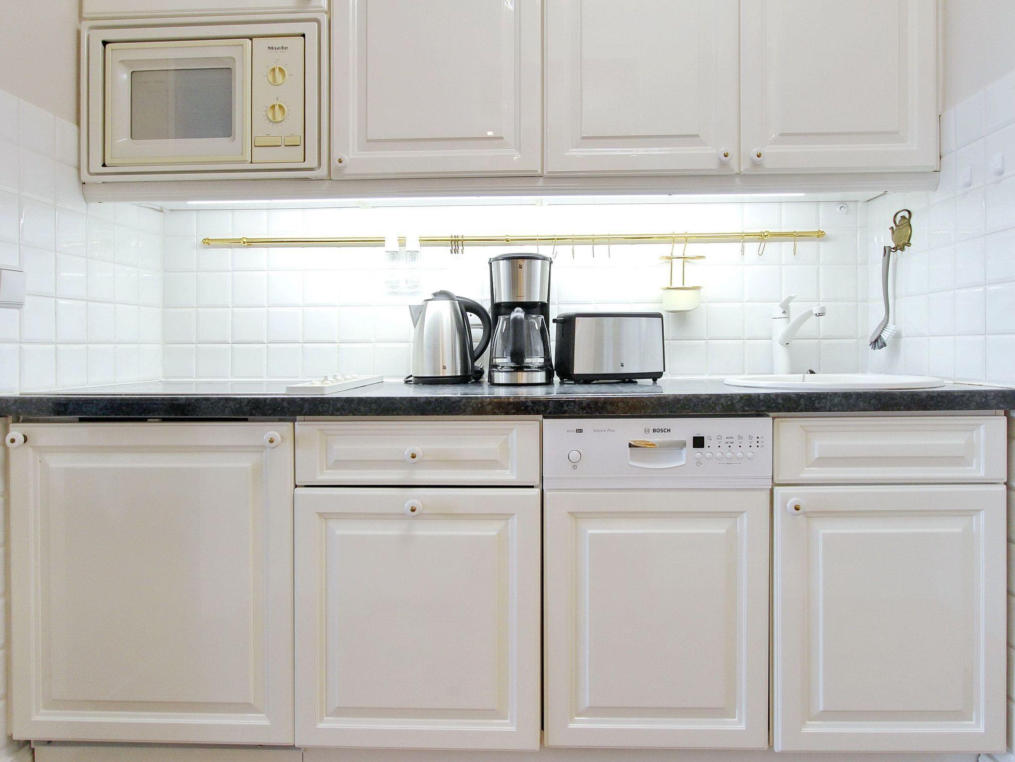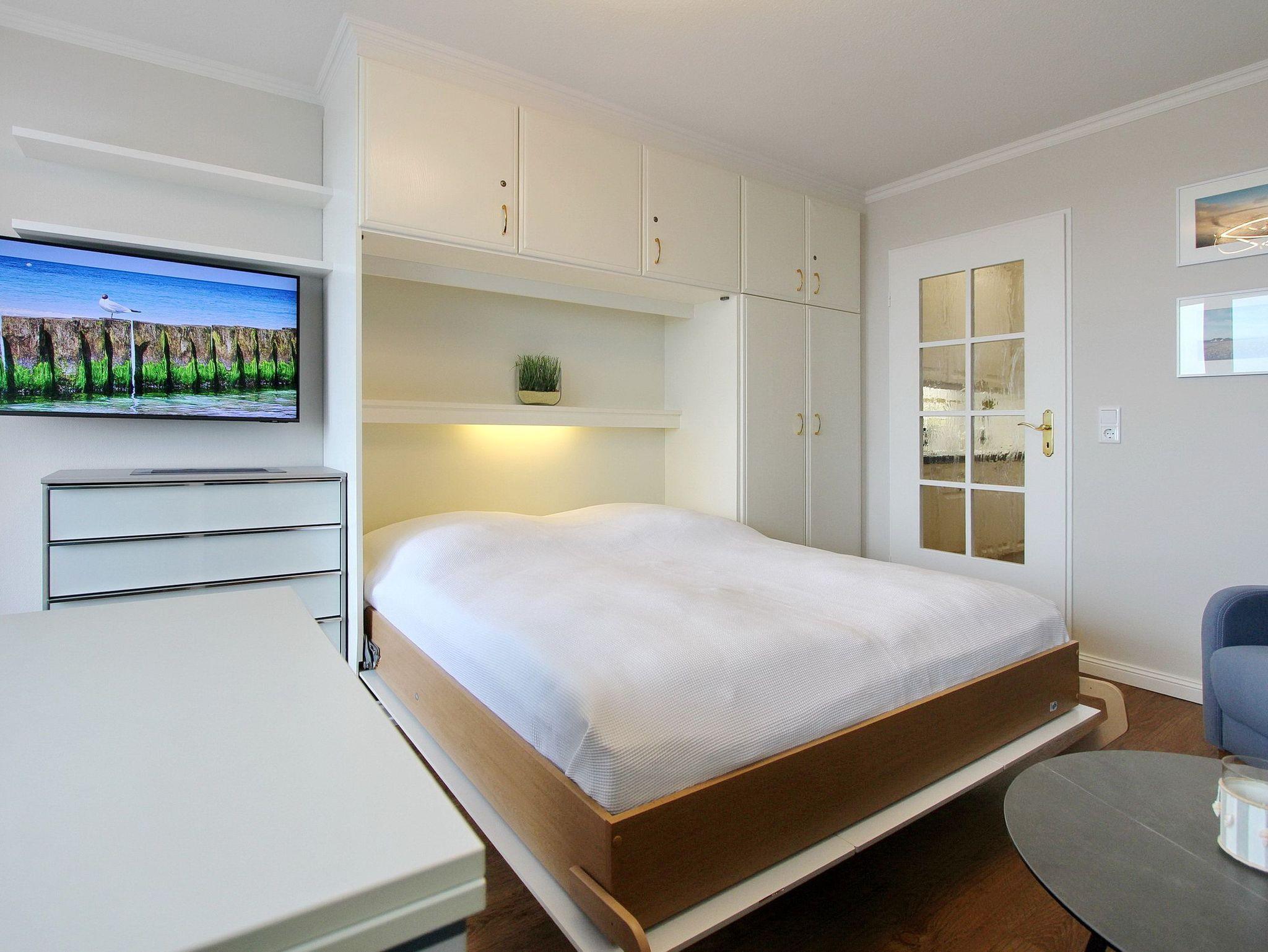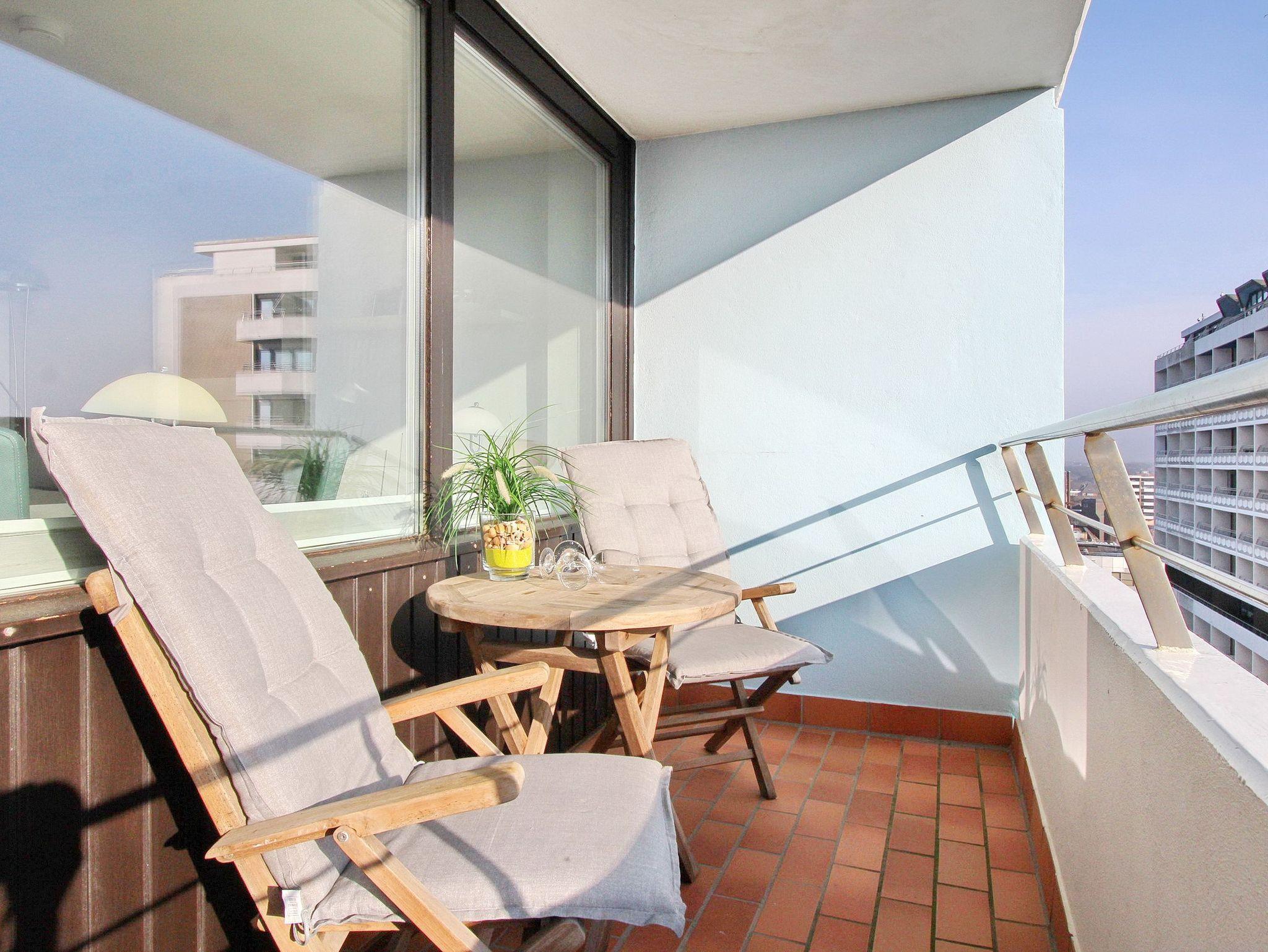 Nette und gemütliche Einzimmerwohnung in der 5. Etage im Haus Metropol mit Balkon zur Ostseite, die nur wenige Schritte vom Strand und Meer entfernt liegt. Der Wohn-Schlafraum verfügt über ein Doppelschrankbett, ein Sofa sowie einen Fernsehsessel und einen Essplatz am Fenster mit 3 Stühlen. Der Designfußboden in Holzoptik verleiht dem Raum Wärme und sorgt besonders für Allergiker für ein gutes Wohnklima. Im Badezimmer gibt es eine Dusche, einen Fön sowie einen Schrank mit viel Abstellfläche für ihre persönlichen Dinge. Zusätzlich gibt es ein Bügeleisen sowie ein Bügelbrett. Die Küchenzeile im Flur verfügt über einen Geschirrspüler, ein Ceranfeld mit 4 Kochplatten und eine Mikrowelle. Zur technischen Ausstattung gehört ein Flachbildfernseher, ein Radio mit CD Player, eine Funkwetterstation und ein Telefon. Ein freies WLAN Netzwerk (WEG Haus Metropol - Passwortfrei - ohne Gewähr) steht ihnen kostenfrei zur Verfügung. Wohnungsgröße: ca. 30 m².