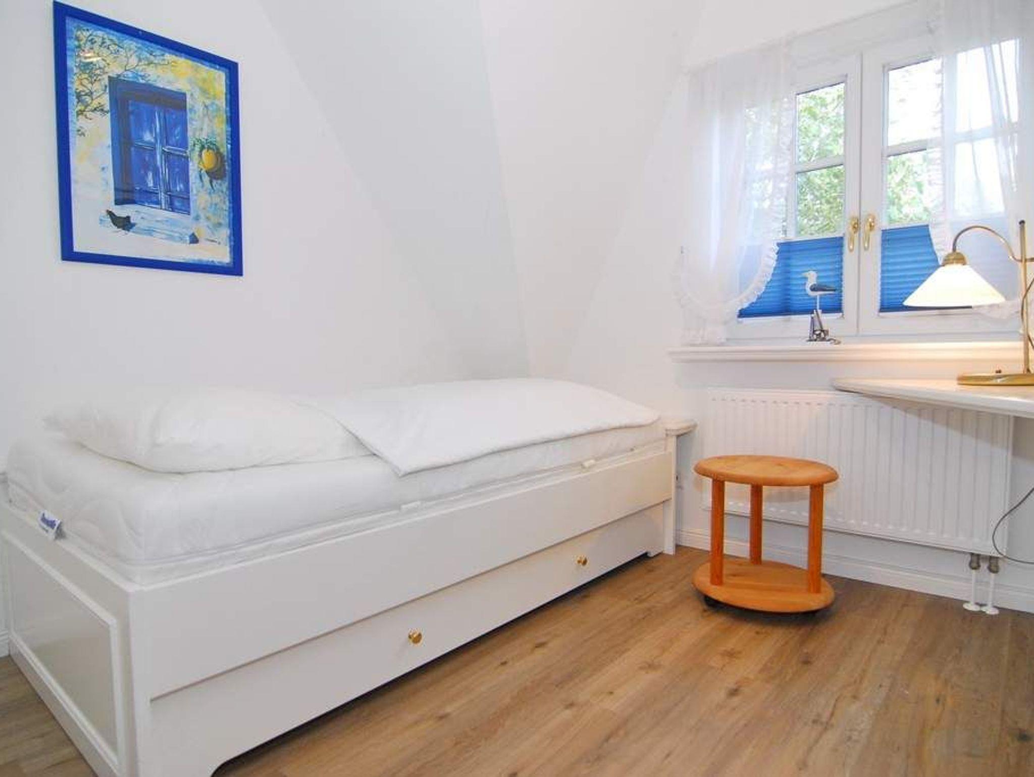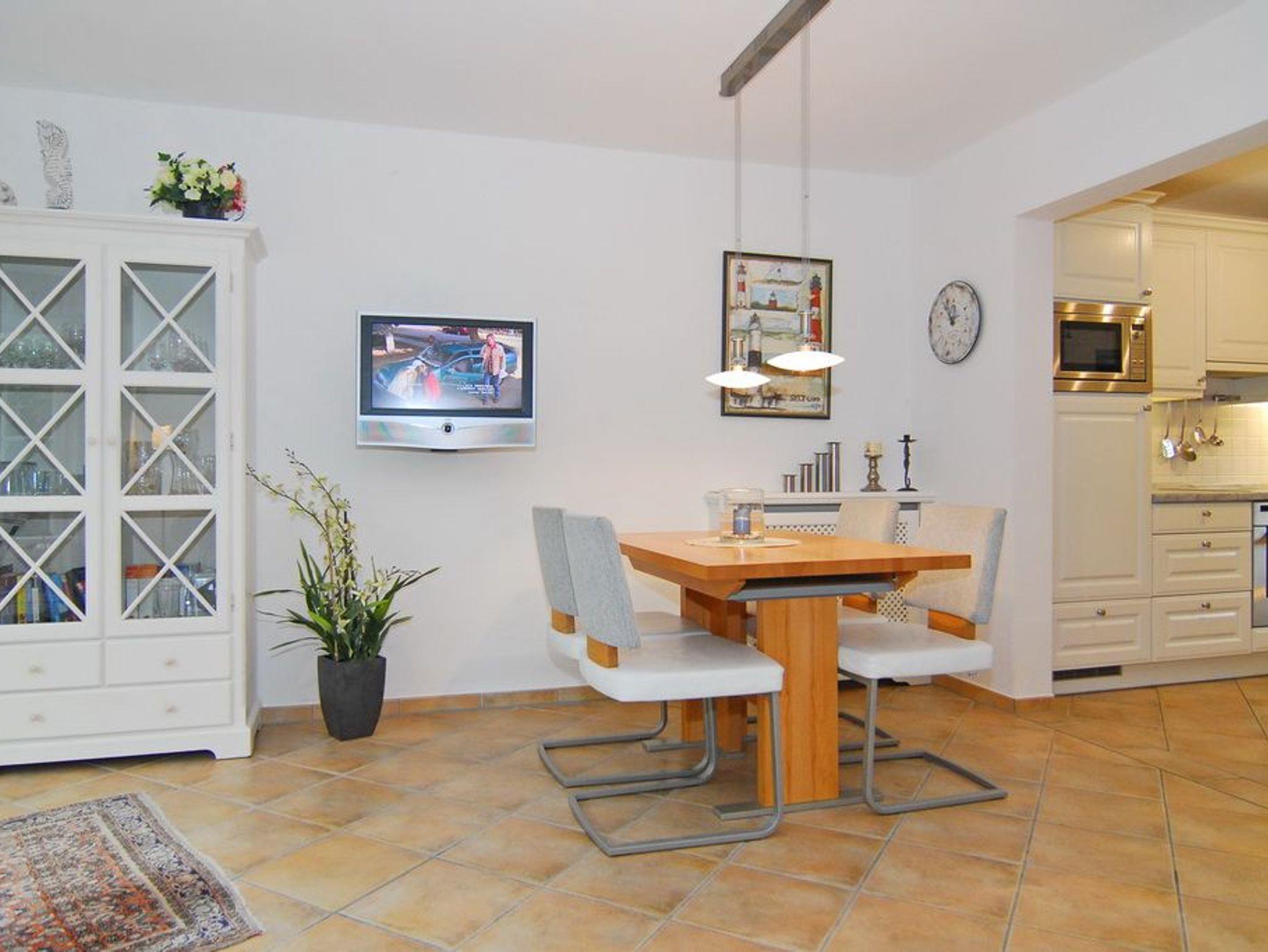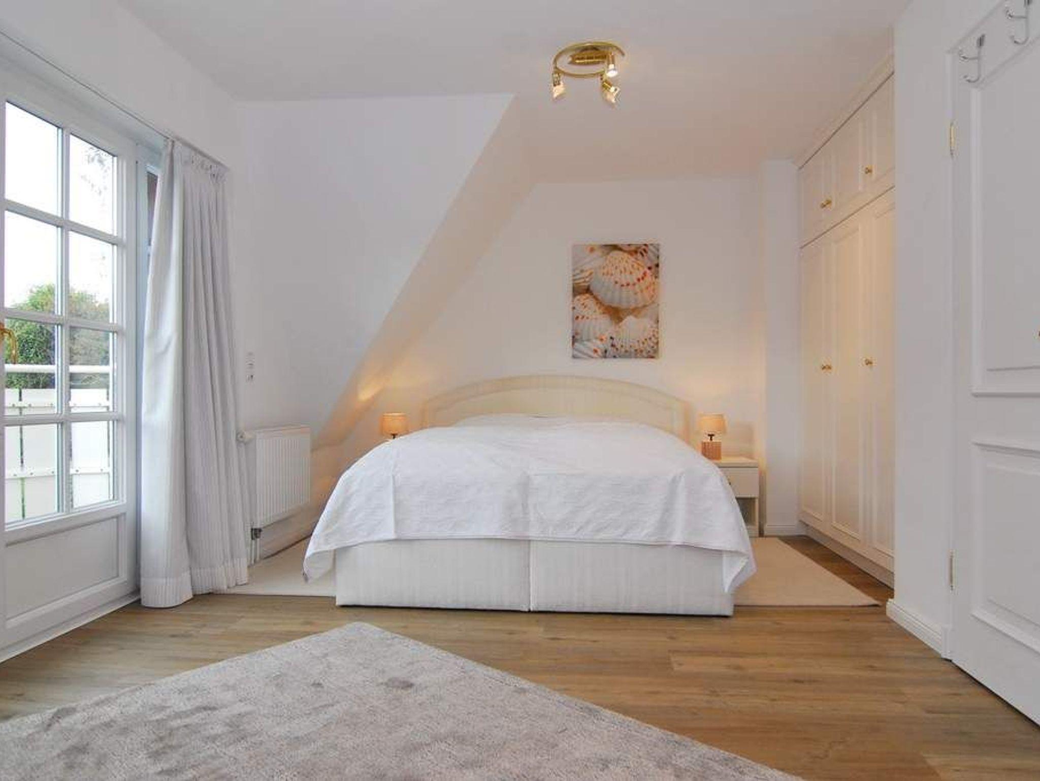 Exclusives Ferienhaus (Mittelhaus), ca.105qm, ruhige Lage. Mindestbuchung 7 Tage! Nichtraucher-Whg.! EG: Wohnzimmer mit Couch, 2 Sessel, Eßecke, Kabel-TV,Radio, W-Lan (ohne Gewähr), Südterrasse m. Gartenmöbel, Strandkorb (Apr.-Okt.), offene Küche mit Geschirrspüler und Microwelle/Backofen, Dusche/WC, EG ist gefliest. OG: Schlafzimmer mit Doppelbett (160x200) und Südbalkon, kleines Schlafzimmer mit Einzelbett, Duschbad/ WC, Einbauschränke. DG: Schlafraum mit 2 Einzelbetten, TV, Schreibtisch. OG und DG mit Laminat. Kinder-Reisebett ist vorhanden. Bettwäsche und Handtücher sind zur Anreise aufgezogen. Tierhaltung nicht gestattet. Wasch-Trockner vorhanden.