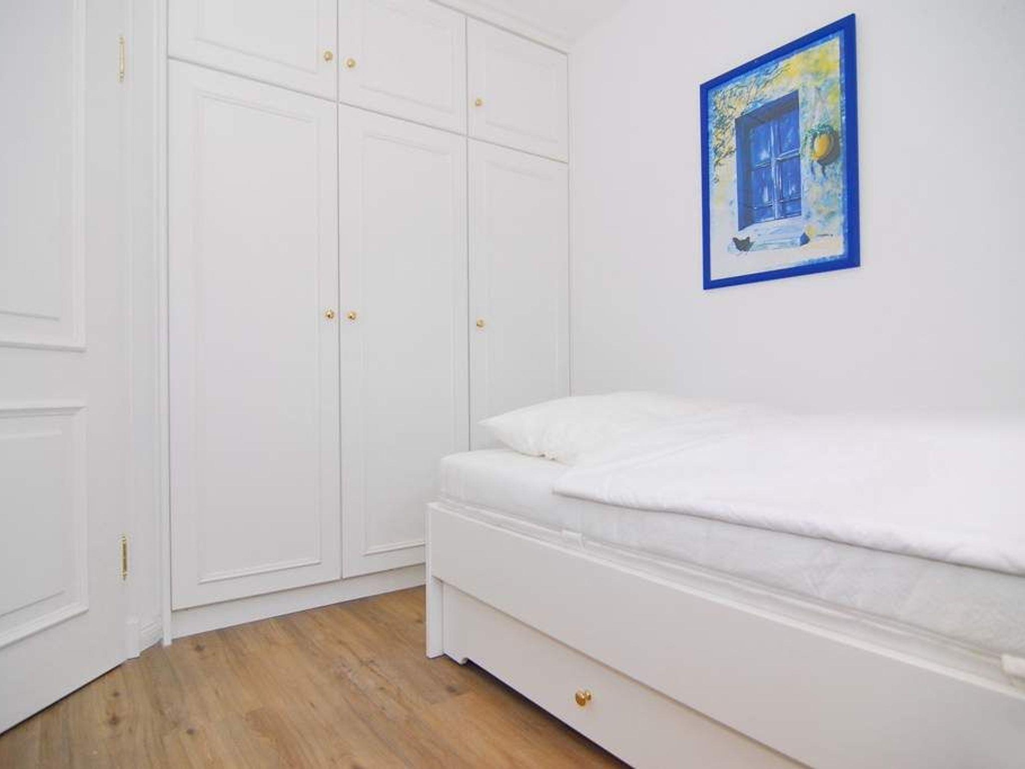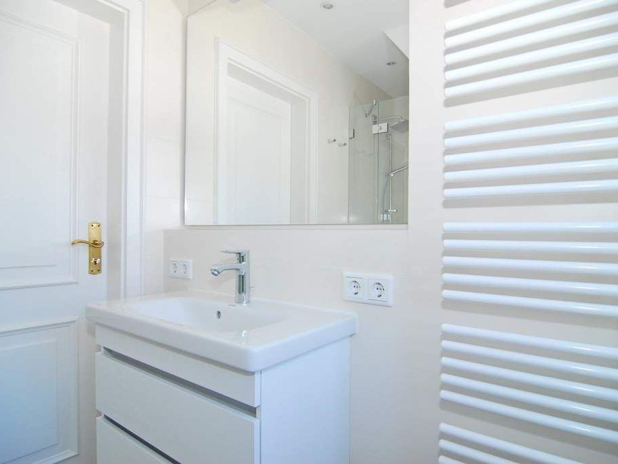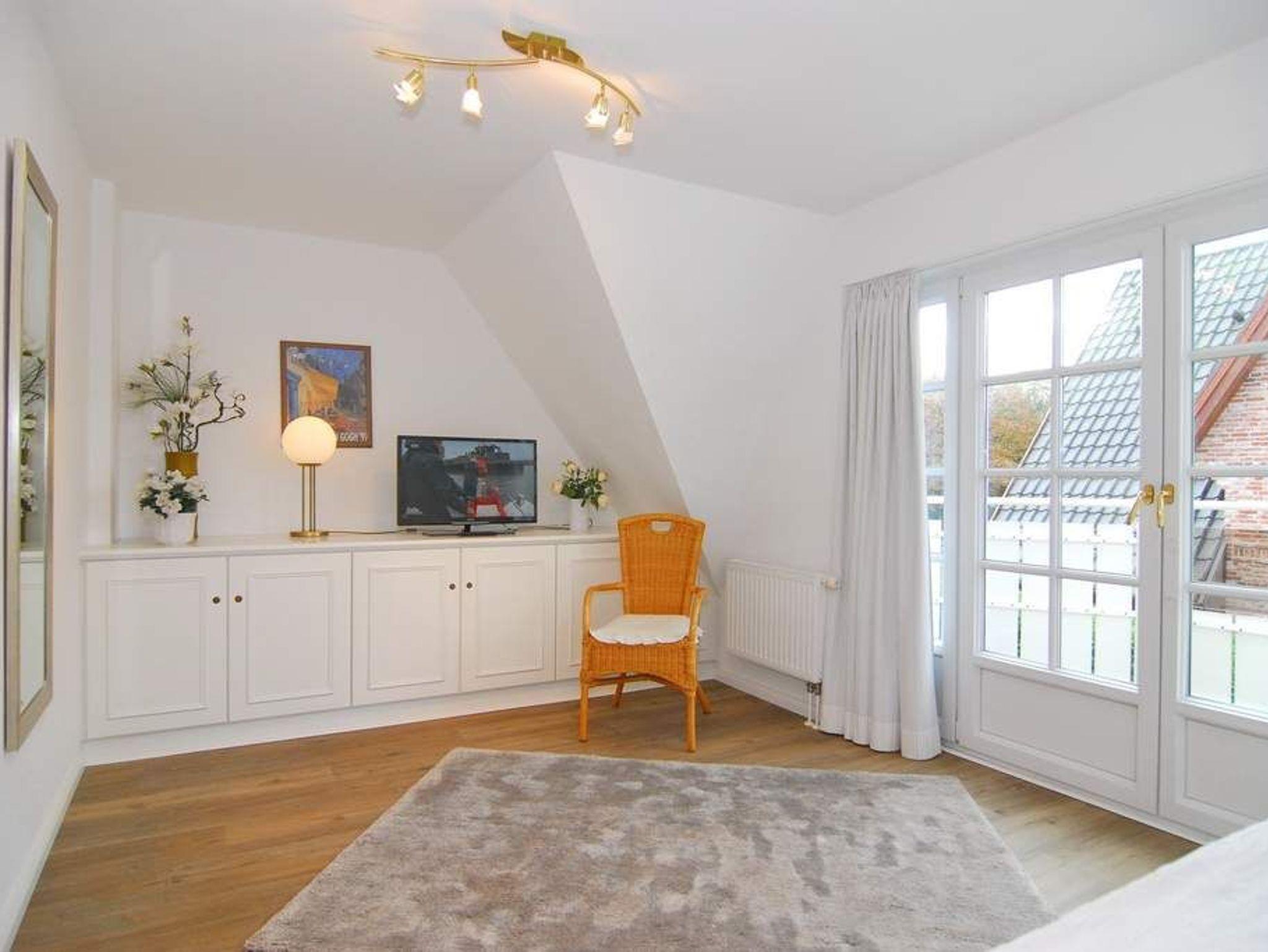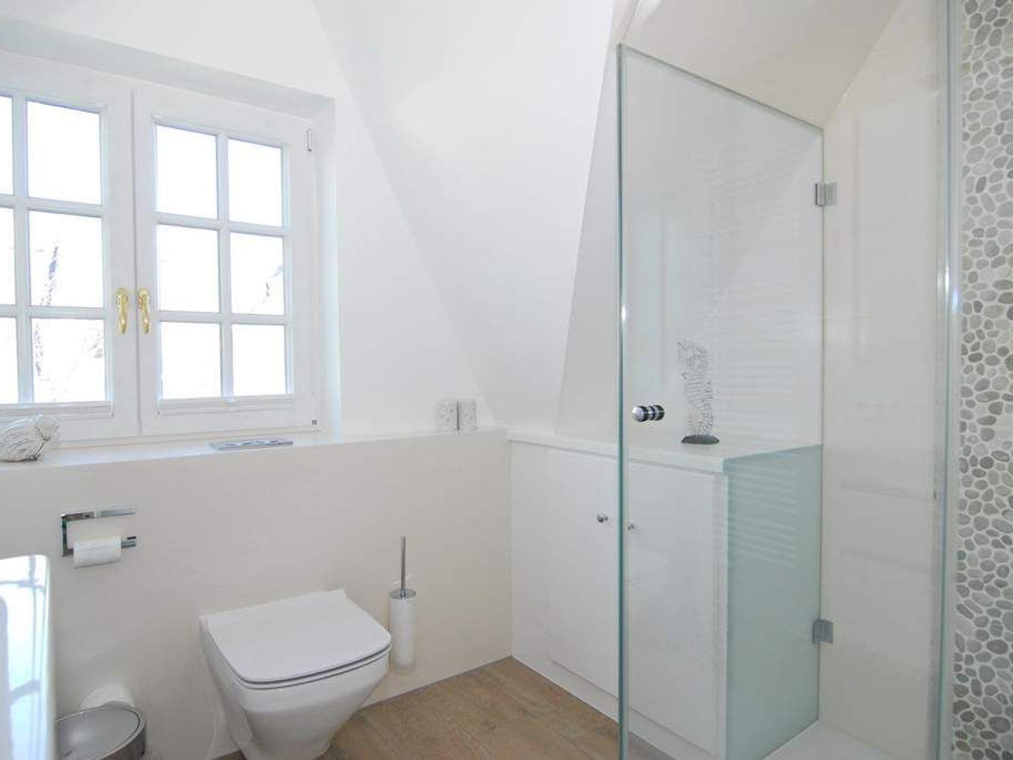Exclusives Ferienhaus (Mittelhaus), ca.105qm, ruhige Lage. Mindestbuchung 7 Tage! Nichtraucher-Whg.! EG: Wohnzimmer mit Couch, 2 Sessel, Eßecke, Kabel-TV,Radio, W-Lan (ohne Gewähr), Südterrasse m. Gartenmöbel, Strandkorb (Apr.-Okt.), offene Küche mit Geschirrspüler und Microwelle/Backofen, Dusche/WC, EG ist gefliest. OG: Schlafzimmer mit Doppelbett (160x200) und Südbalkon, kleines Schlafzimmer mit Einzelbett, Duschbad/ WC, Einbauschränke. DG: Schlafraum mit 2 Einzelbetten, TV, Schreibtisch. OG und DG mit Laminat. Kinder-Reisebett ist vorhanden. Bettwäsche und Handtücher sind zur Anreise aufgezogen. Tierhaltung nicht gestattet. Wasch-Trockner vorhanden.