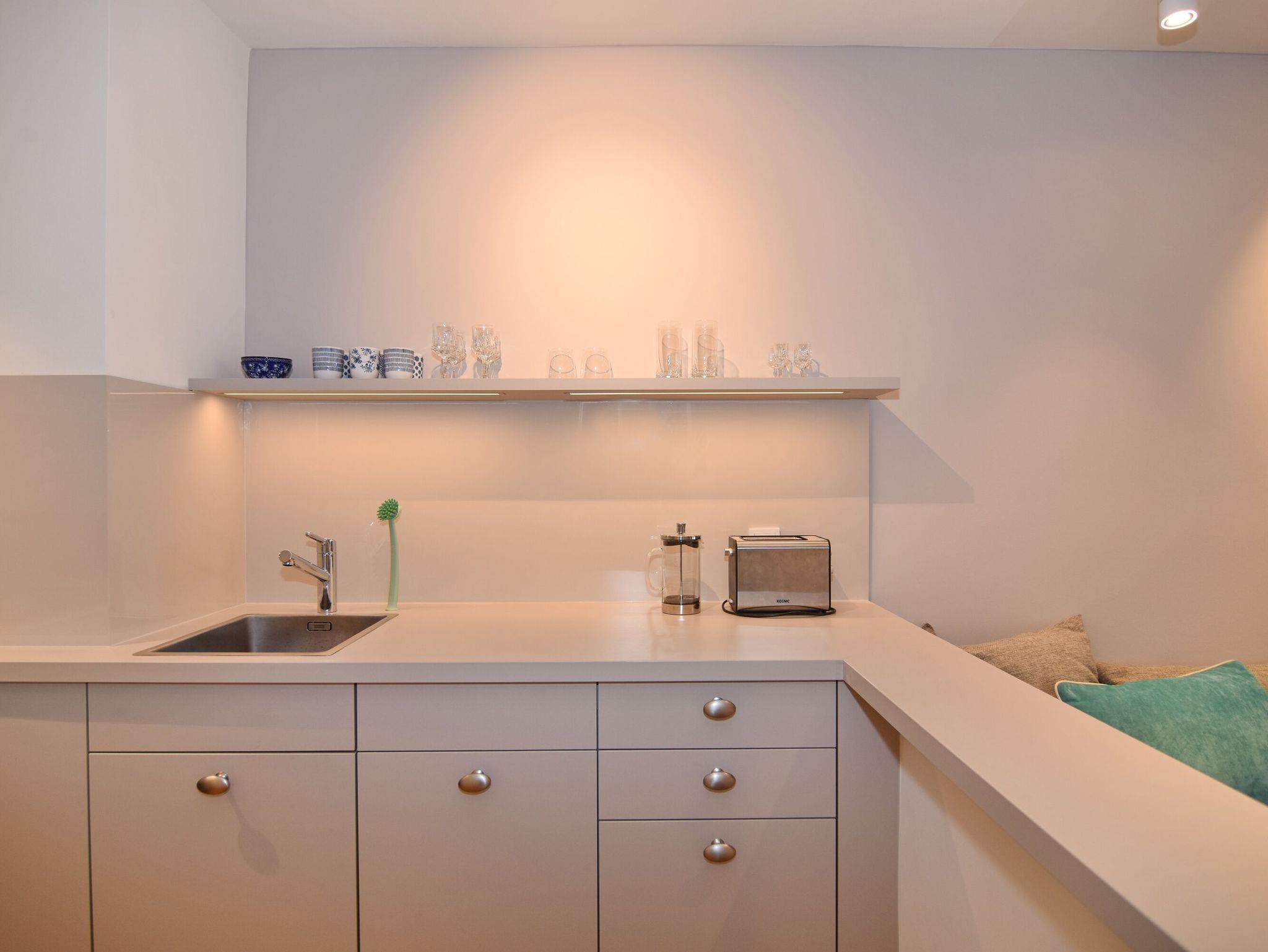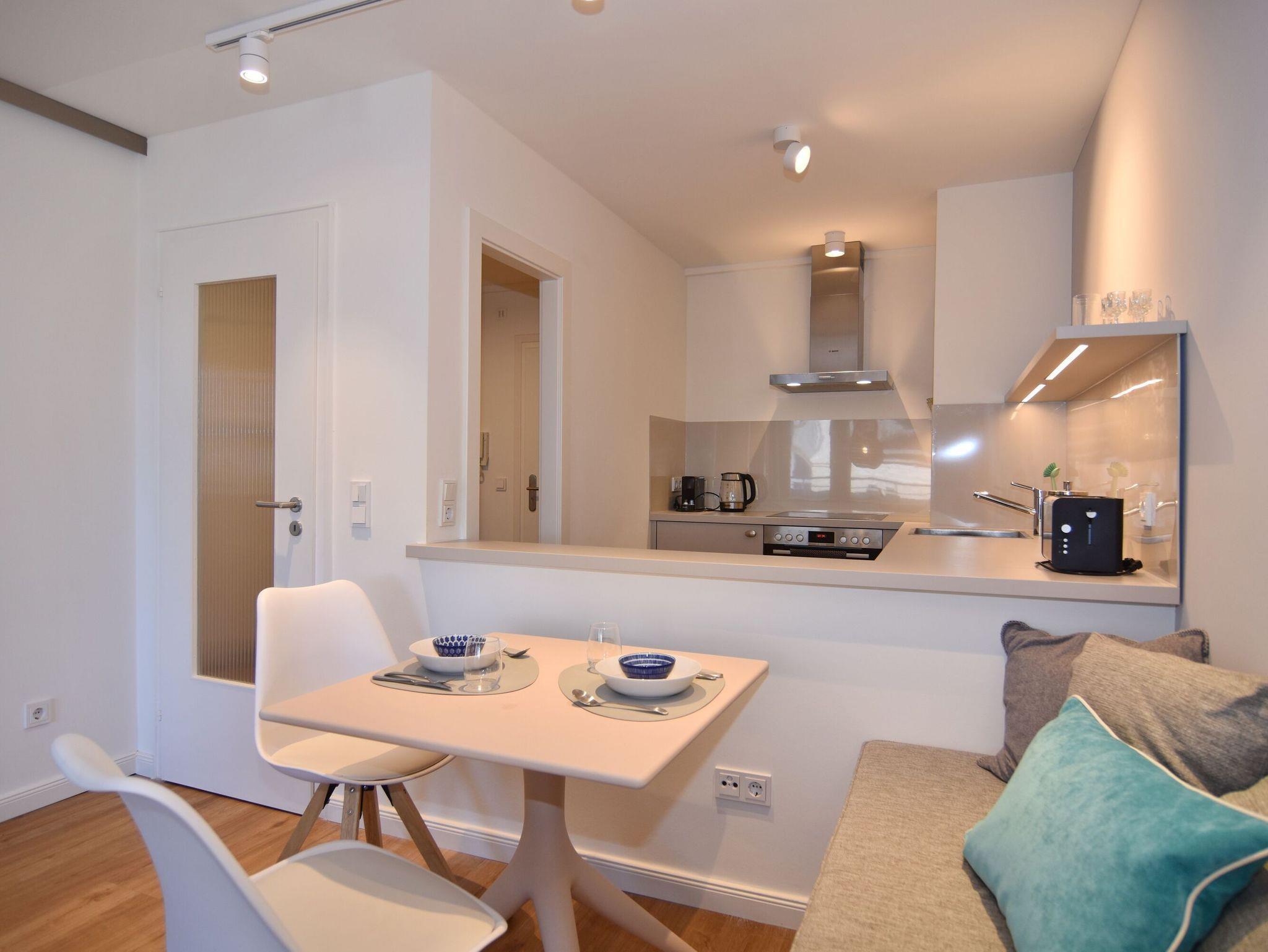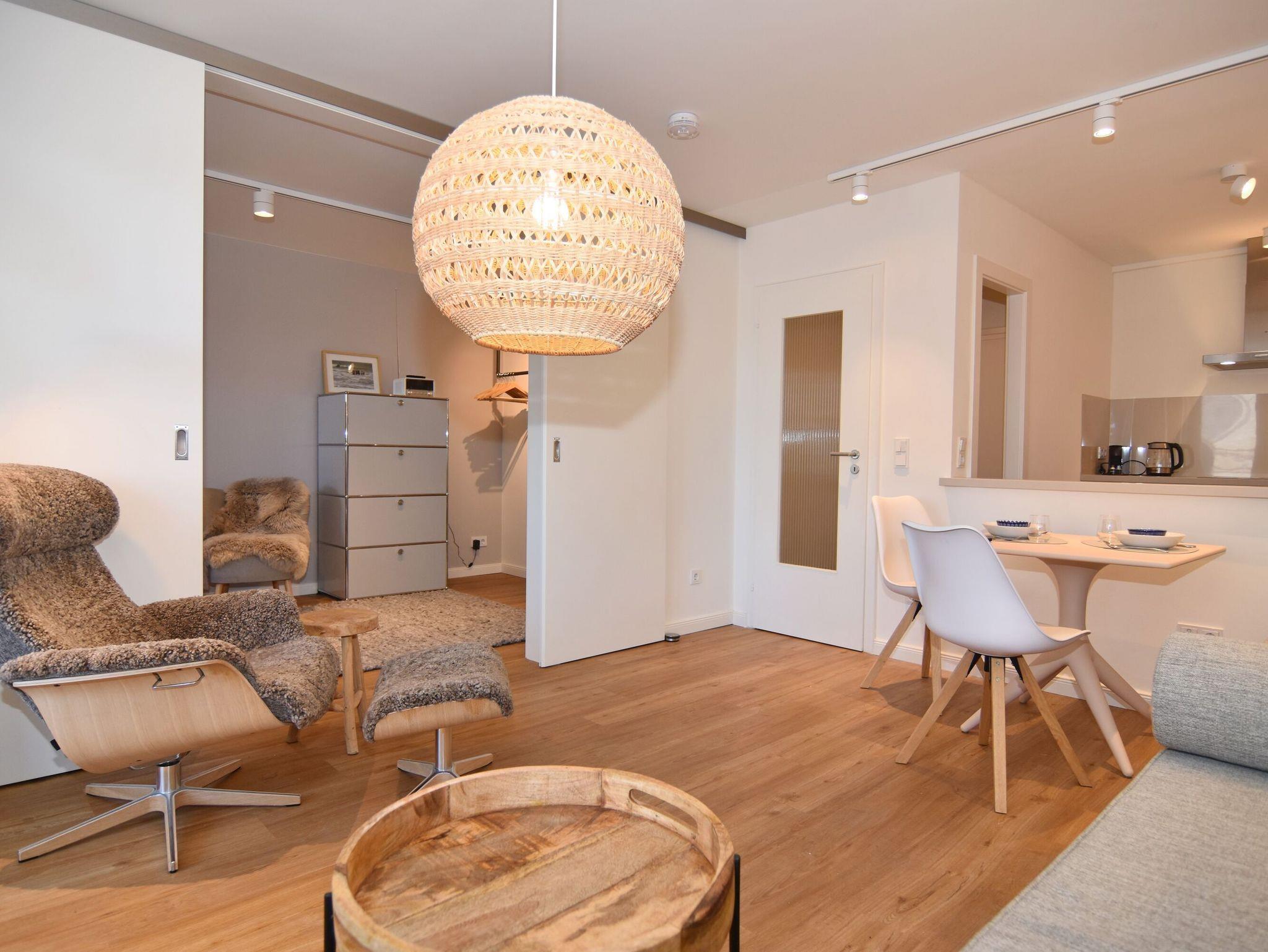 Moderne 2-Zimmer-Wohnung im Herzen von Westerland. Alle Einkaufsmöglichkeiten und der Strand sind bequem und in direkter Nähe fußläufig zu erreichen. Das Wohnzimmer verfügt über eine lange, gepolsterte Eichen-Sitzbank, einem Relaxsessel mit Fusshocker sowie einem Essplatz. Von hier aus gelangen Sie auf den geschützten Westbalkon oder ins geräumige Schlafzimmer mit Doppelbett, TV und Aufbewahrungsmöglichkeiten für Ihre Kleidung. Vom großen Flur mit Garderobe und Spiegel geht es in die 2024 neu gestaltete offene Küche mit 4-Platten-Cerandherd und Backofen und in das helle Bad mit Wanne und Duschvorrichtung. Wlan ist (ohne Gewähr) vorhanden. Zu der Wohnung gehört der Tiefgaragenstellplatz Nr. 54 (ca. 2 m breit, Durchfahrtshöhe 1,80m). Die Garage ist über das Treppenhaus erreichbar. Der Fahrstuhl beginnt im Erdgeschoss. Im Haus befindet sich eine gemeinschaftliche Waschküche mit Münzautomaten. Bettwäsche und Handtücher sind zur Anreise aufgezogen. In der Wohnung ist das Rauchen und Tierhaltung nicht gestattet.