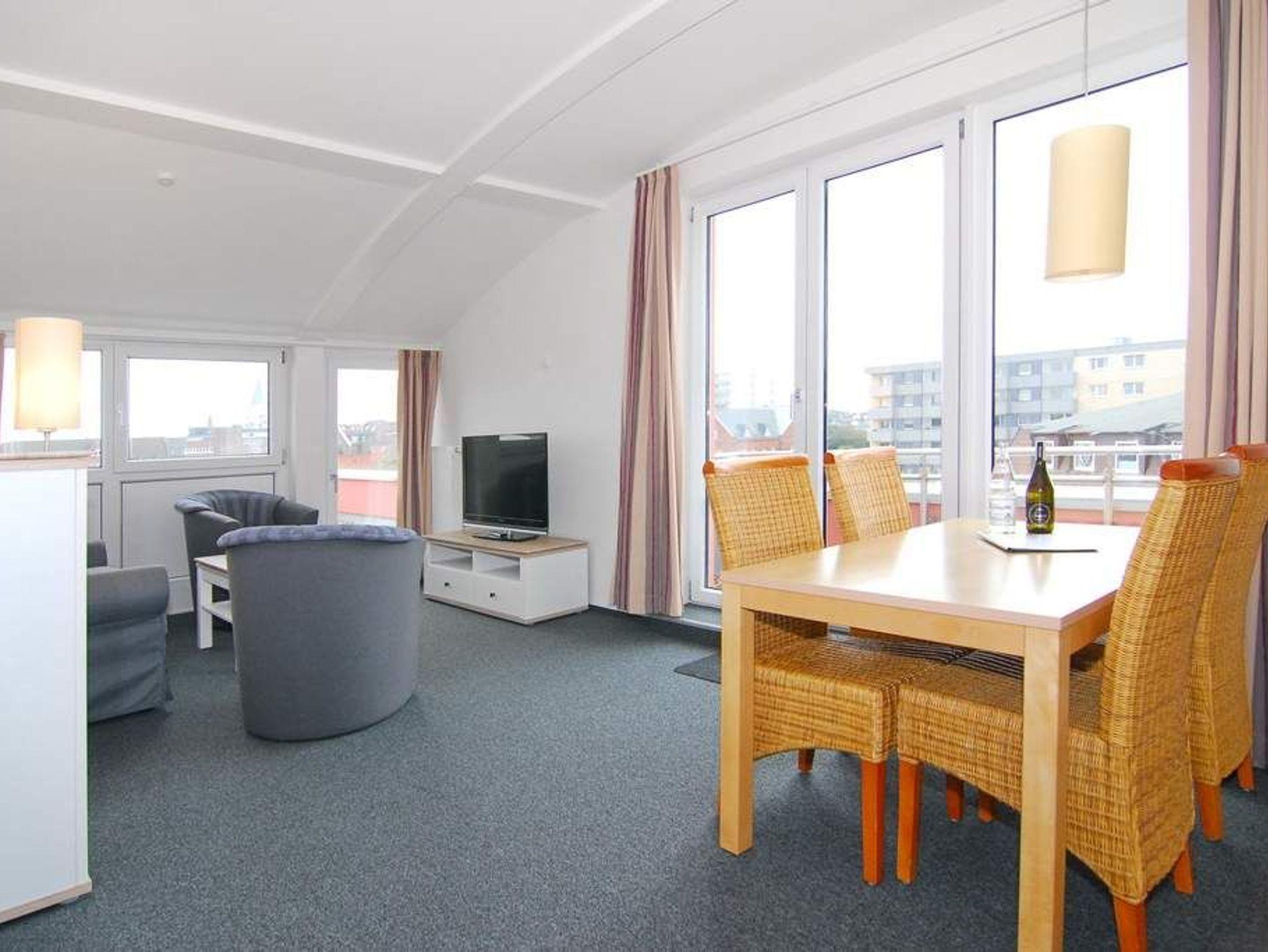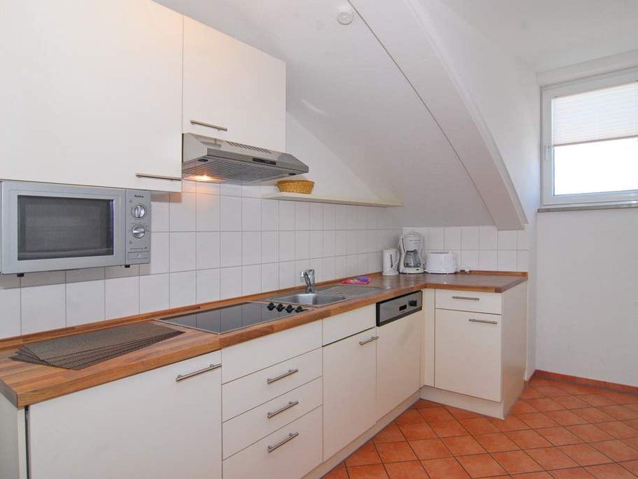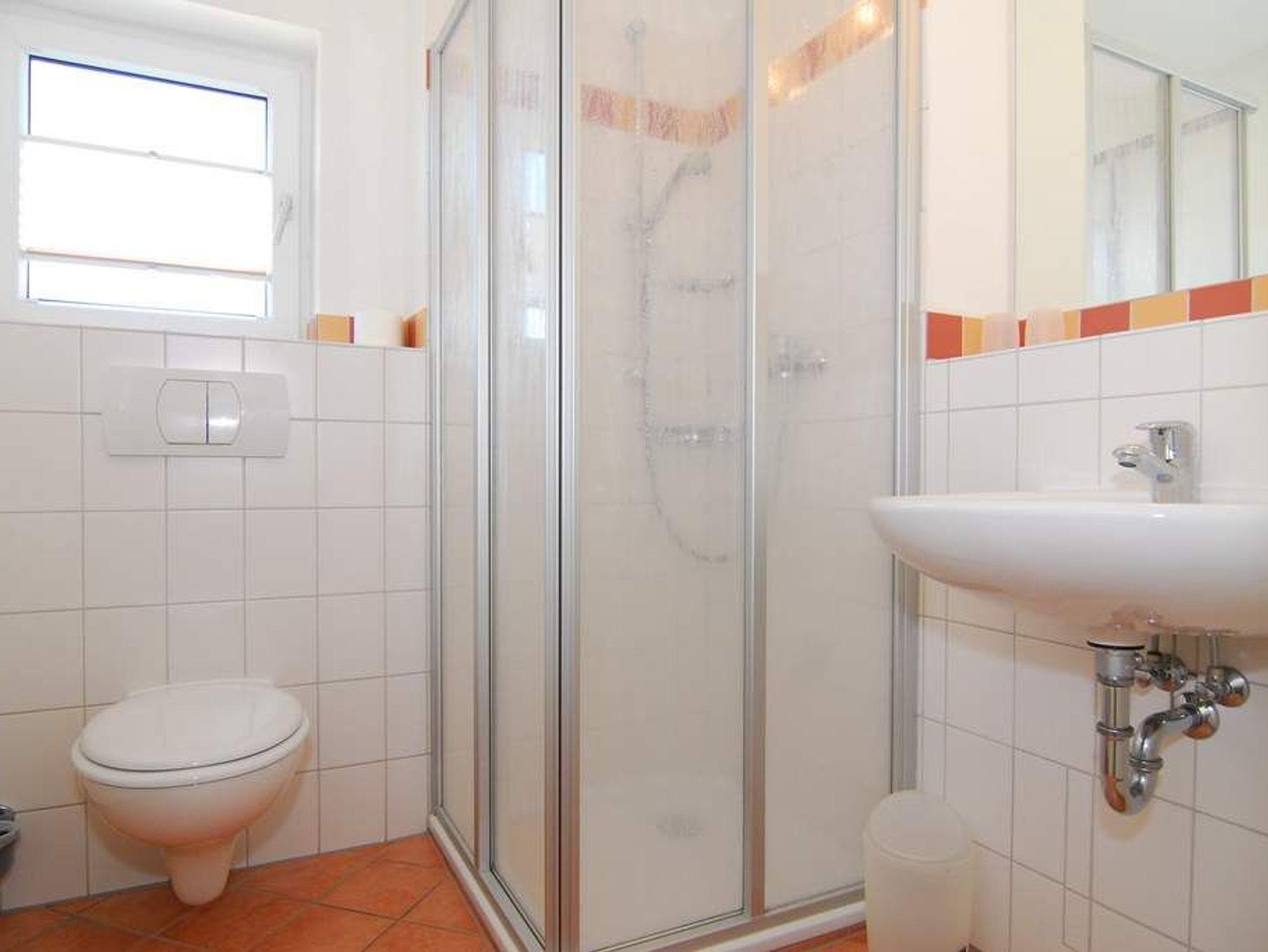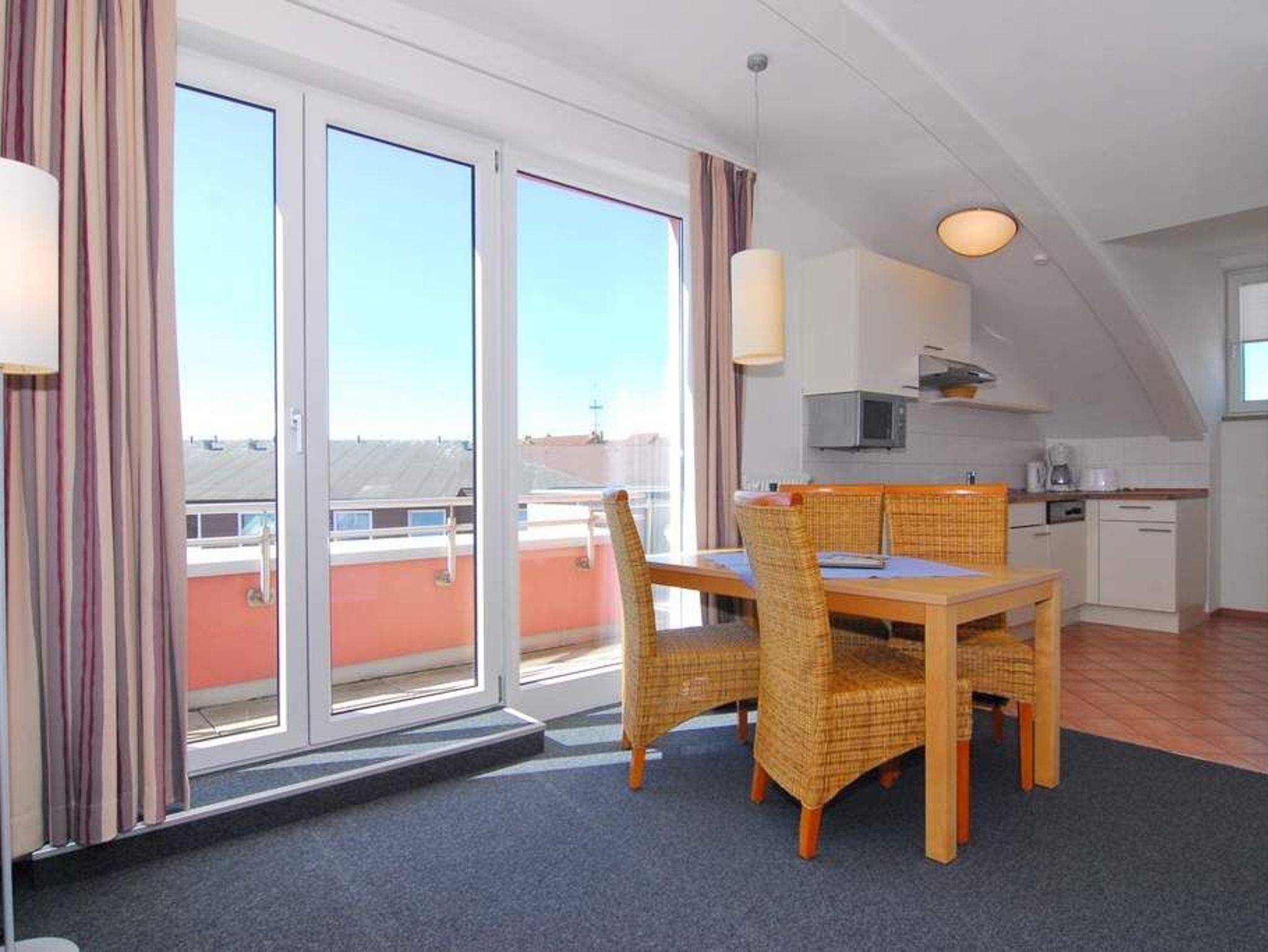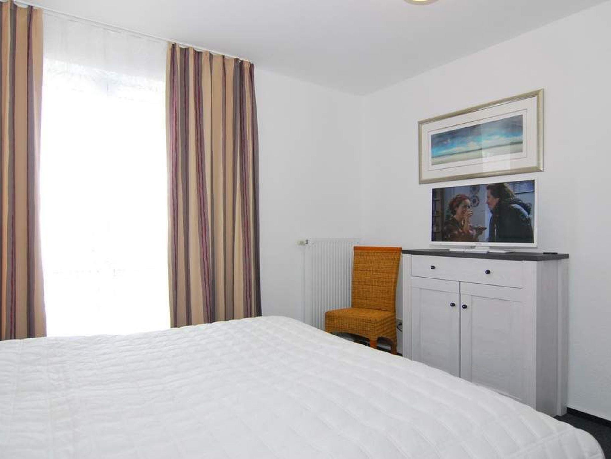 3-Zimmer-Ferienwohnung im roten Haus, ca. 67m². Nichtraucher-Whg.! 2.OG: 1 Schlafzimmer mit Doppelbett, 1 Schlafzimmer mit 2 Einzelbetten, Flur, Duschbad/WC. DG: Wohnraum mit möblierten Westbalkon. Essplatz, 2-Sitzer-Couch und 2 Sessel, Kabel-TV, Küchenzeile mit Mikrowelle, Mini-Backofen und Geschirrspüler. Internetanschluß (ohne Gewähr). Waschküche und Fahrradkeller befinden sich im Nebenhaus Mauritius. Pkw-Stellplatz kann kostenpflichtig hinzugebucht werden. Bettwäsche und Handtücher sind zur Anreise aufgezogen! Tierhaltung ist nicht gestattet.