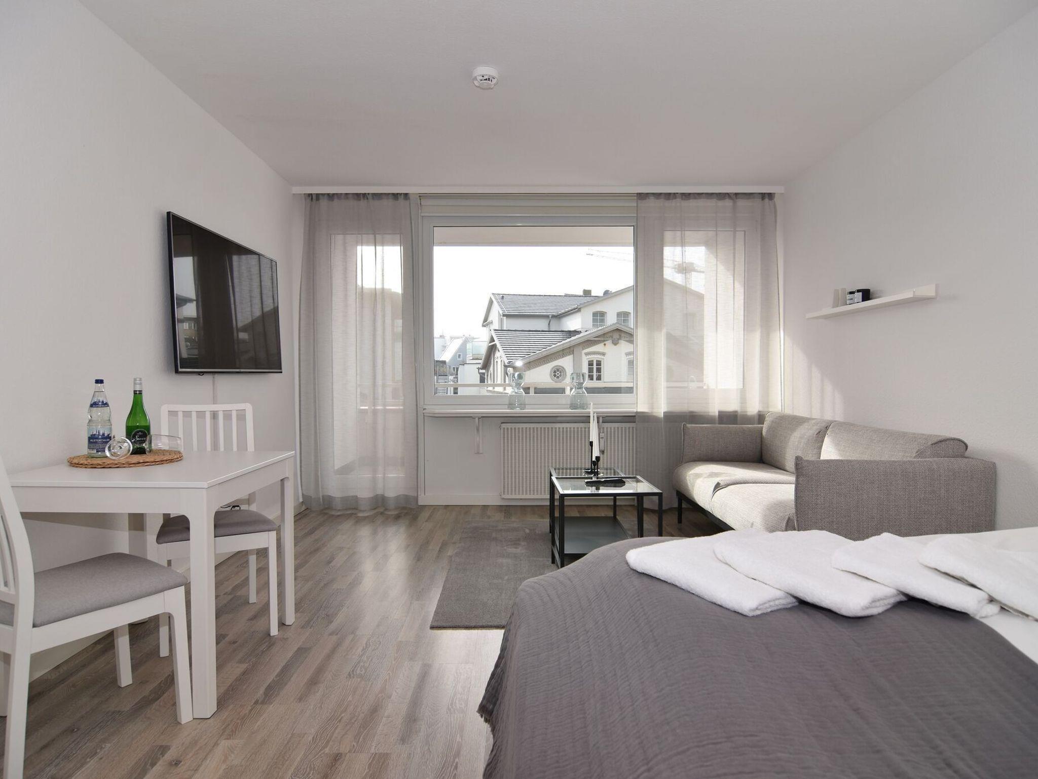 Nur wenige Schritte vom Strand entfernt befindet sich das Haus Strandstrasse 22. Genießen Sie die Vorzüge dieser zentralen Lage - Bäcker, Supermarkt und Strand sind nur einen Katzensprung entfernt. Die helle Wohnung verfügt über einen geräumigen Wohn-/ Schlafraum mit Doppelbett (180x200, 2 Matratzen), Sitz- und Essecke sowie einem großen Südbalkon. Im Flurbereich der Wohnung befindet sich die Küchenzeile mit Ceranherd, Kühlschrank und Geschirrspüler. Ein modernes und frisch saniertes Duschbad/WC überzeugt mit einer großen Dusche und hübschen Waschtisch - ein Föhn ist vorhanden. Die Wohnung ist durch Ihren Designboden auch für Allergiker geeignet, Tierhaltung und Rauchen sind in der Wohnung nicht gestattet. Im Haus befindet sich eine Waschküche mit Münz-Waschmaschine und -trockner. Bettwäsche und Handtücher sind zur Anreise aufgezogen. Ein Stellplatz kann nach je Verfügbarkeit kostenpflichtig im Kurzentrum (ca. 150m Entfernung) dazu gebucht werden.