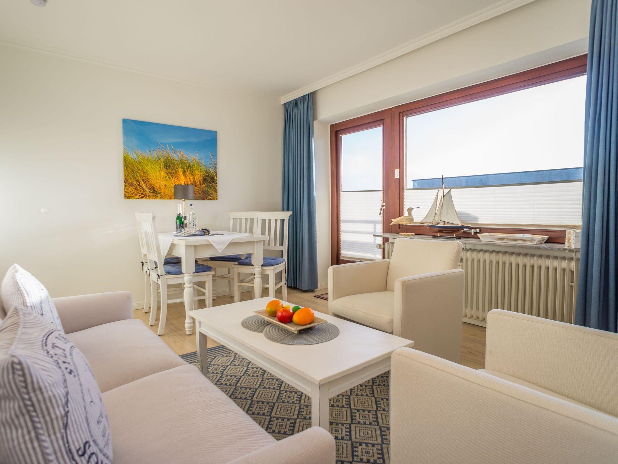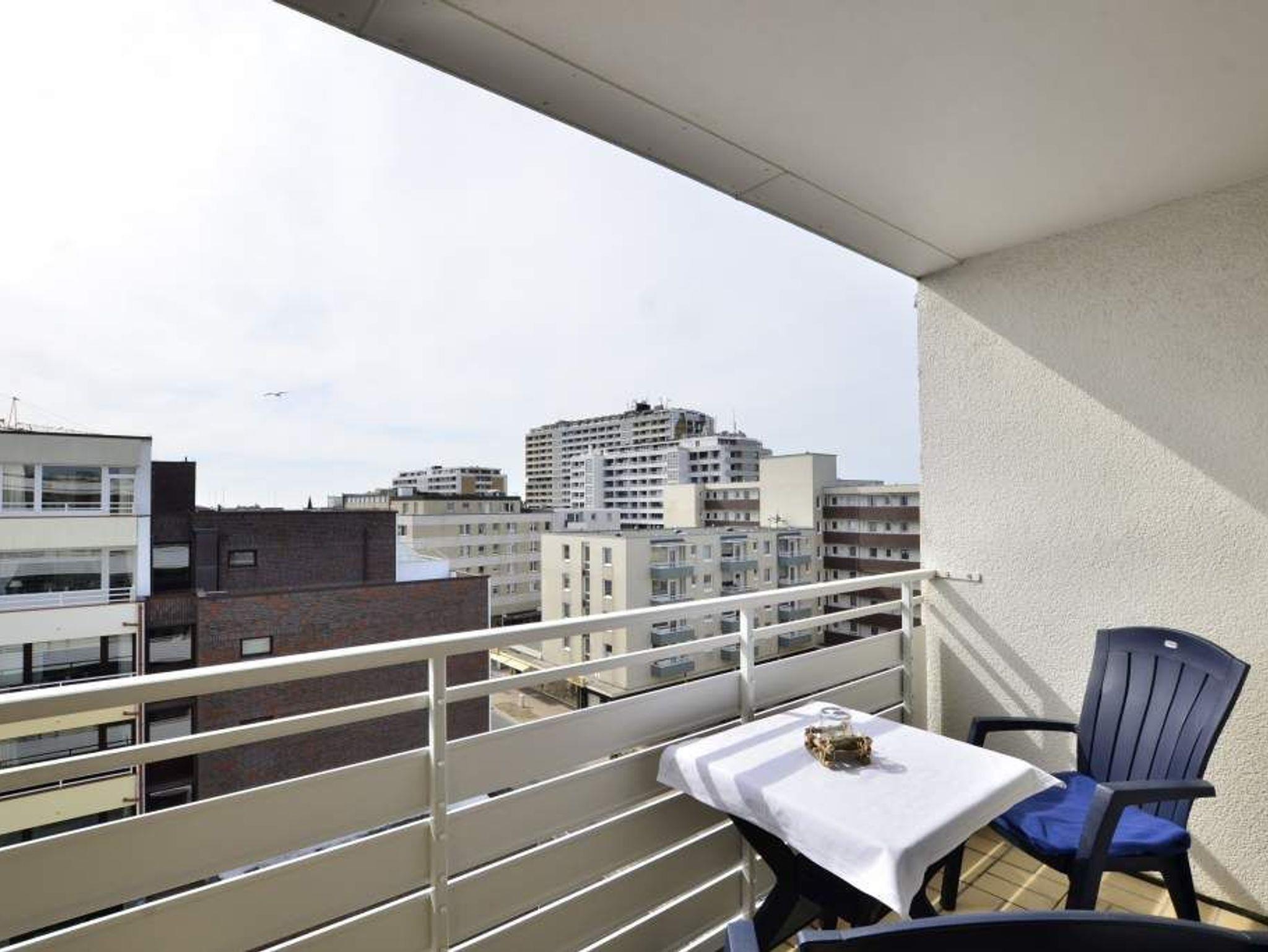 Komfortable 2-Zimmer-Nichtraucher-Ferienwohnung, ca. 48 qm, in der 6. Etage mit Südloggia (mit Balkonmöbeln und Auflagen)