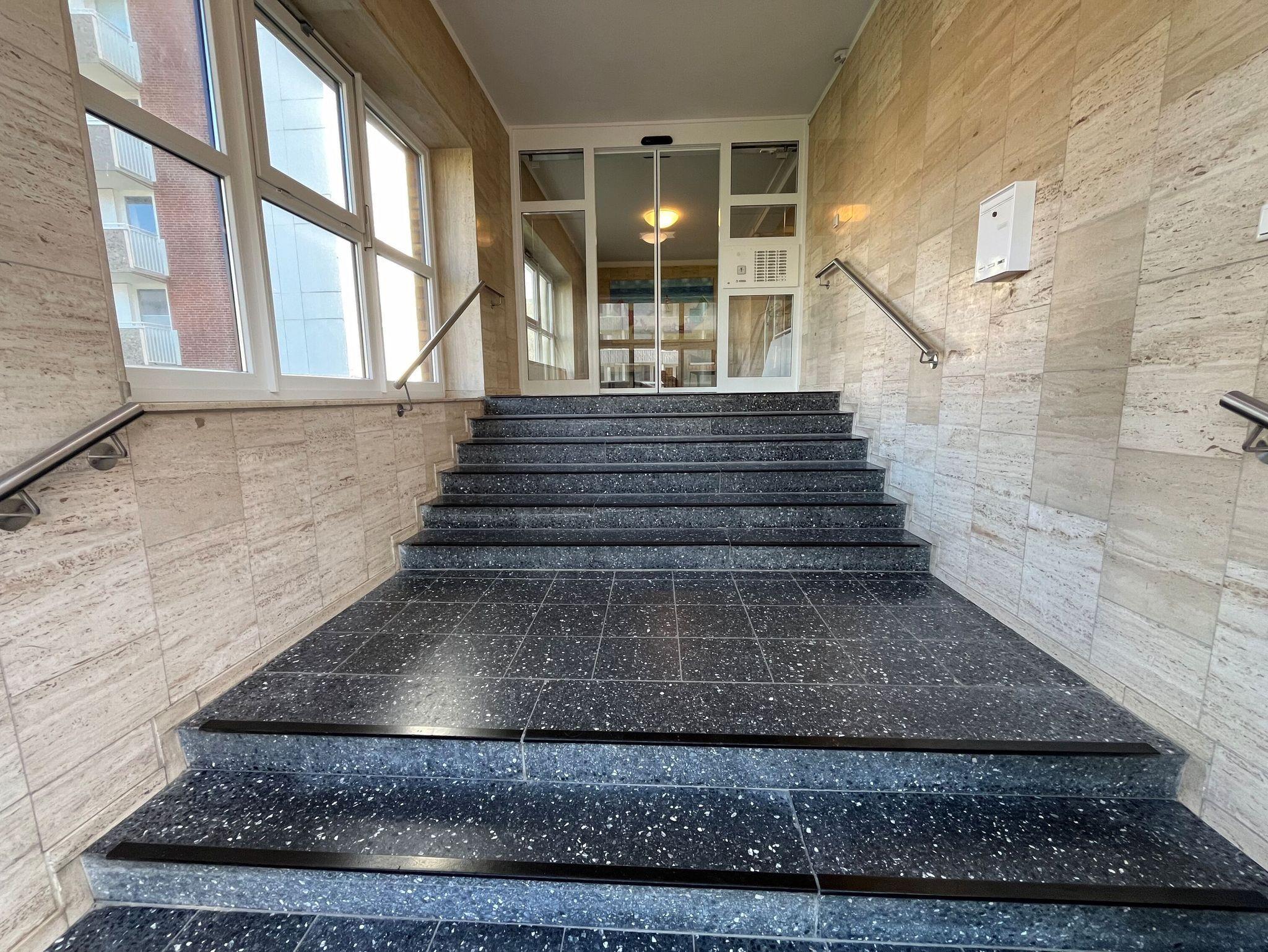 Im Haus befindet sich ein Fahrstuhl, der über 1/2 Etage zu Fuß erreichbar ist.