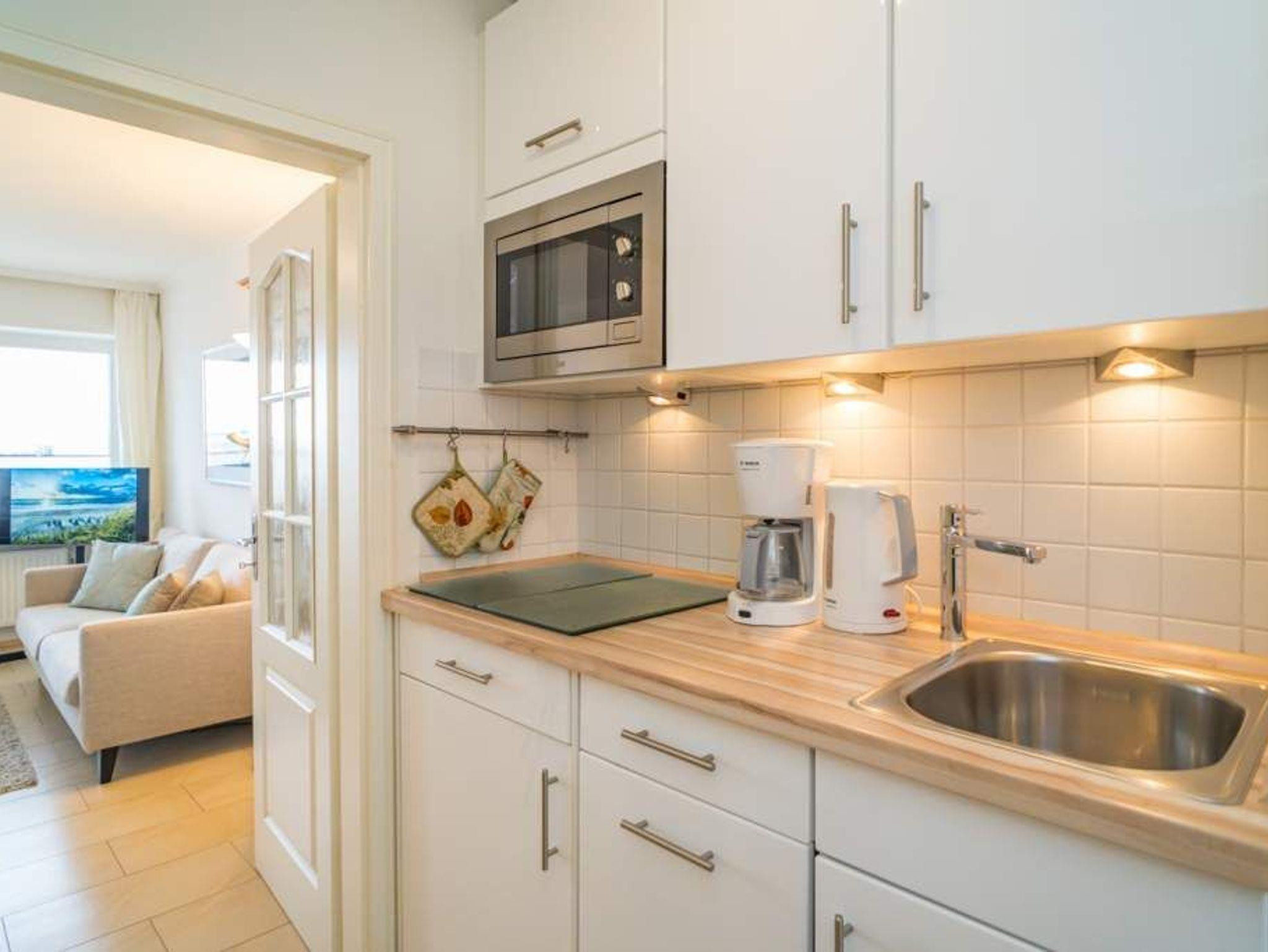 Die neue Küchenzeile inklusive Geschirrspüler, Cerankochfeld (4 Felder), Mikrowelle mit Grillfunktion und Kühlschrank mit 3*-Gefrierfach lässt keine Wünsche offen.